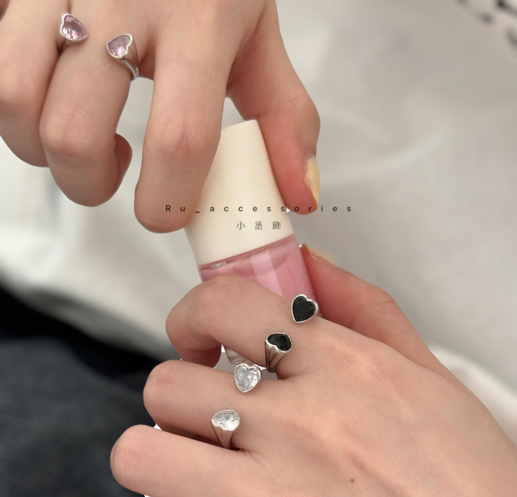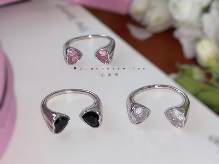 三色雙愛心開口戒#109