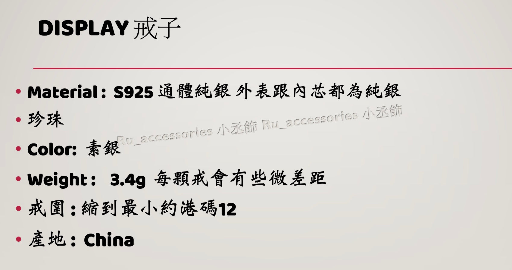 •Weight : 3.4g 每顆戒會有些微差距
