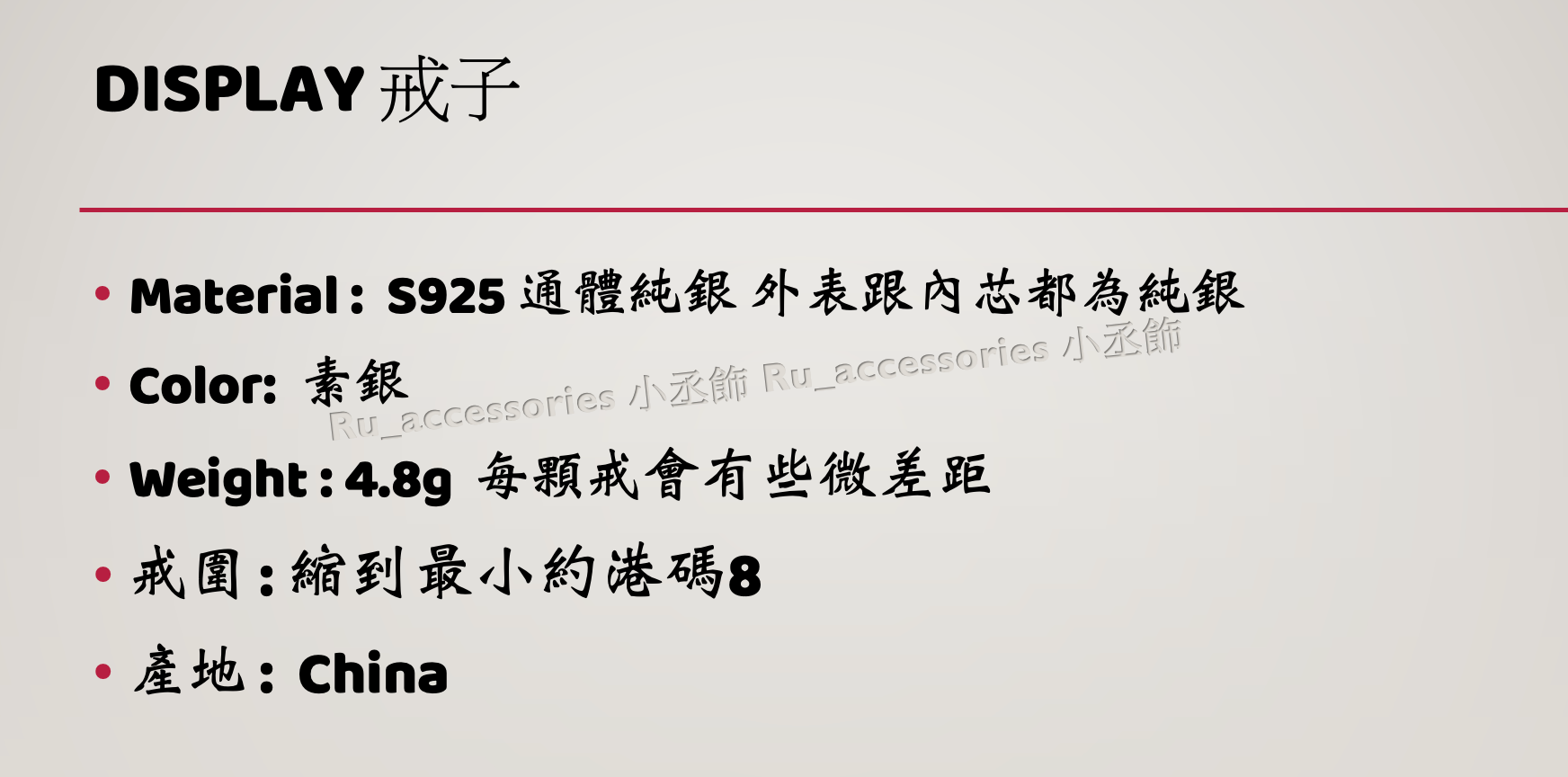 •Weight : 4.8g 每顆戒會有些微差距