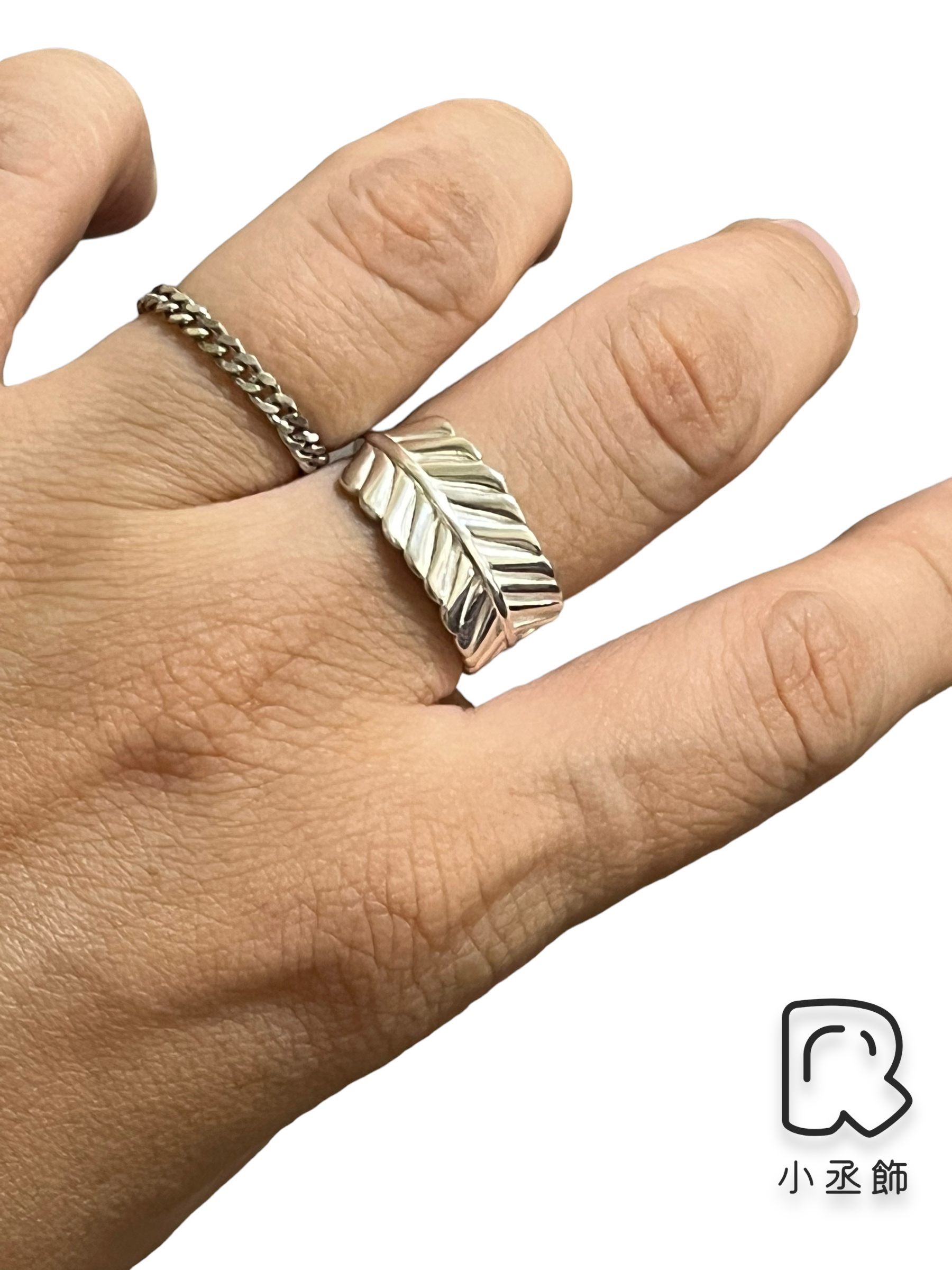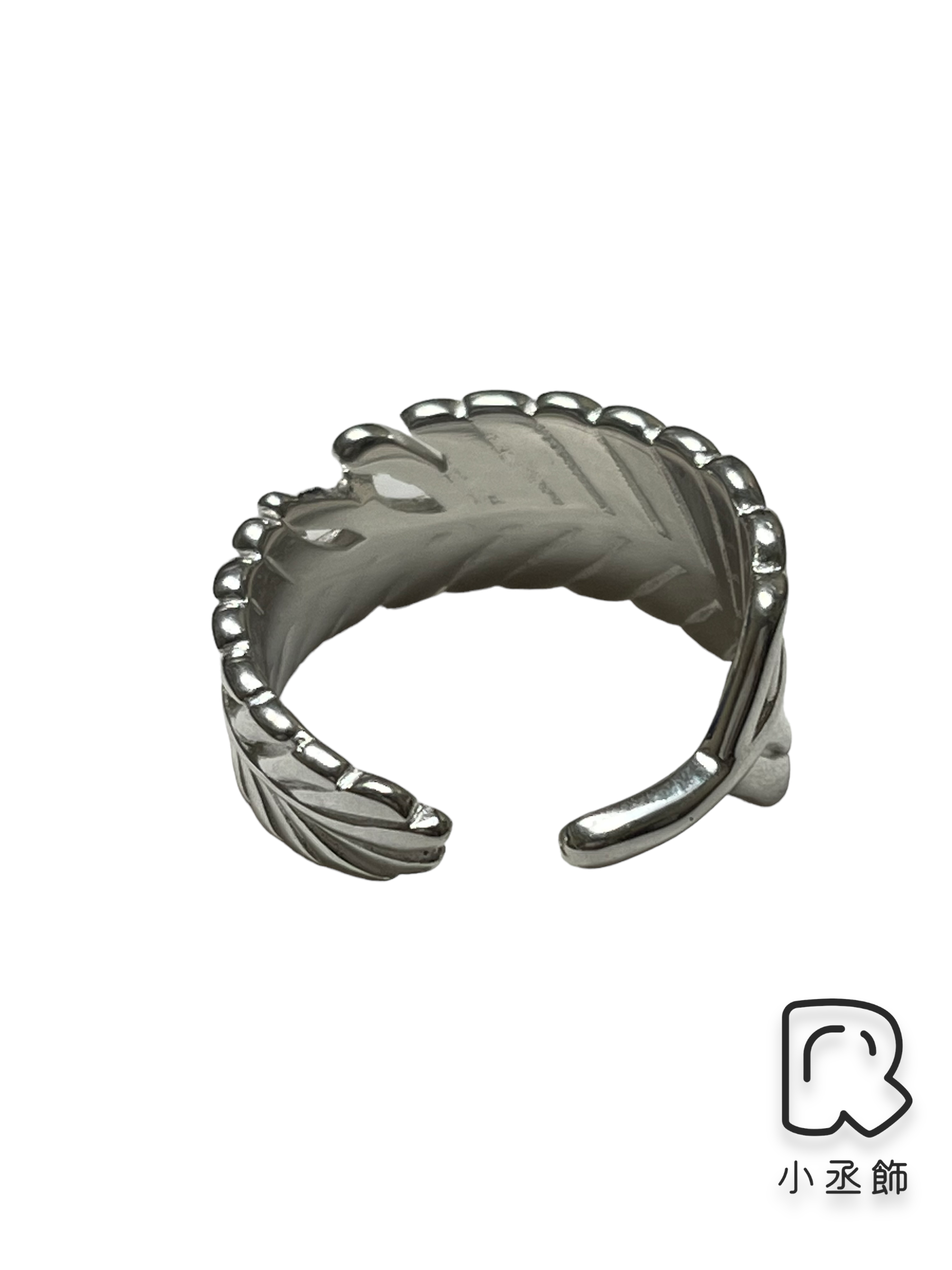 小丞飾 亮銀羽毛線條開口戒 縮到最小約港碼10 $390
