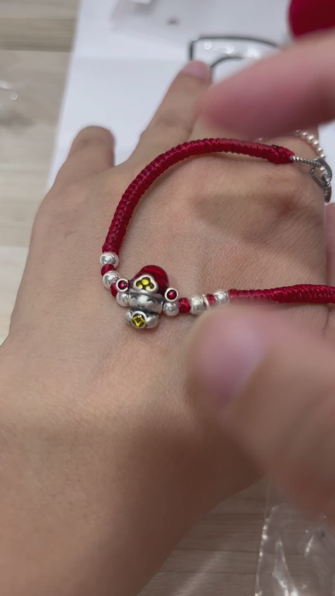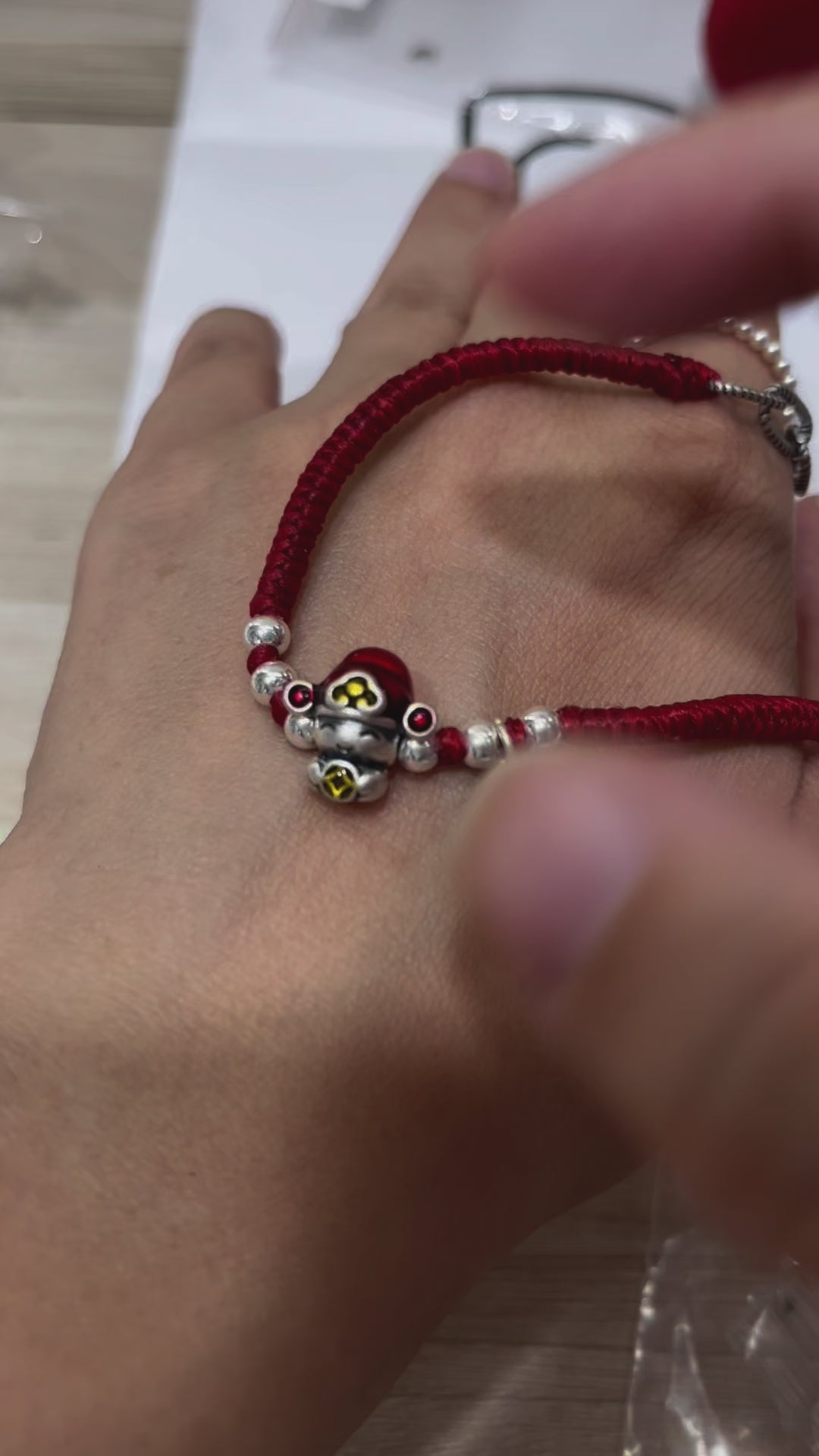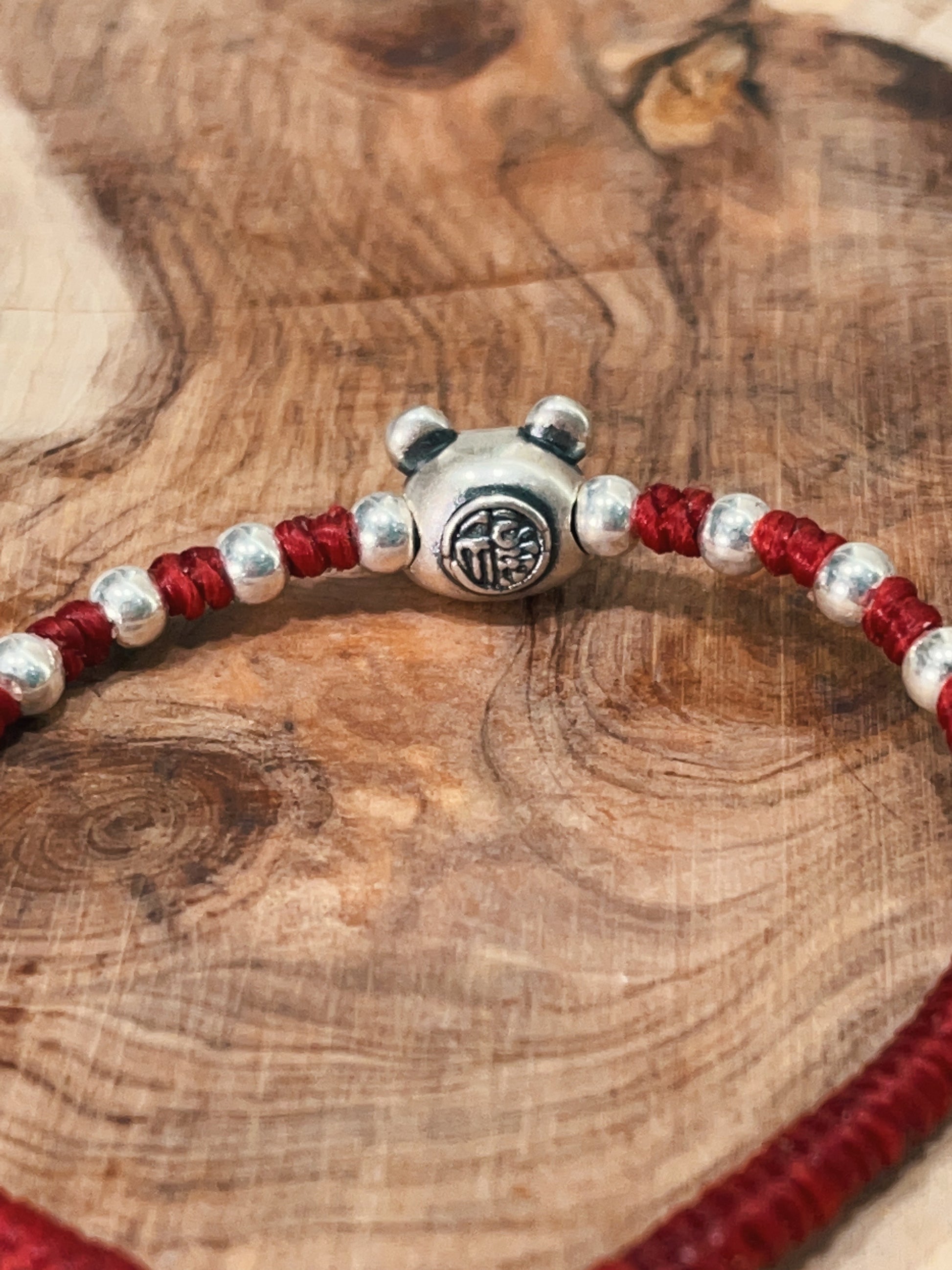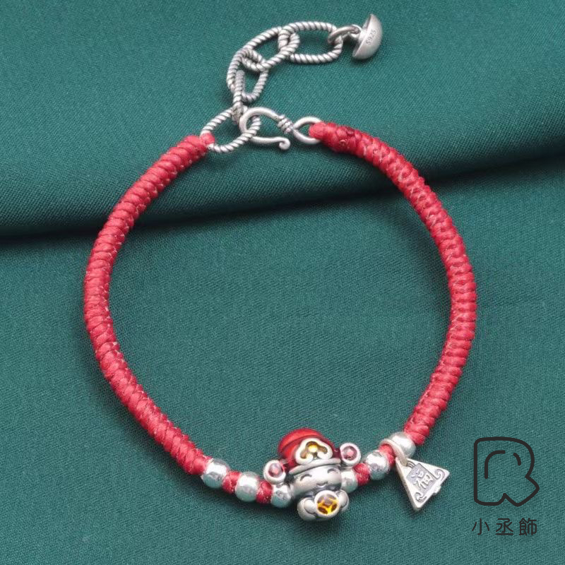 小丞飾 可愛福氣銀珠財神爺蜜蠟繩手鍊 紅色 16+4公分