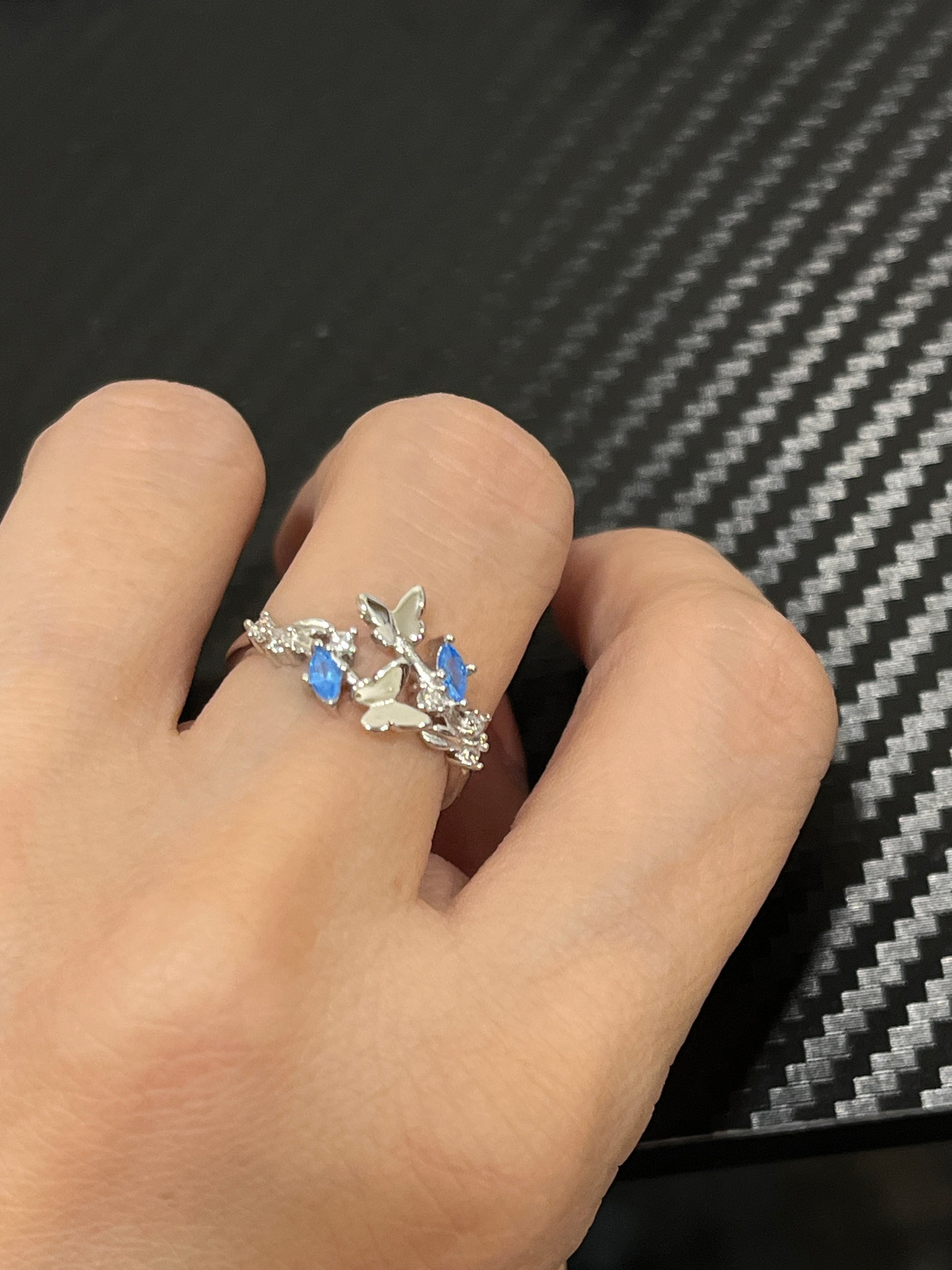 小丞飾 唯美浪漫藍鑽飛蝶前開口戒 $460 R601117
