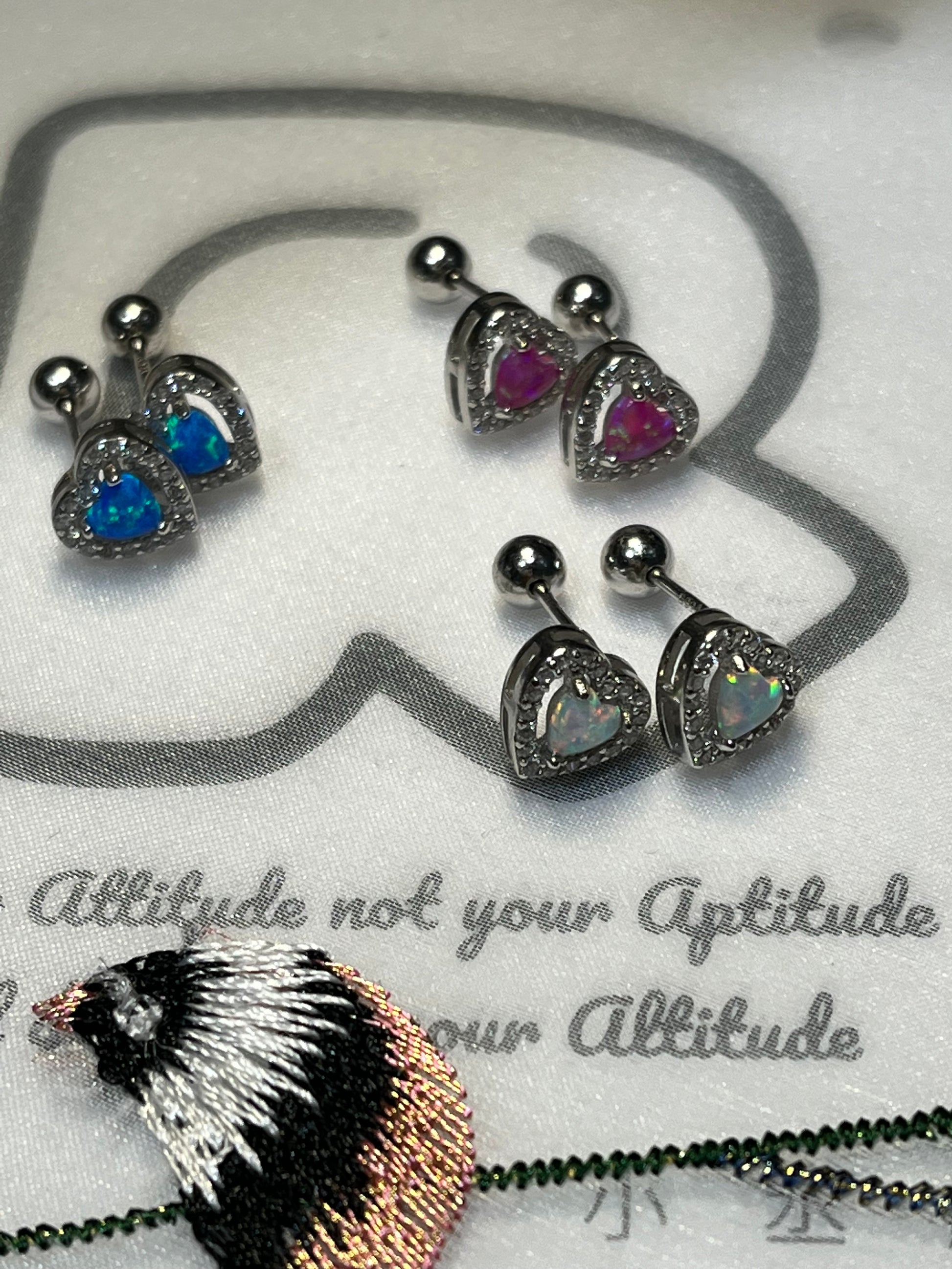 小丞飾 愛心歐珀石轉珠耳環 珠珠4mm,耳針 8mm , $320 #147