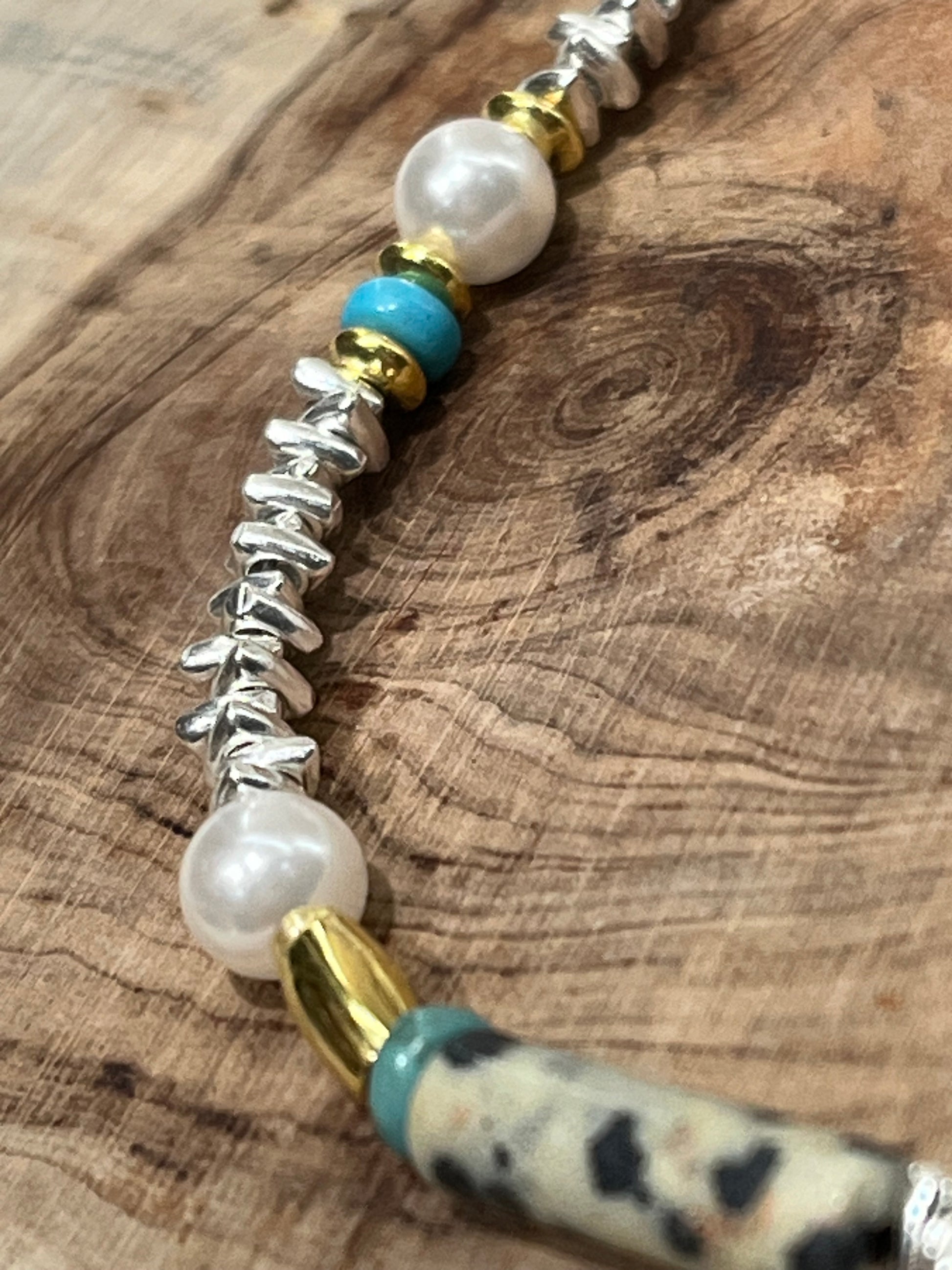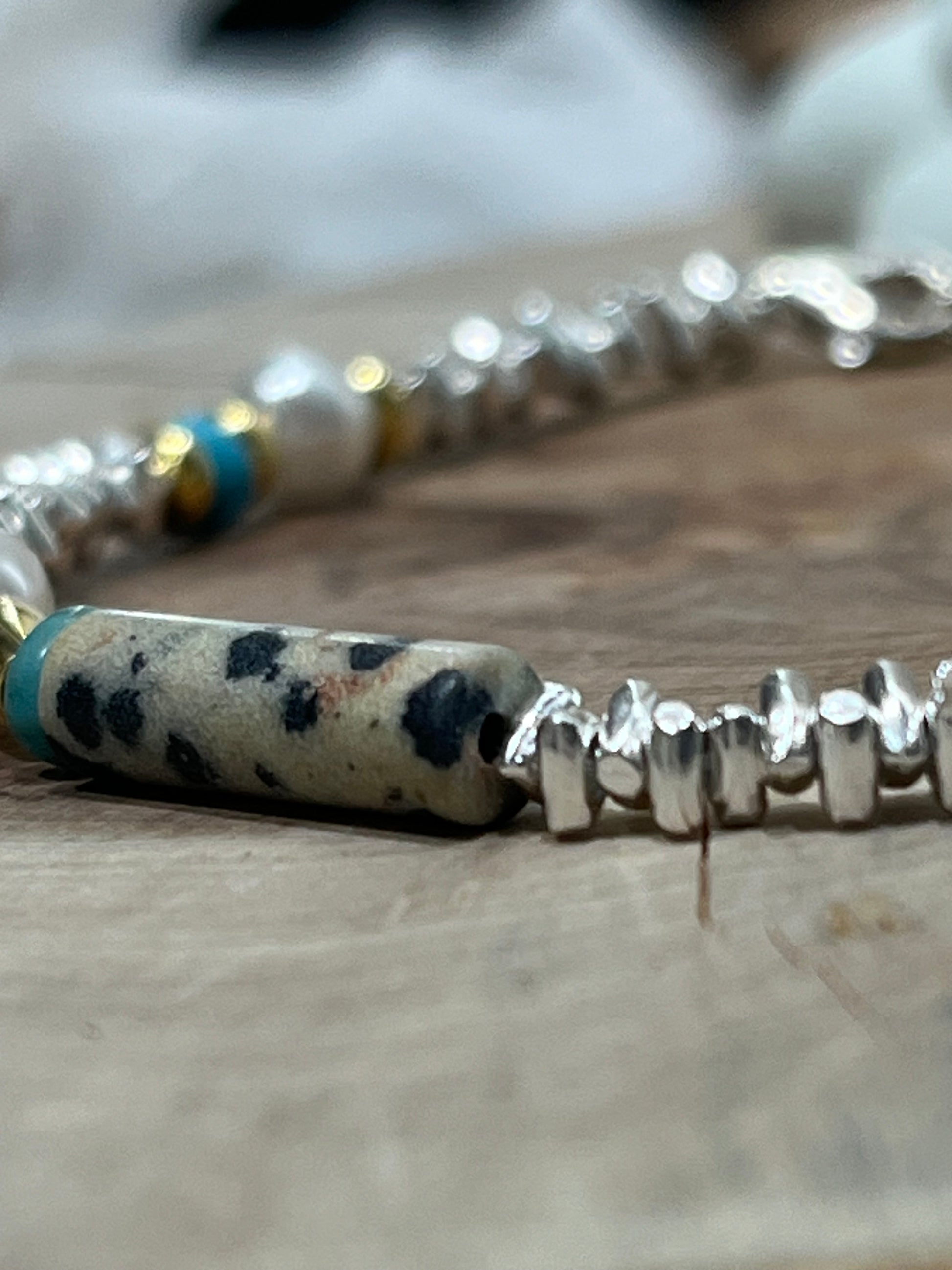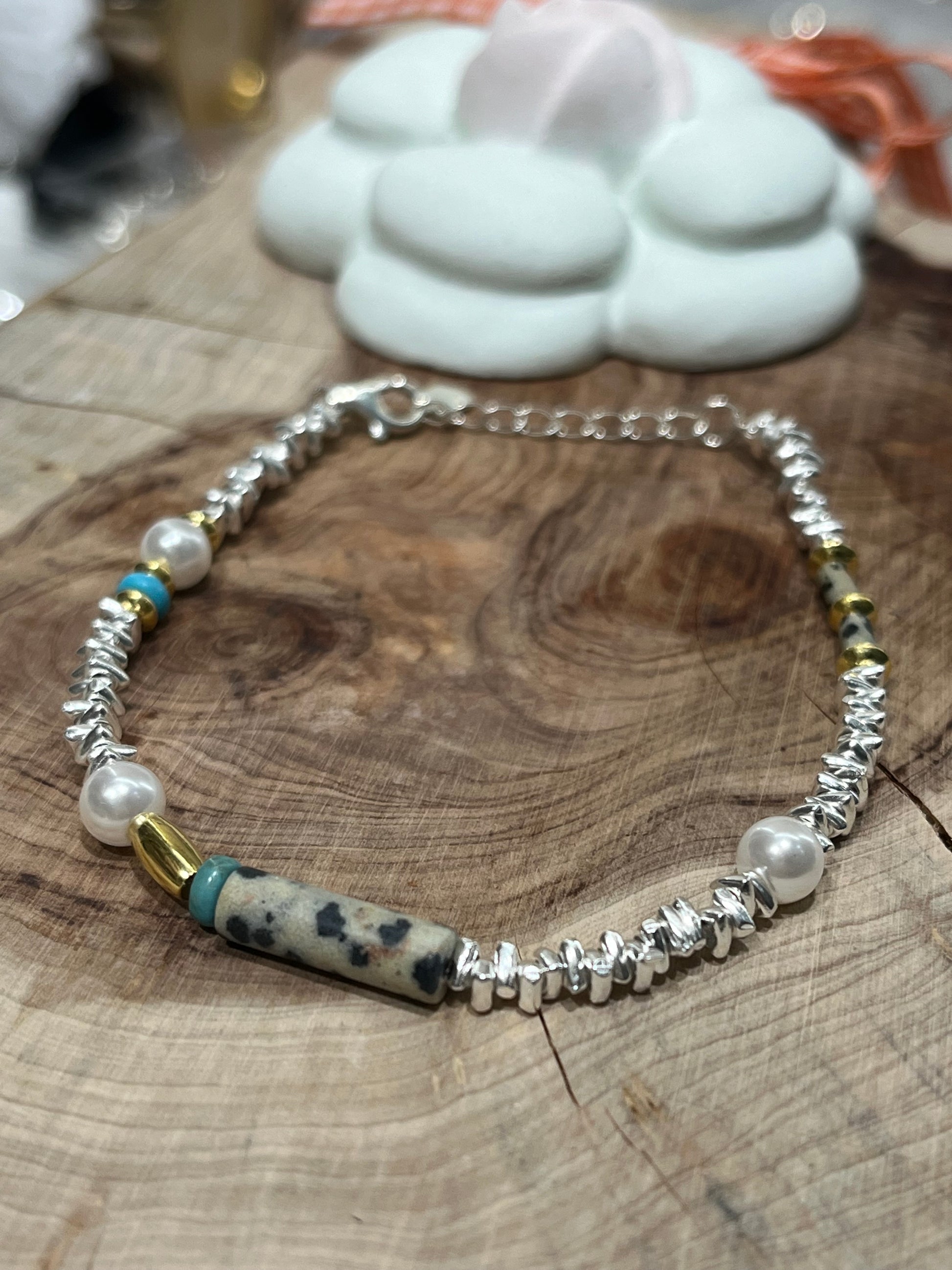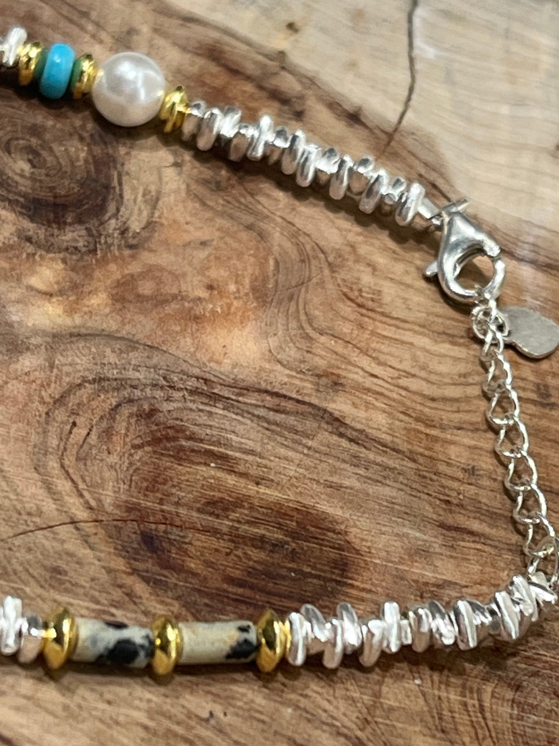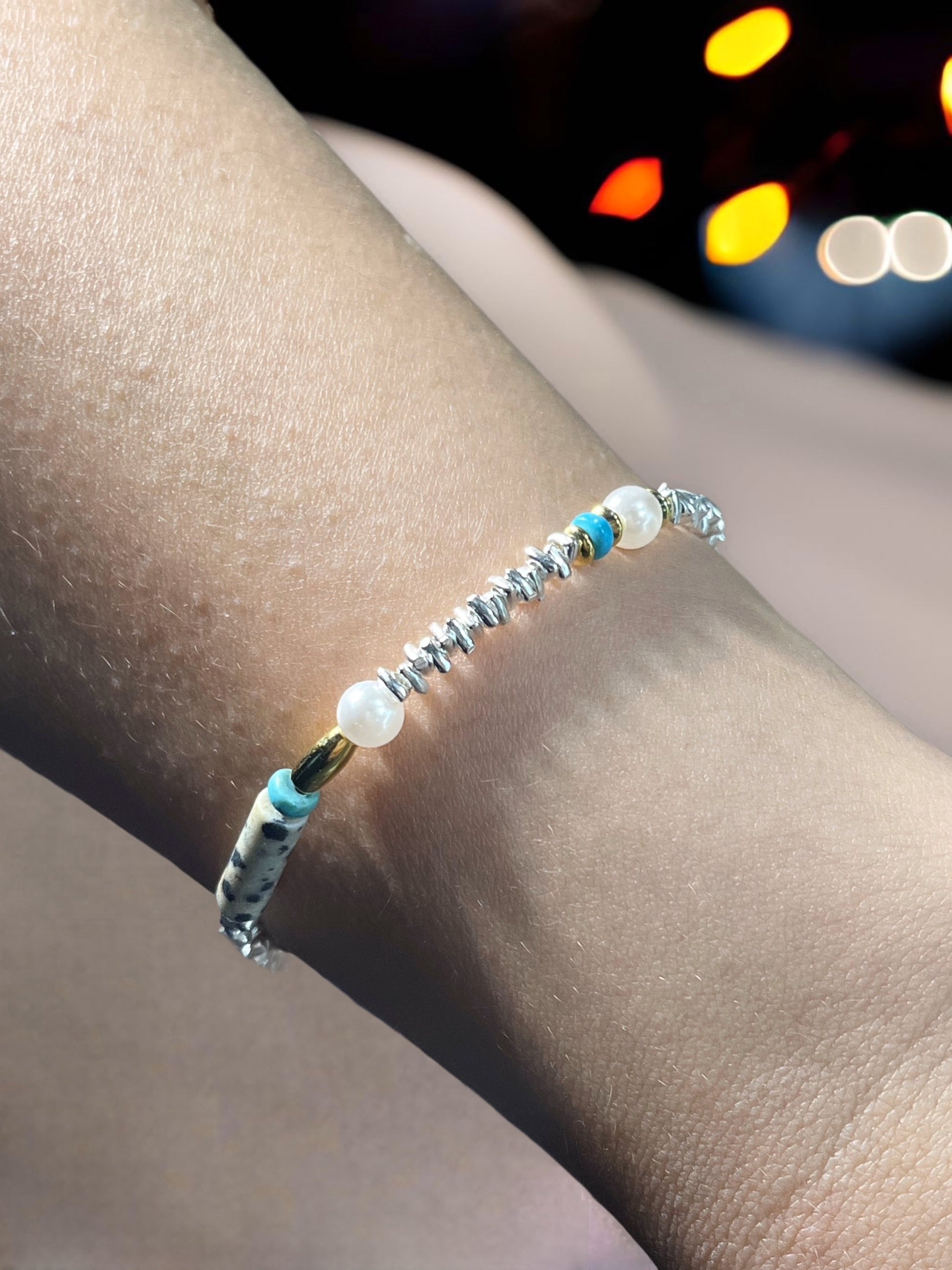 小丞飾 斑點石碎銀金珠米粒撞色手鍊16.5+3公分 $790 #169