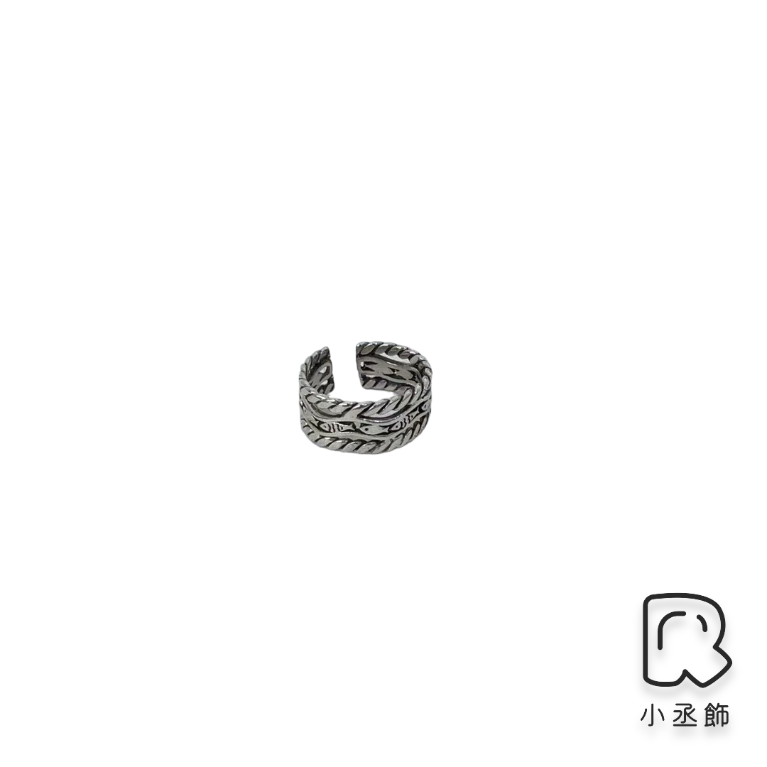 通體全純銀 寬版層次小魚開口戒