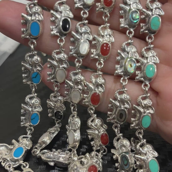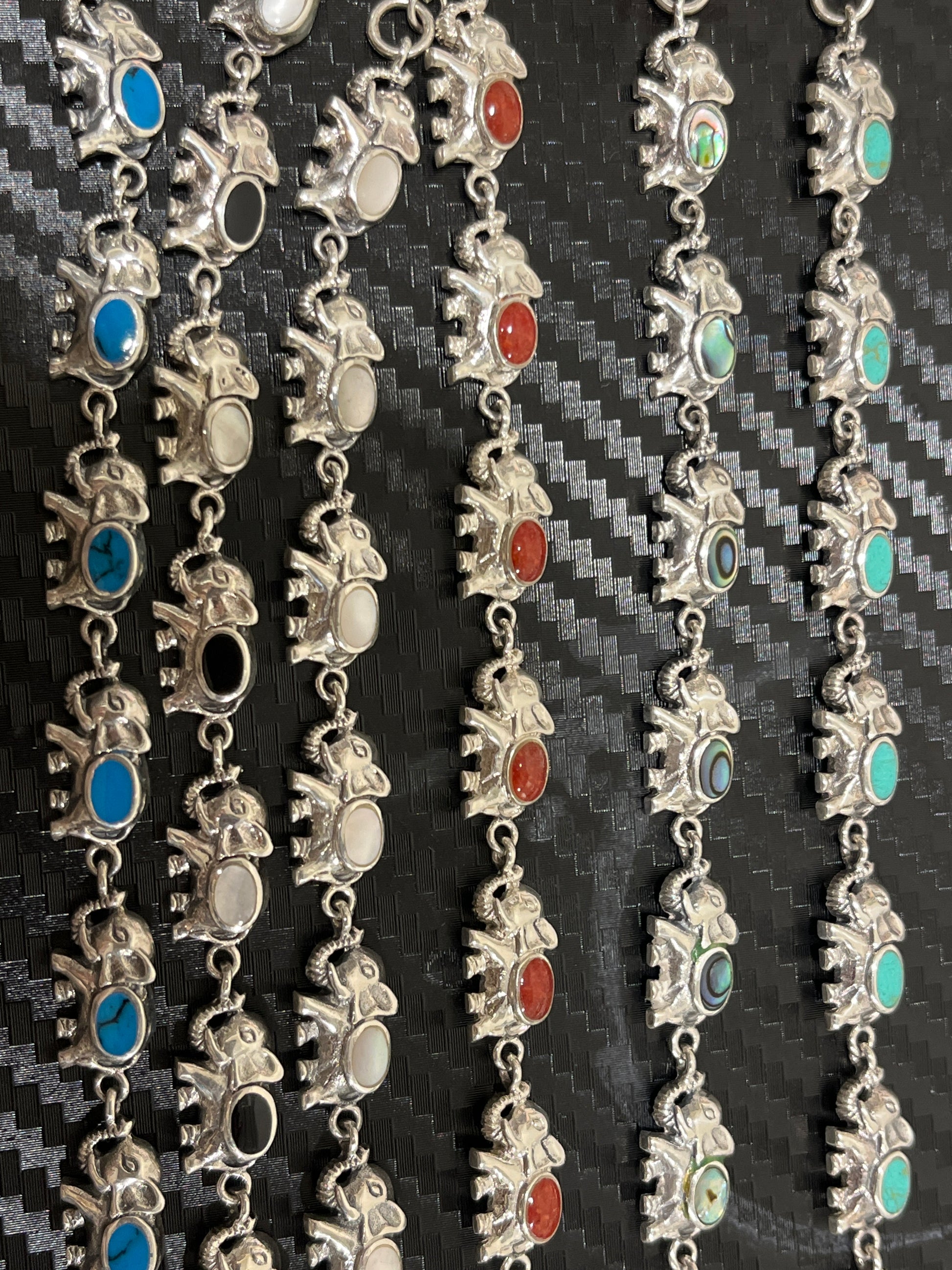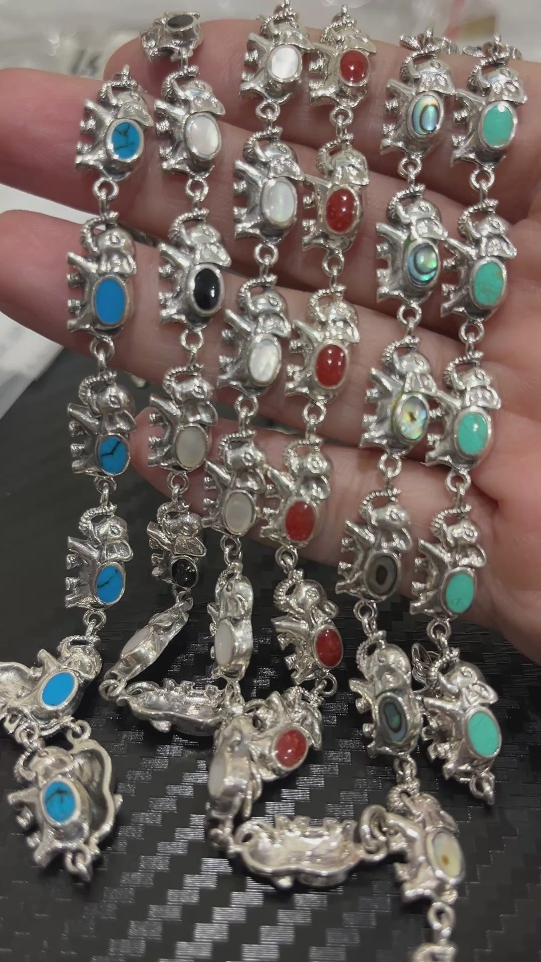 小丞飾 泰國純銀礦石大象手鏈 $1690 大象手鏈男女都適合 ,總長19公分,小手圍可以客製化拿幾顆大象- #B601025 藍色藍松石 黑色黑瑪瑙 白色白玉髓 紅色紅碧玉 七彩鮑魚 綠藍綠松石