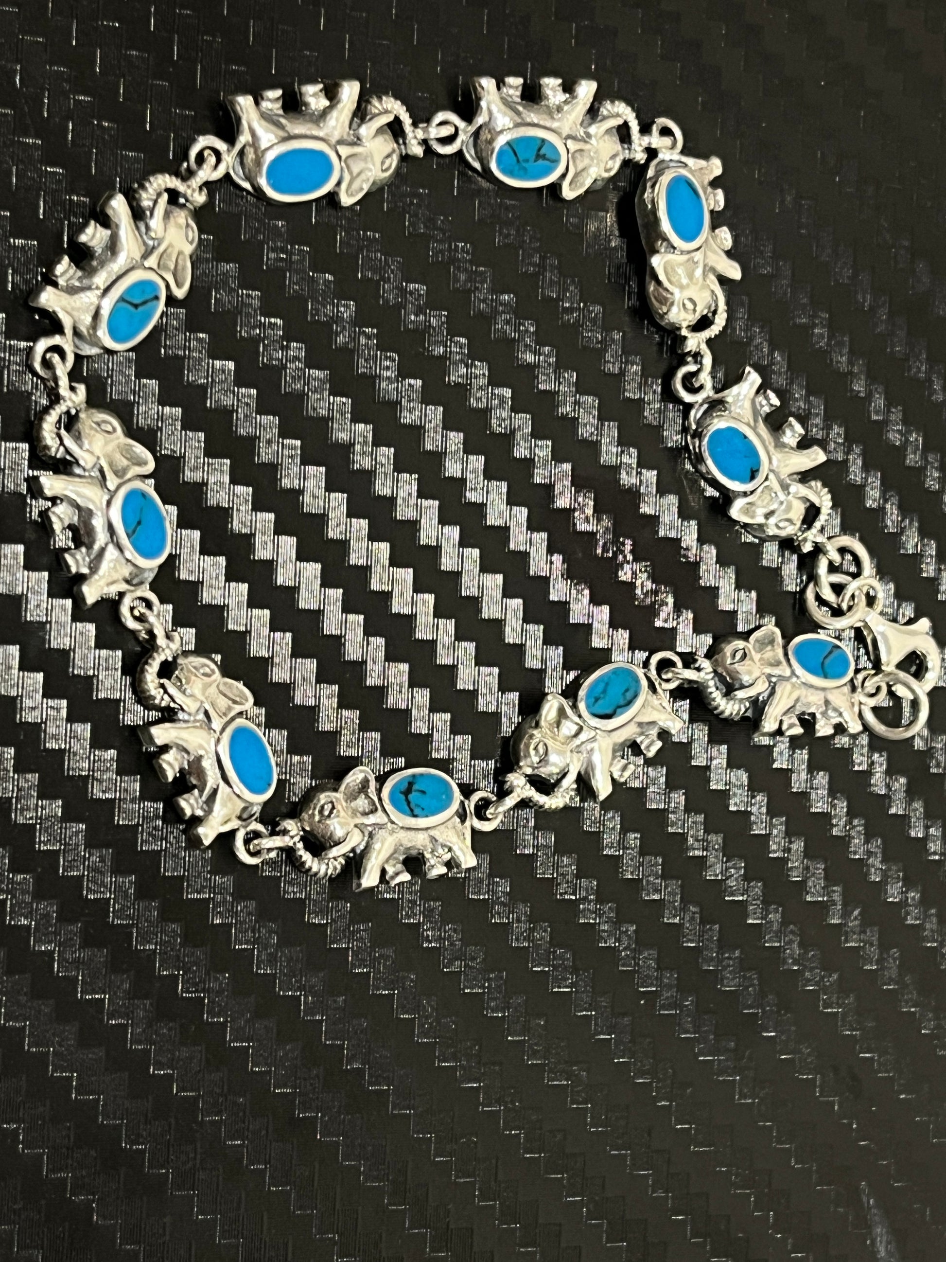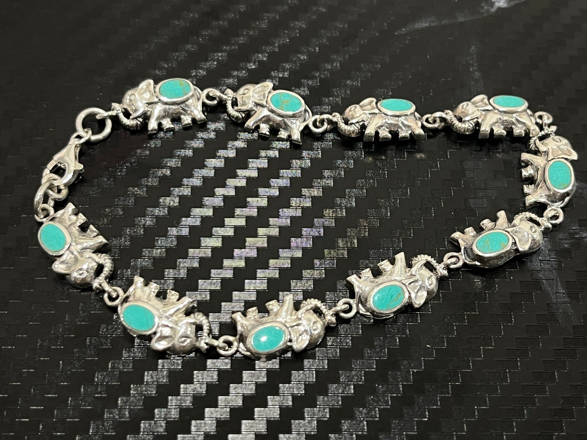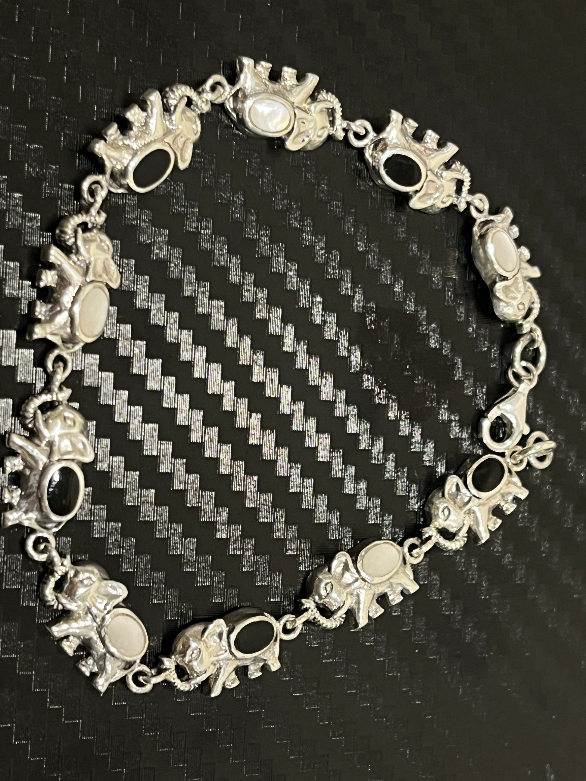 小丞飾 泰國純銀礦石大象手鏈 $1690 大象手鏈男女都適合 ,總長19公分,小手圍可以客製化拿幾顆大象- #B601025 藍色藍松石 黑色黑瑪瑙 白色白玉髓 紅色紅碧玉 七彩鮑魚 綠藍綠松石