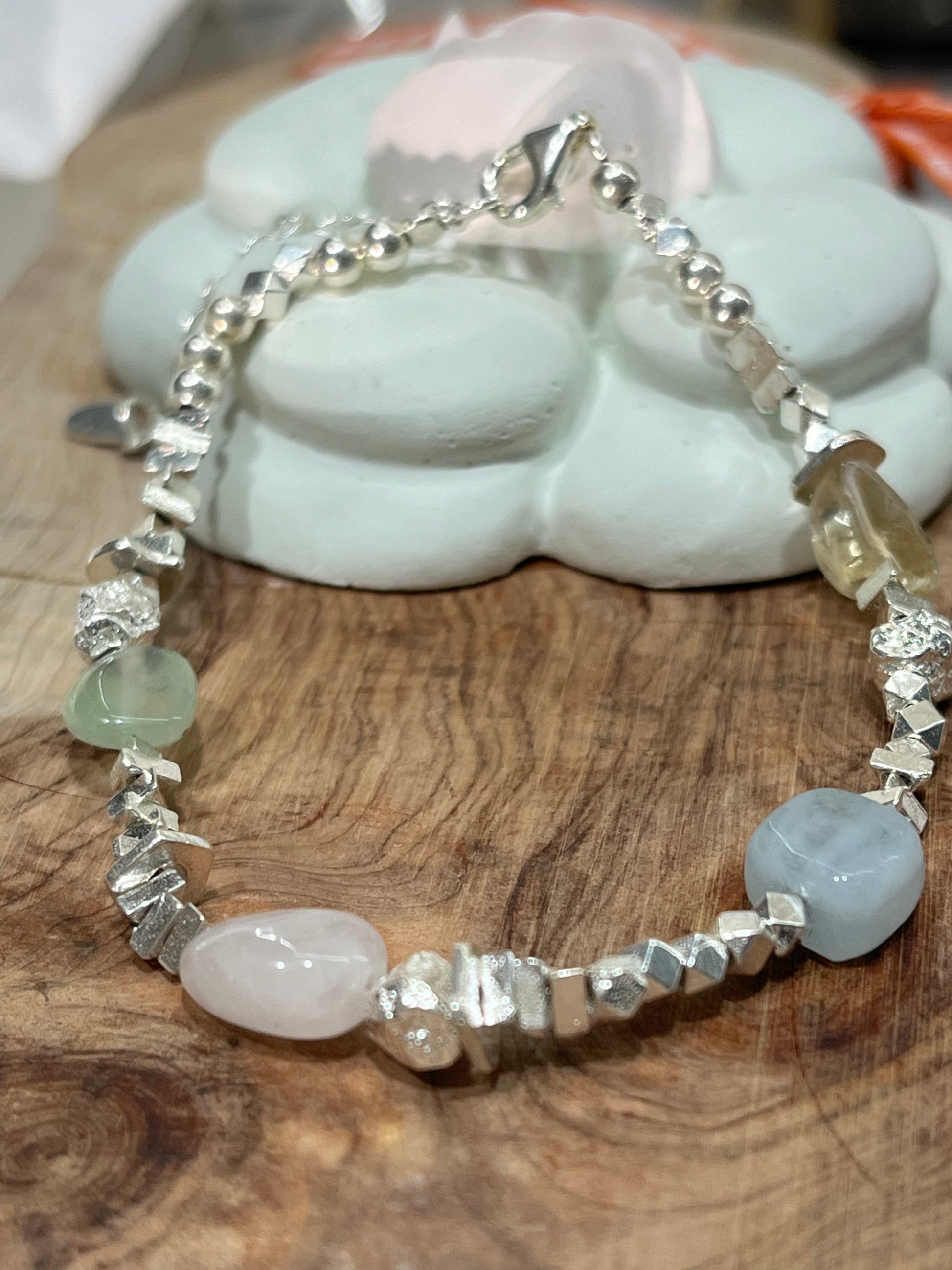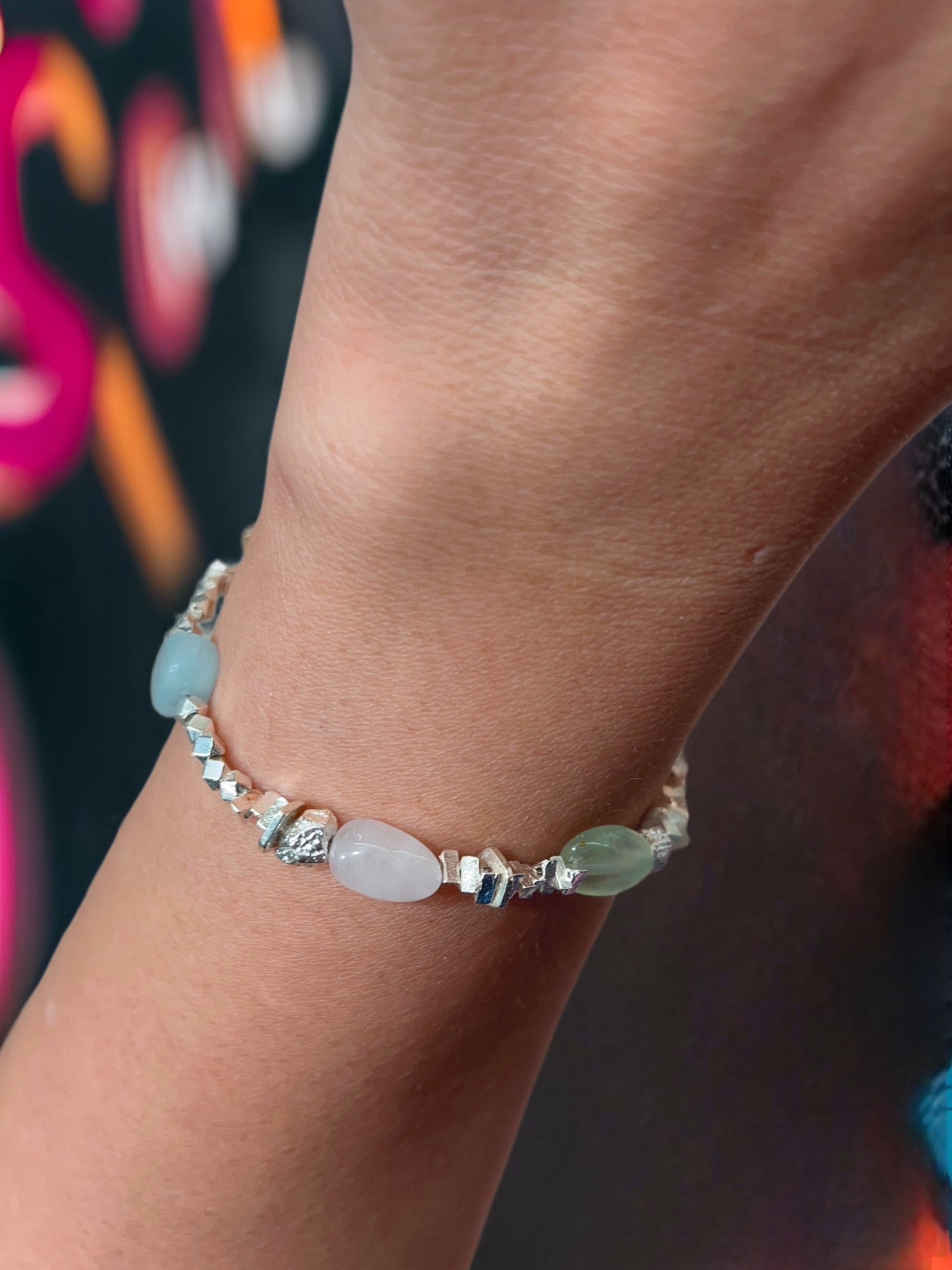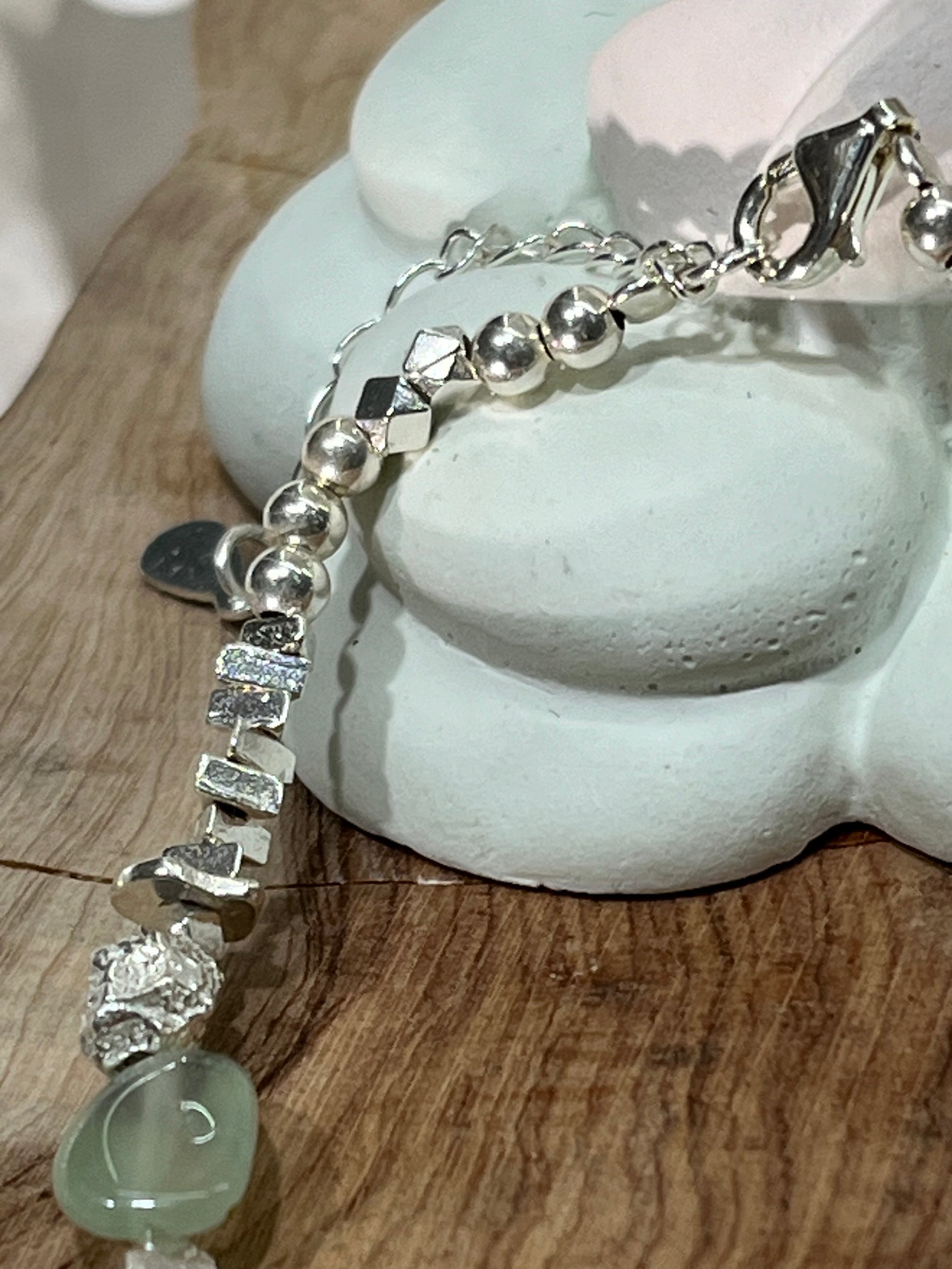 小丞飾 礦石不規則碎銀重工手鍊 16+4公分 #166