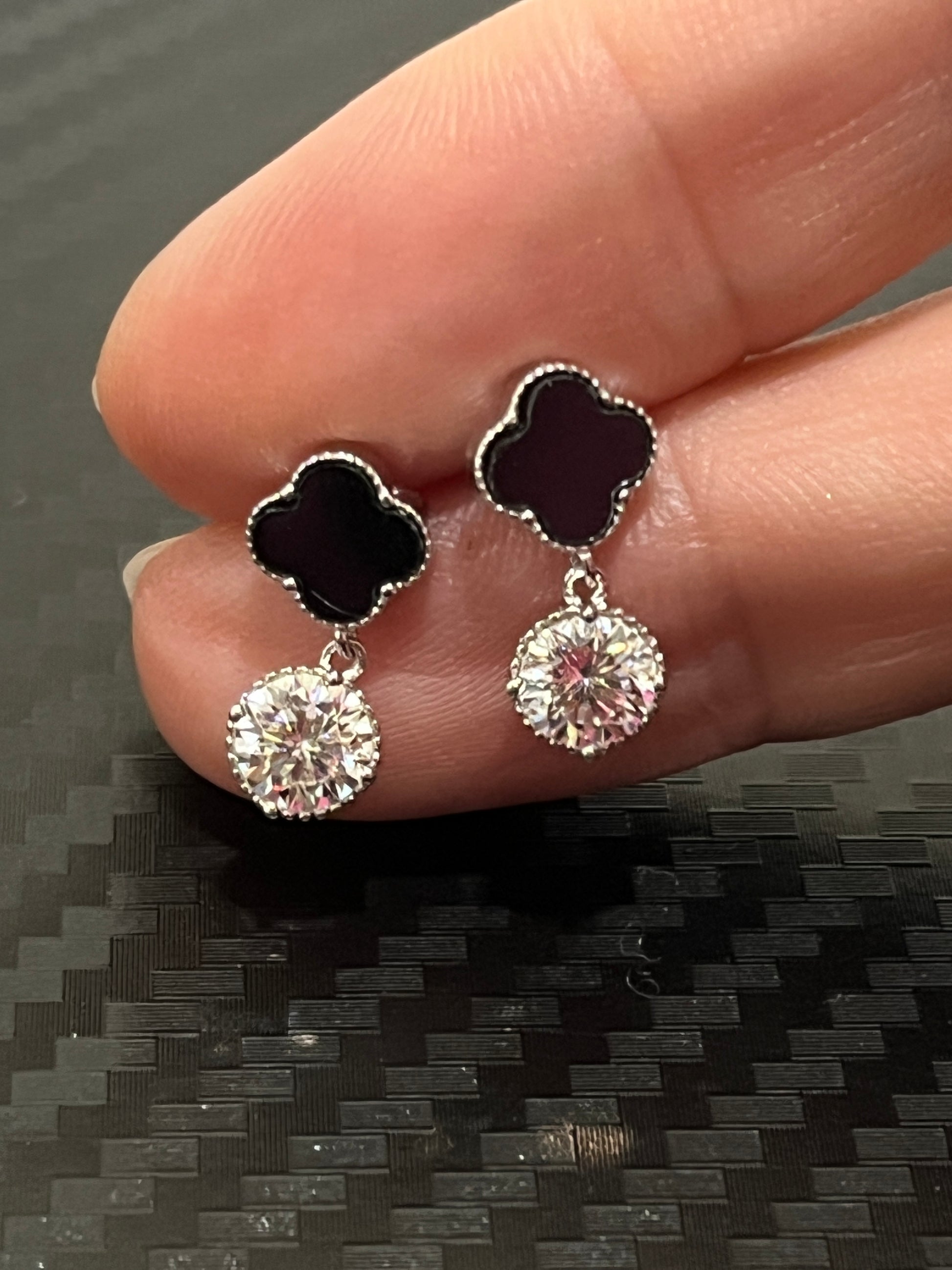 小丞飾-莫桑鑽50分-可愛幸運草☘️莫桑耳釘 E6031408