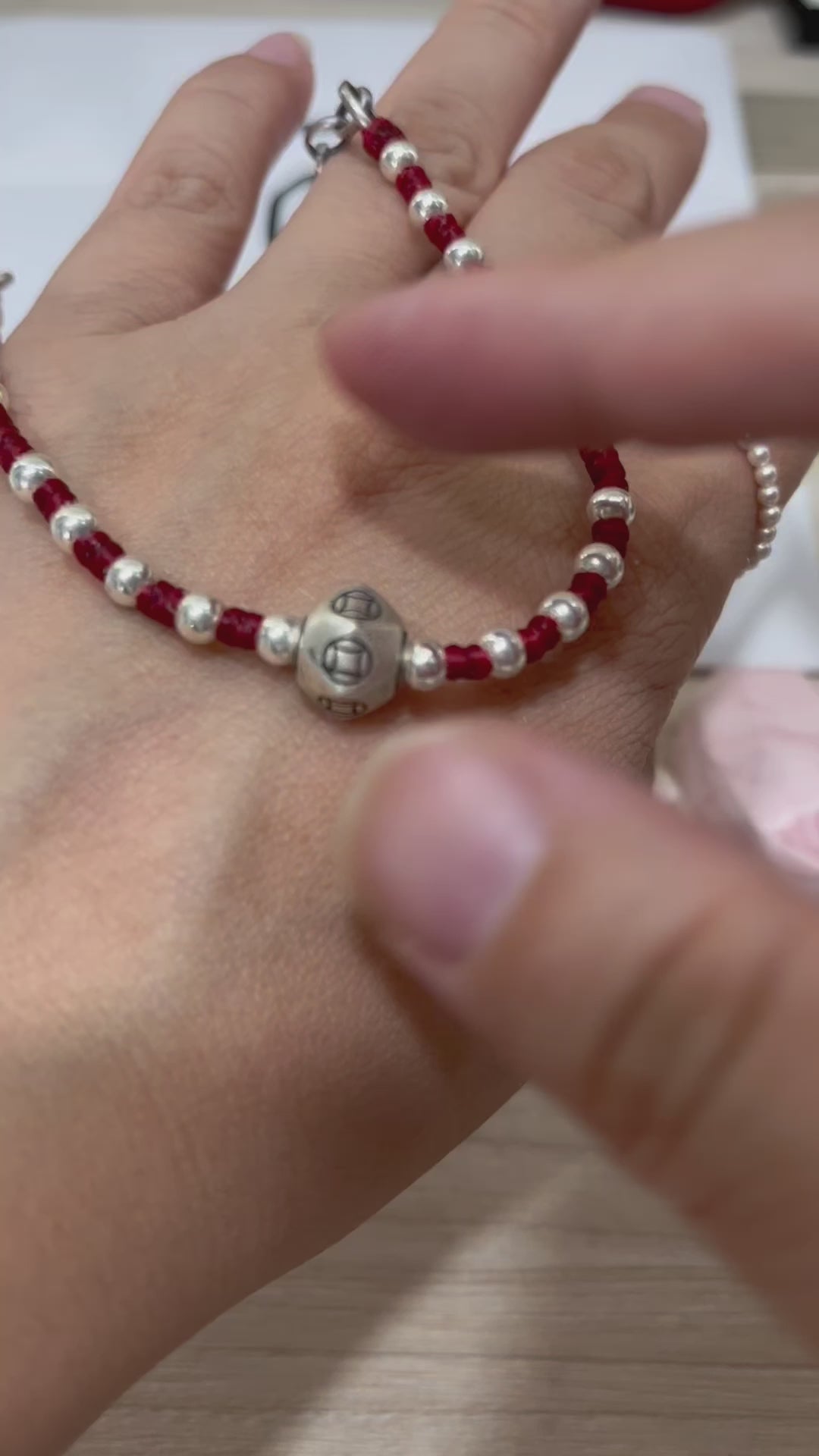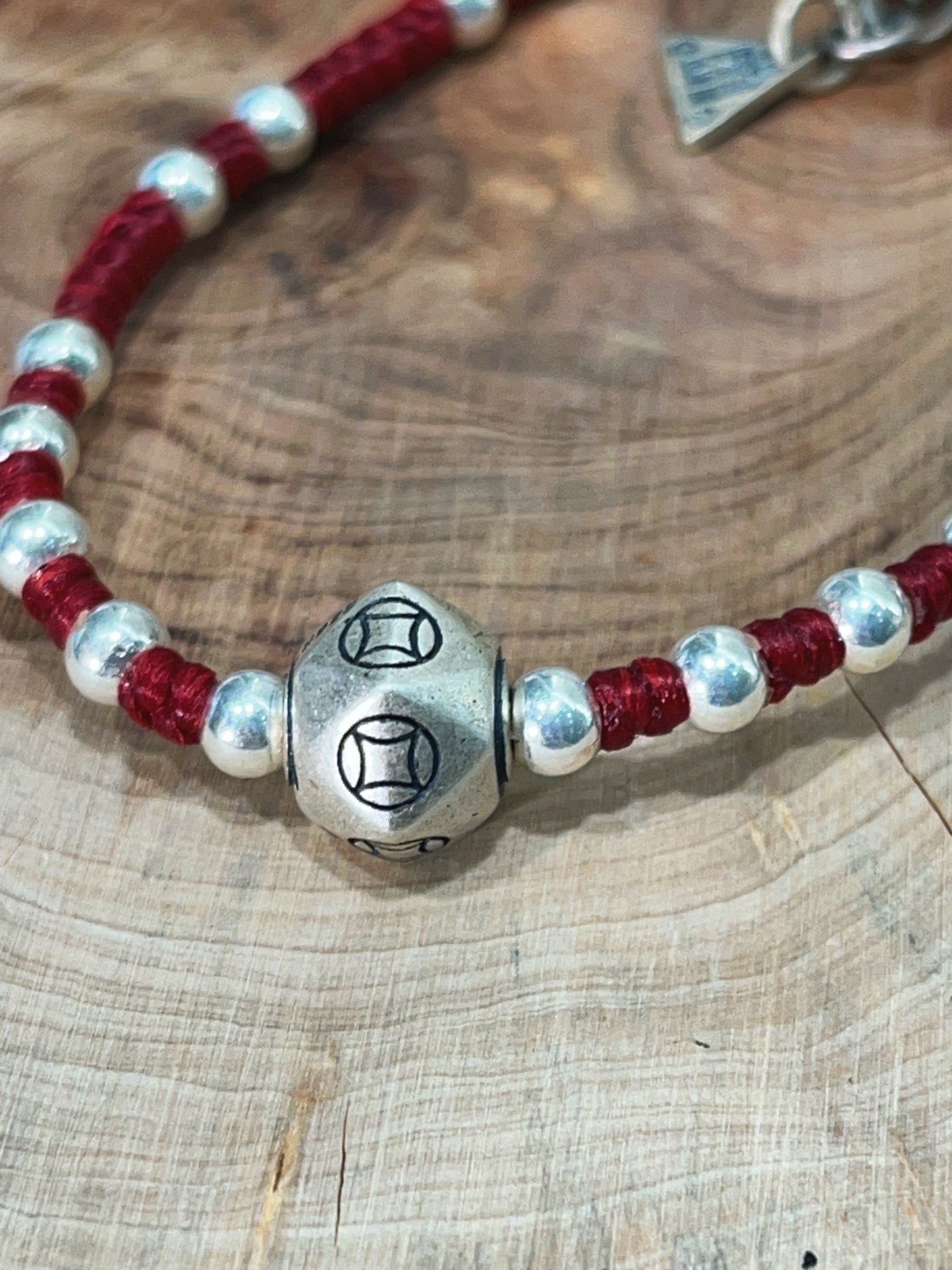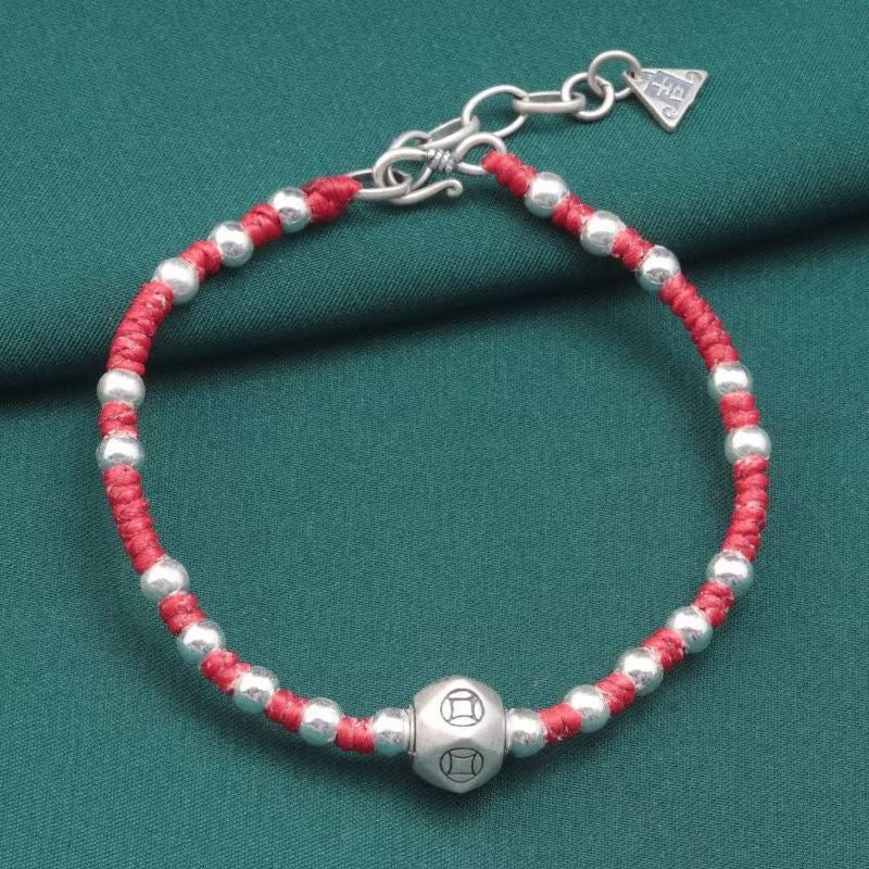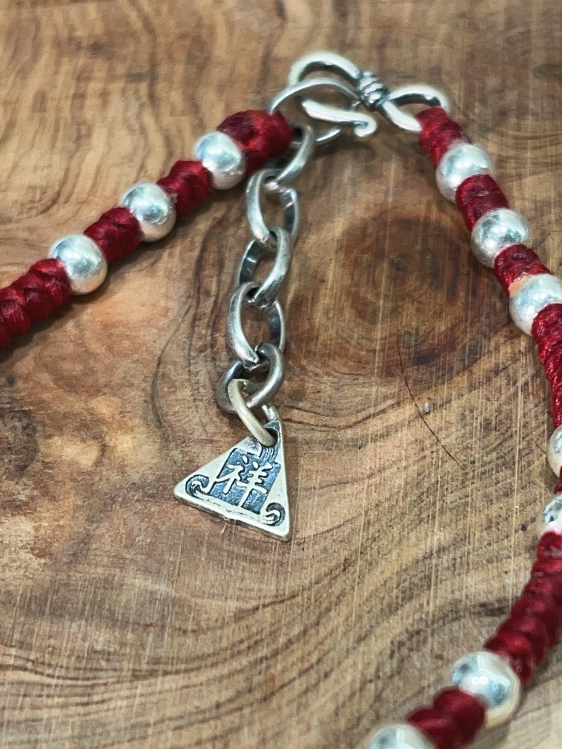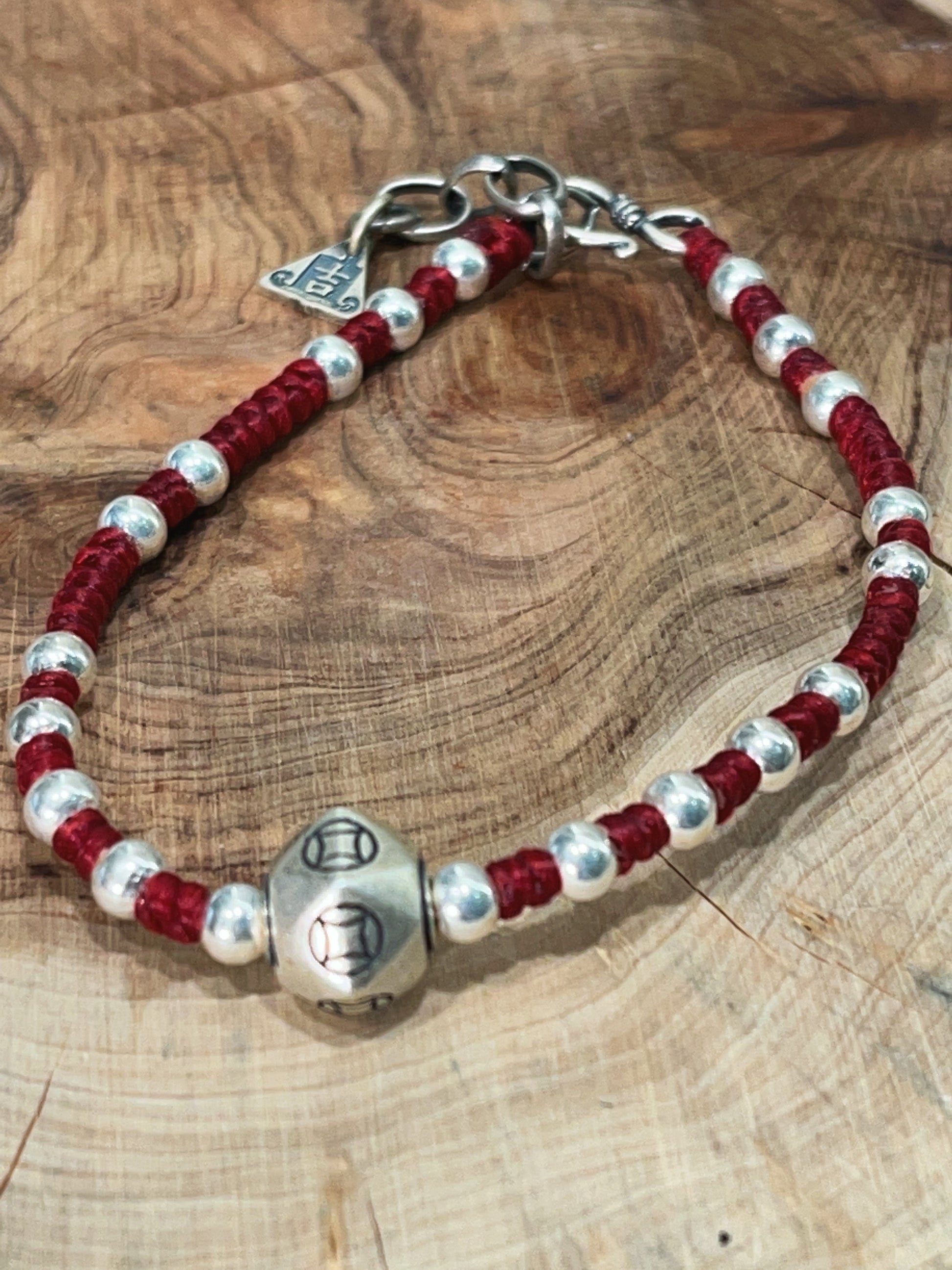 小丞飾 銅錢轉運珠珠蜜蠟紅繩 17+3公分 $690 #90
