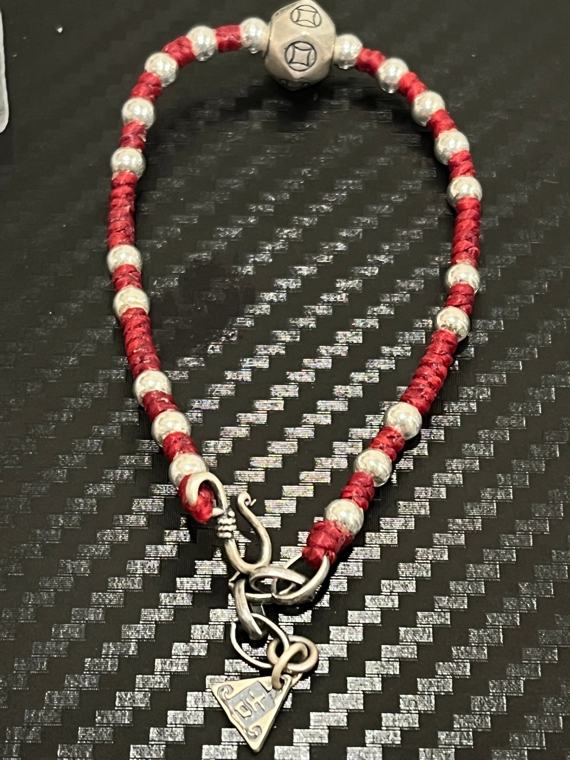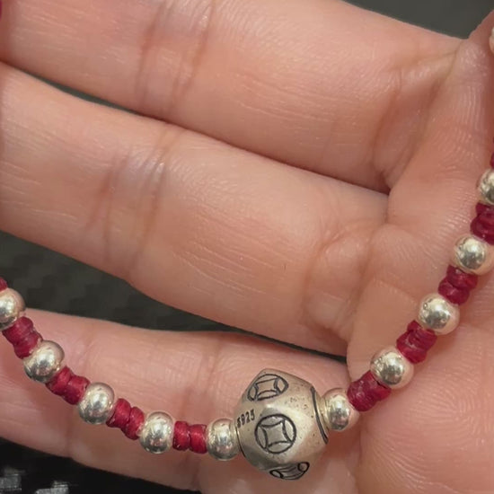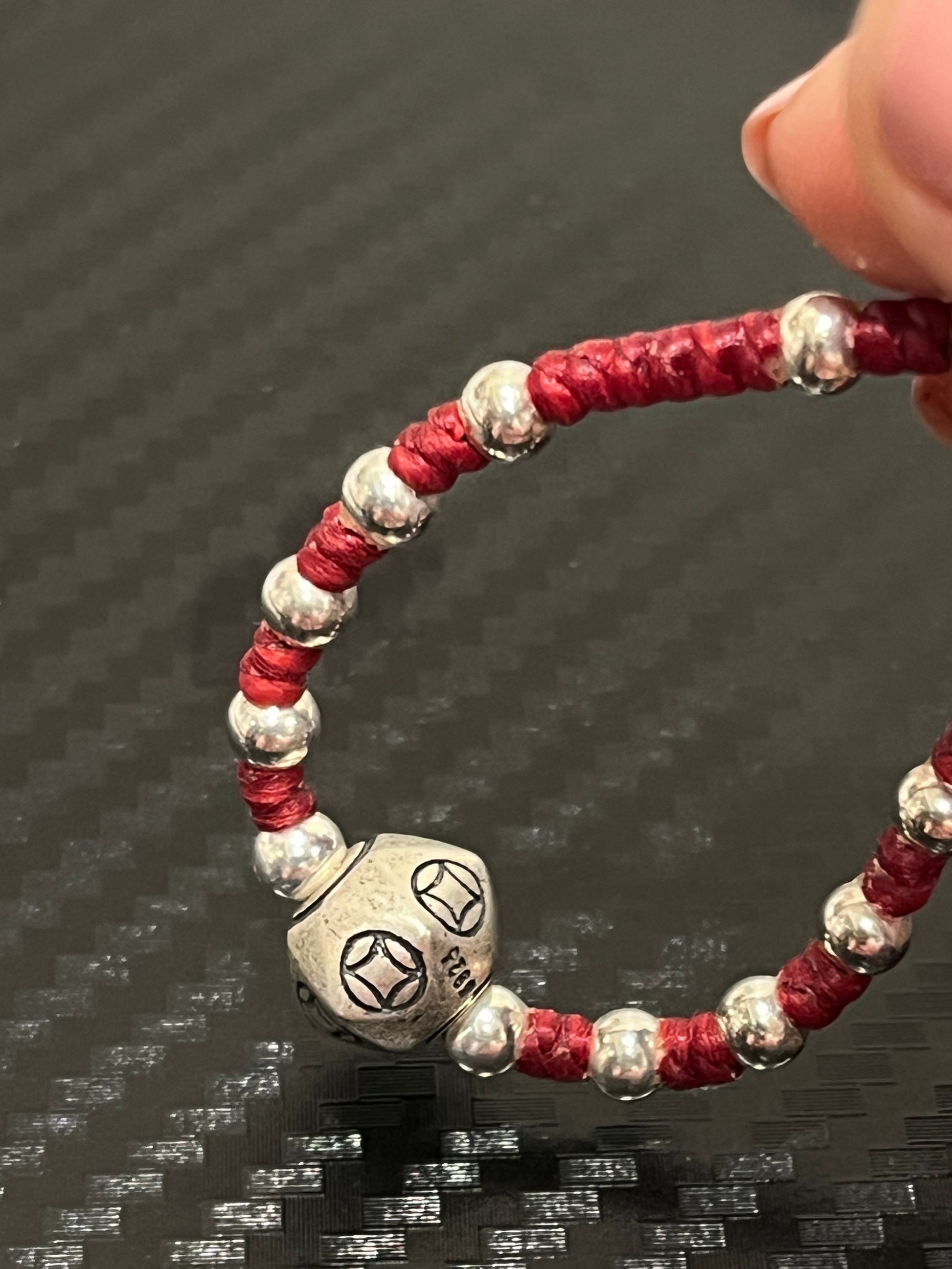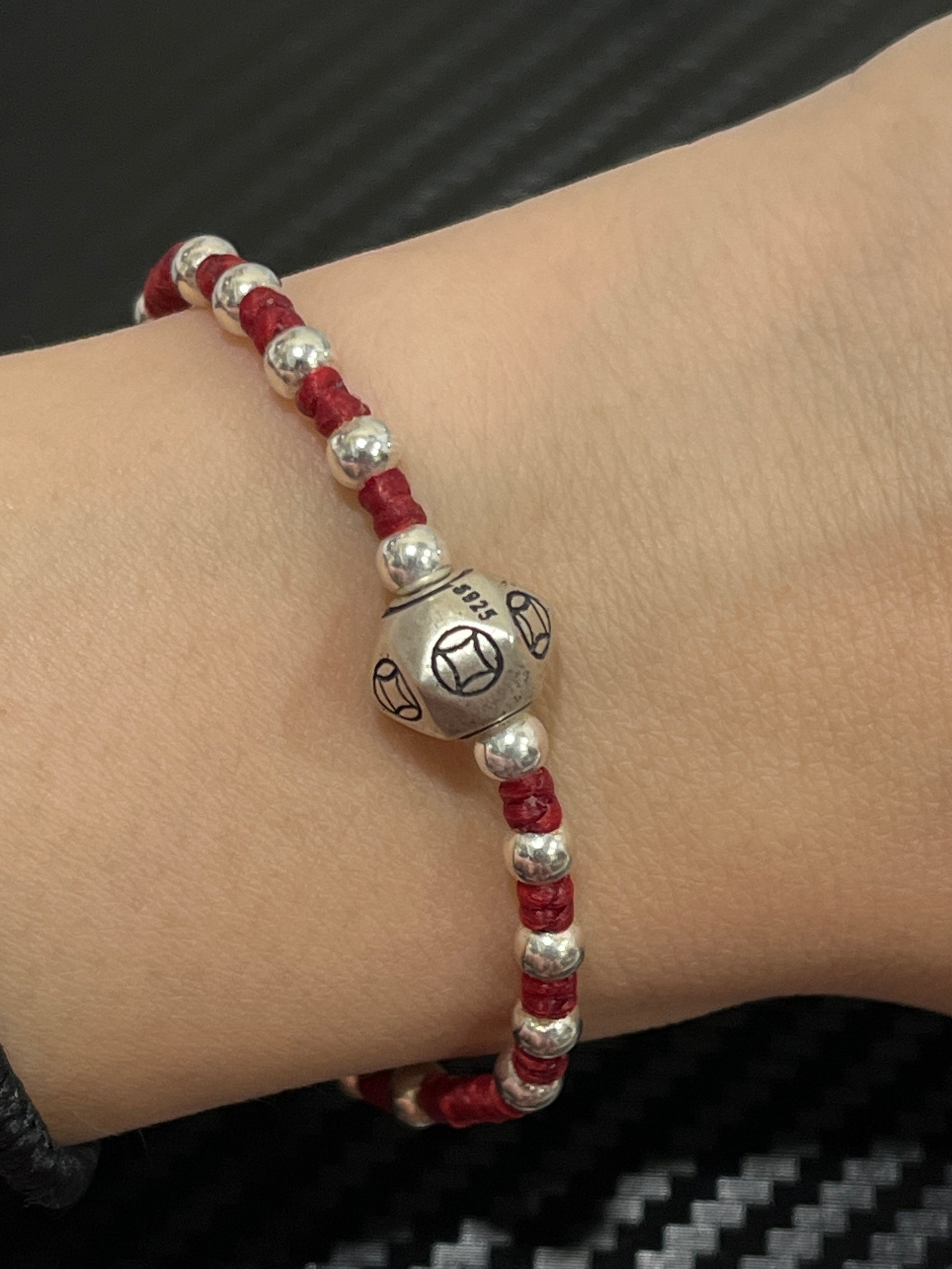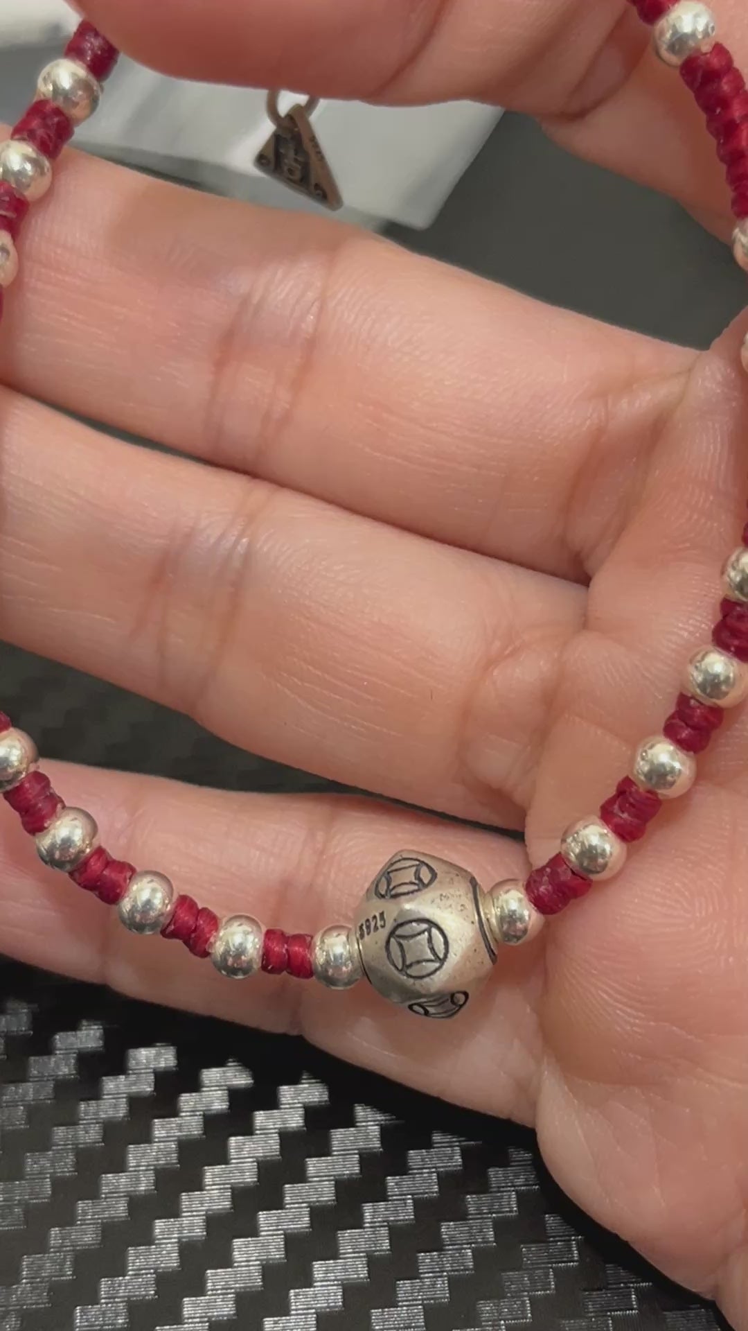 小丞飾 銅錢轉運珠珠蠟繩紅繩 17+3公分 $1290。 B601118