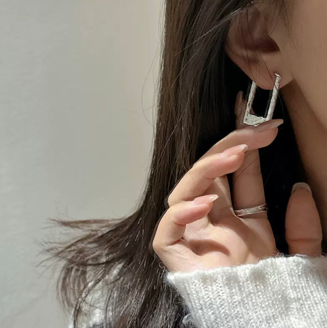 小丞飾 長方形液態不規則紋路個性耳扣 寬10mm 長25mm $490 #165