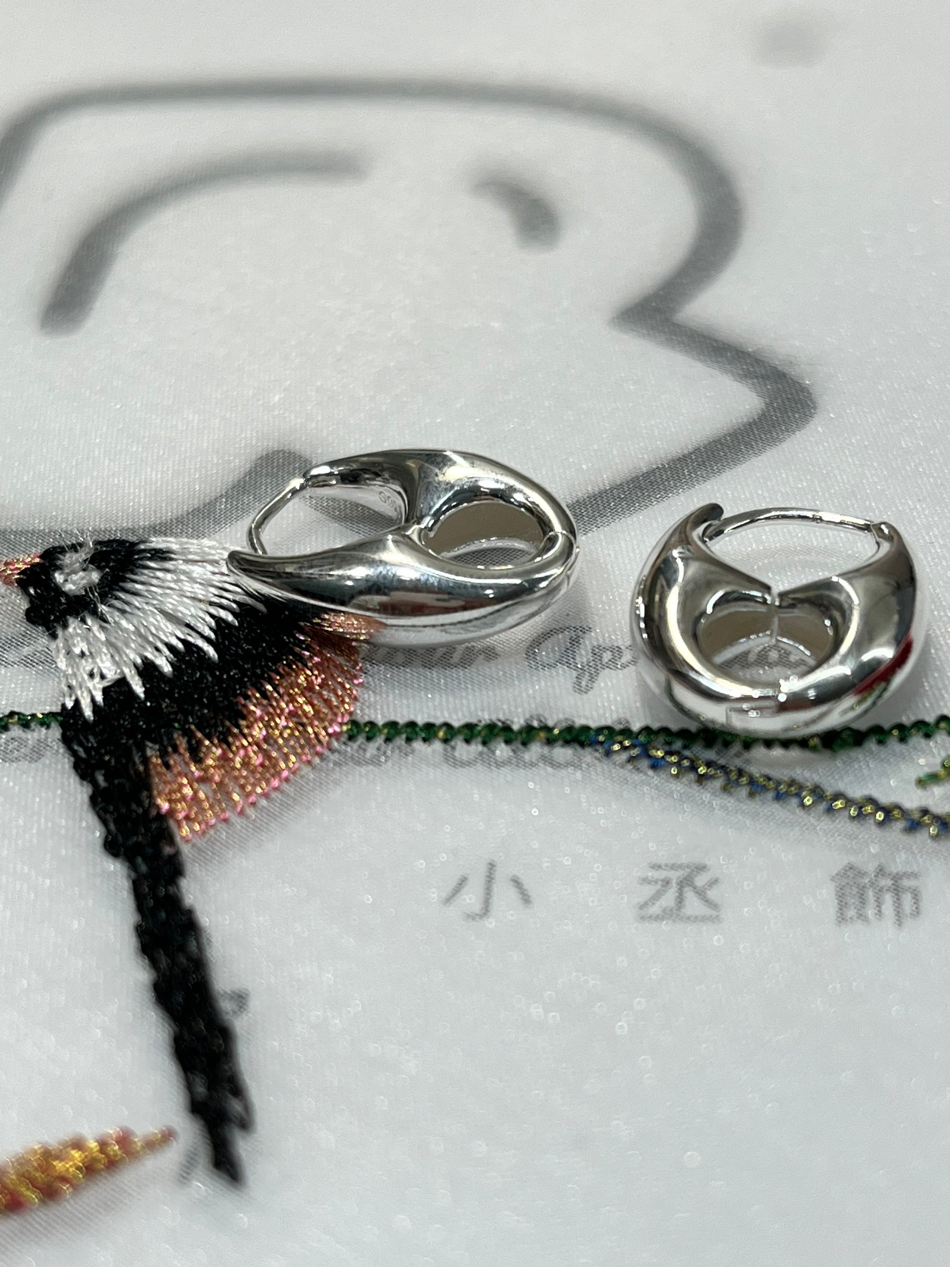 小丞飾 韓國製造厚感豬鼻耳圈 圈口9mm , 豬鼻 寬度14mm #139 銀色款