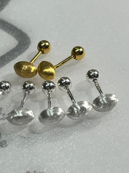 小丞飾 韓國製造霧銀拉絲感轉珠耳環 珠珠3mm, 耳針7mm 丞飾