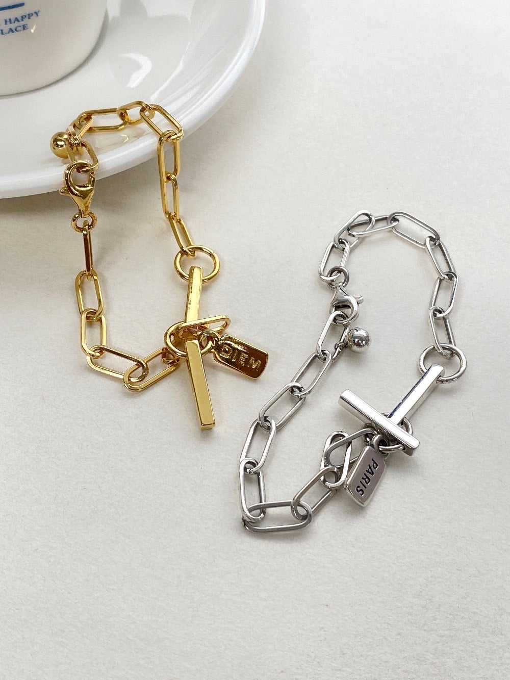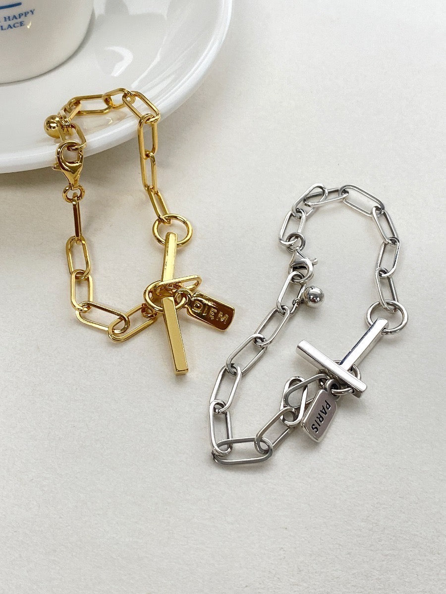 小丞飾 韓國製造幾何橢圓長條手鍊 總長20公分 大小手都適合 小手往前扣銀$1290 #141