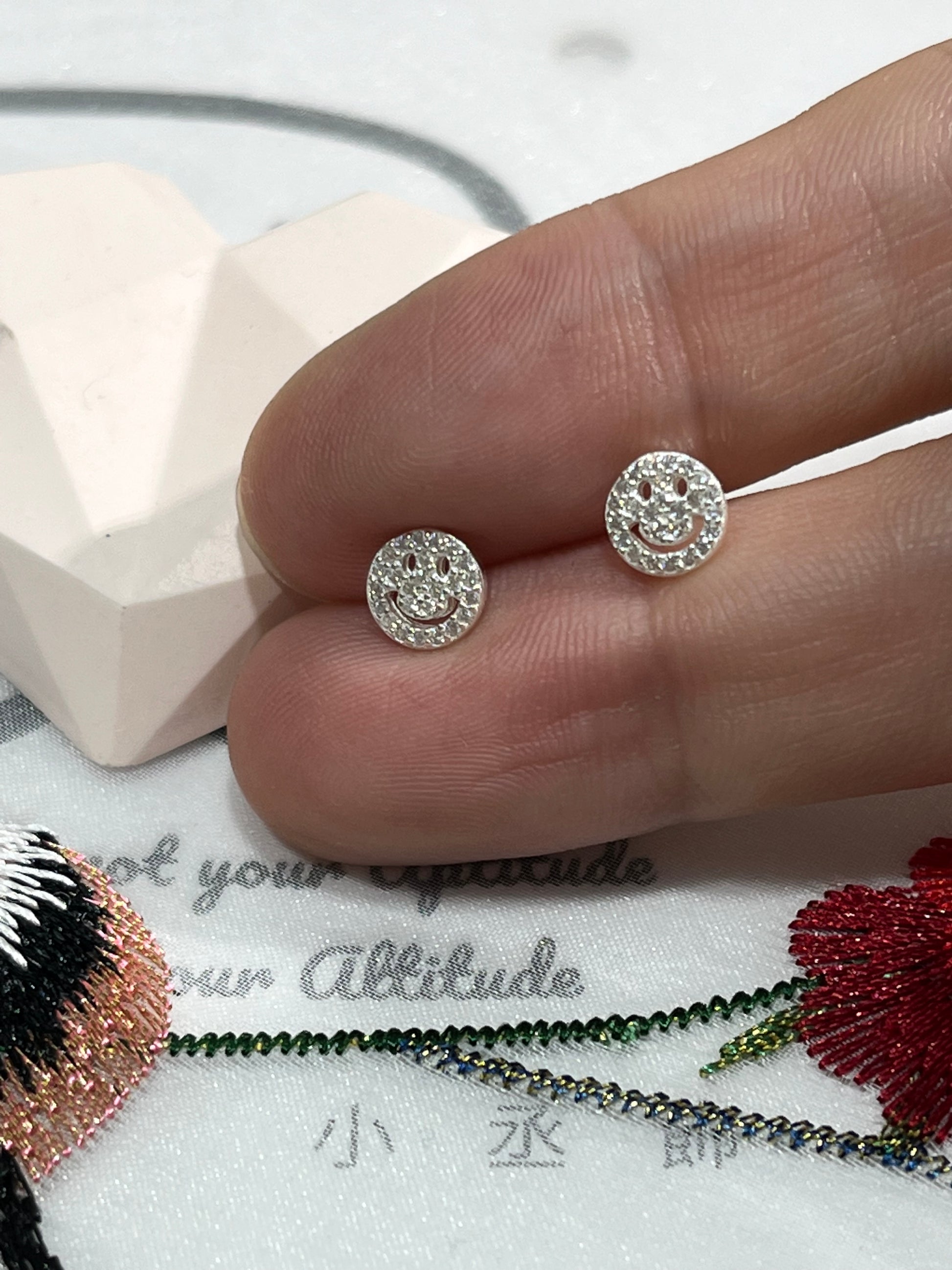 小丞飾 韓國製造 微鑲笑臉😊轉珠耳環 珠珠3mm, 耳針6mm #113