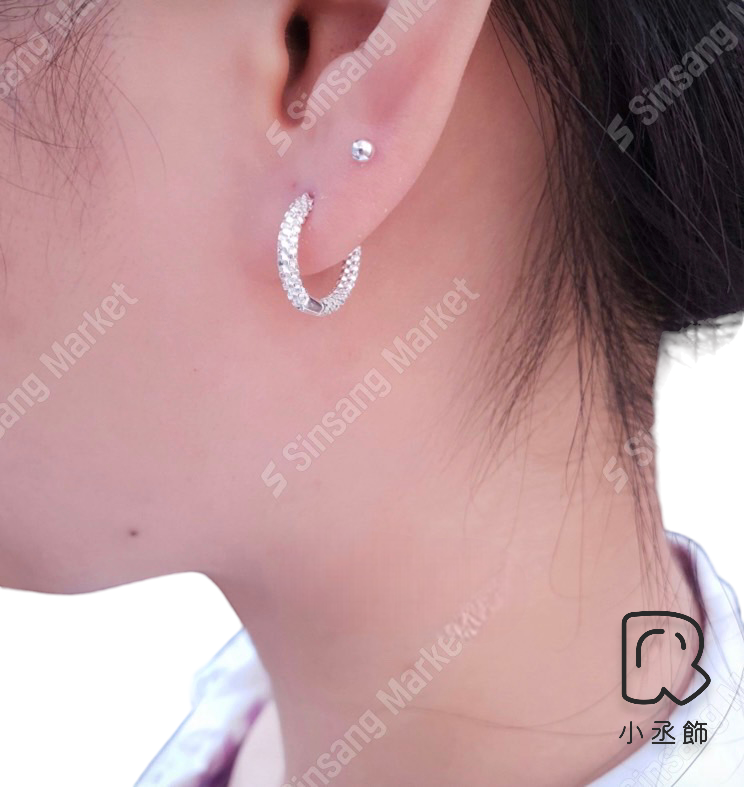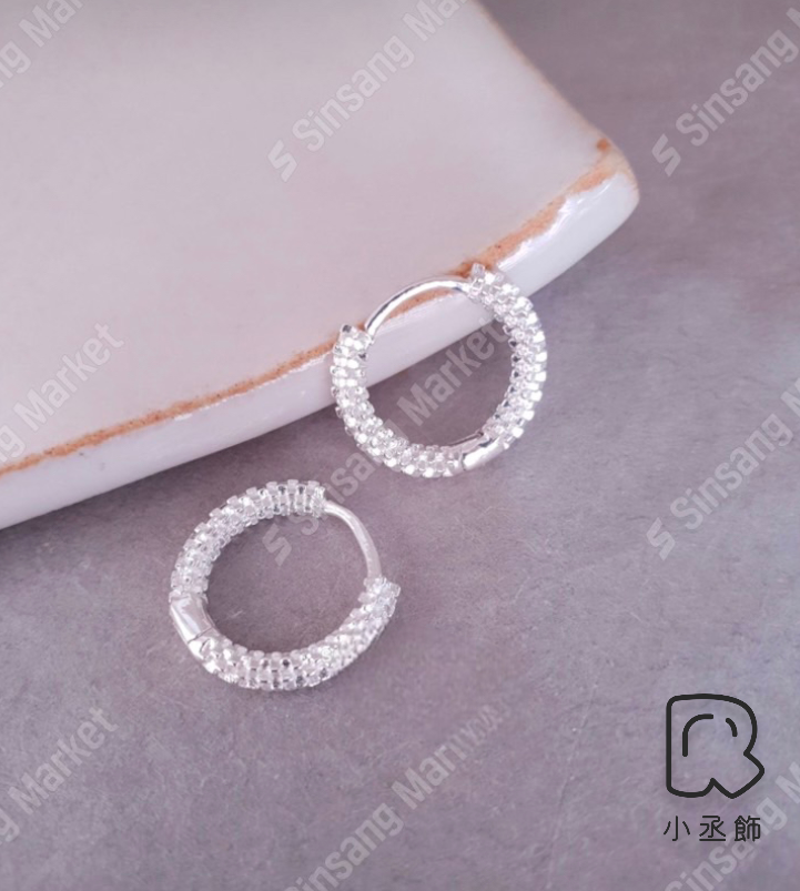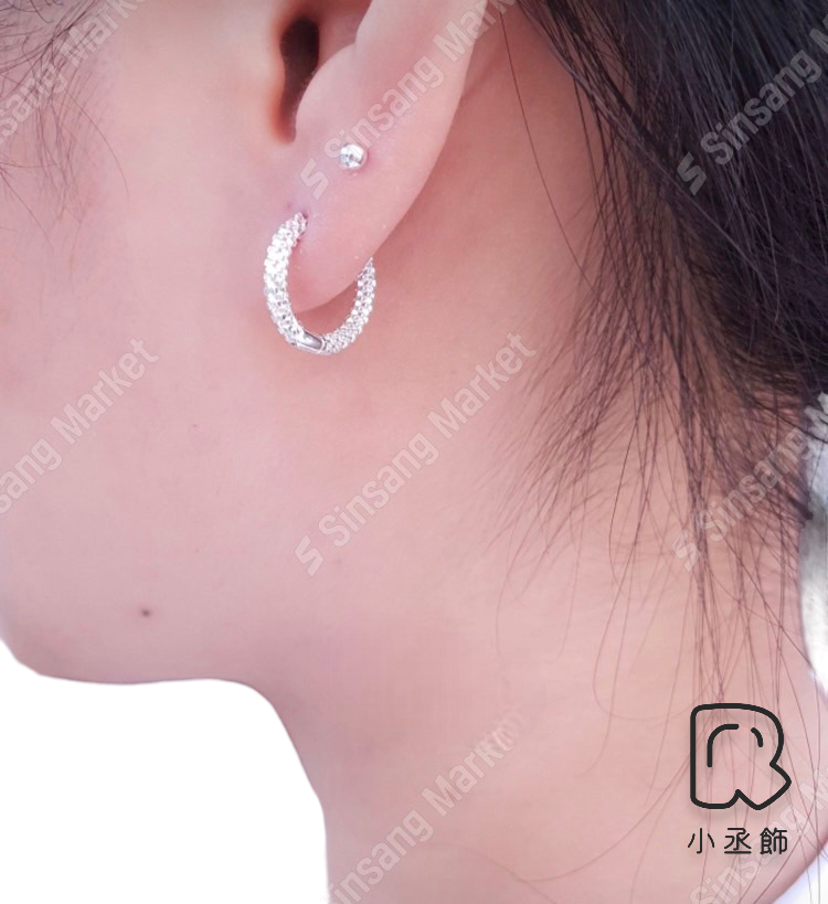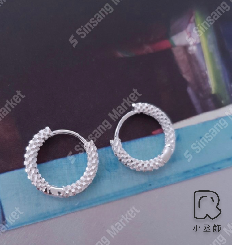 小丞飾 韓國製造 碎銀質感1.5公分 圈圈耳扣 #102 $490