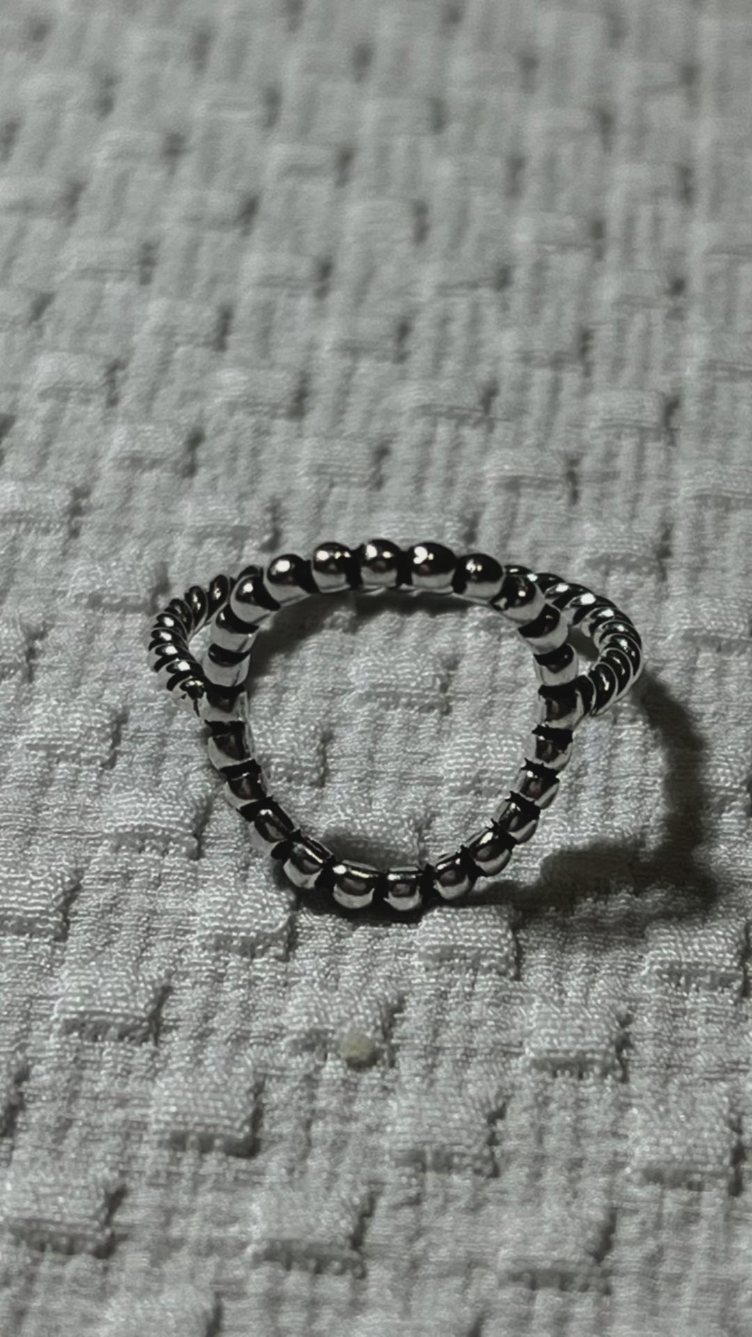 經典素款,又獨具特色的戒指!不同凡響的麻花戒台與正面的滿圈銀色豆豆,彰顯你的品味。正面豆豆圓弧面設計更符合人體工學,戴起來舒適無比。