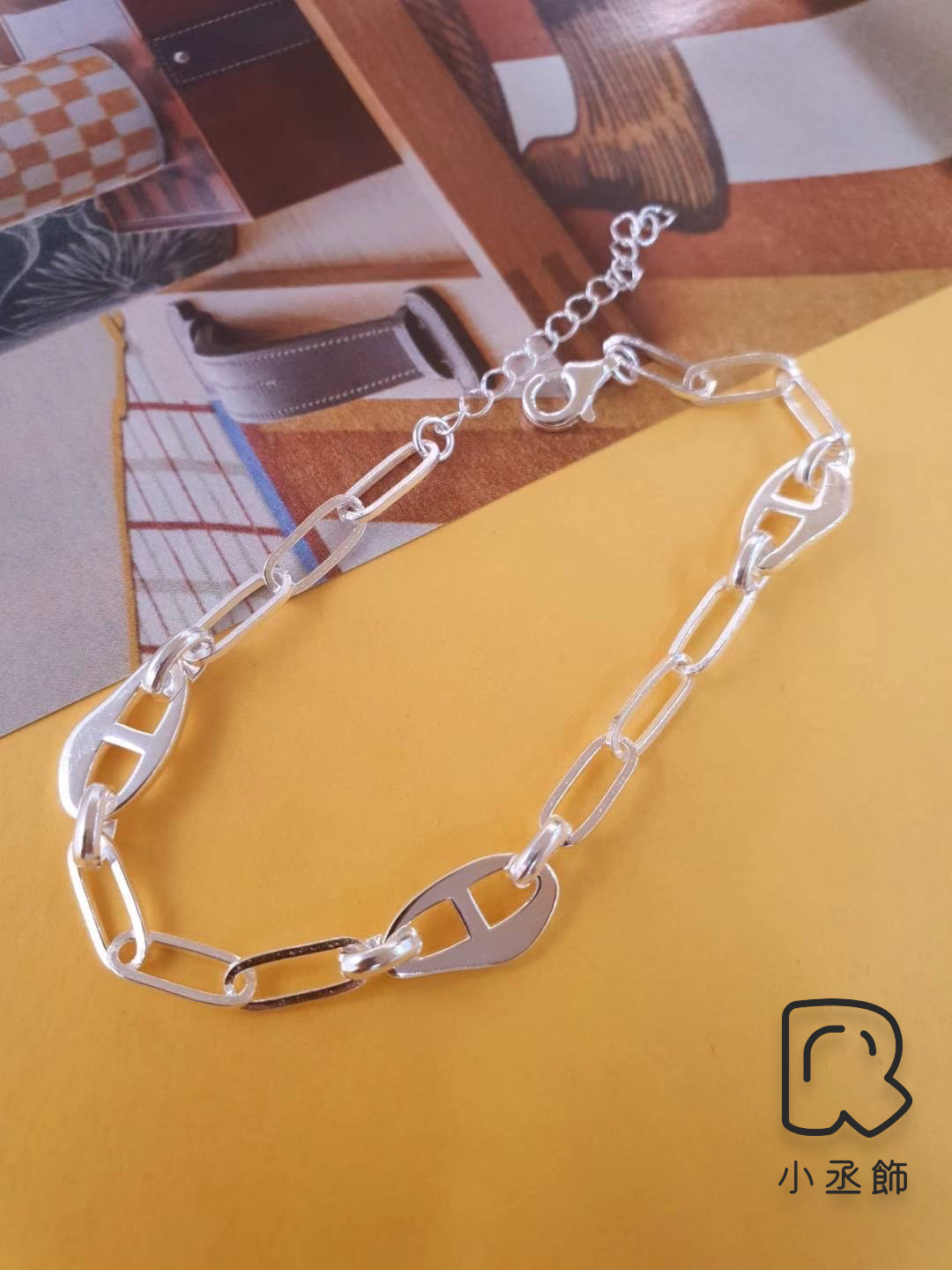 小丞飾 韓國製造迴紋針鏈條個性豬鼻手鍊16+3公分$1190 #94