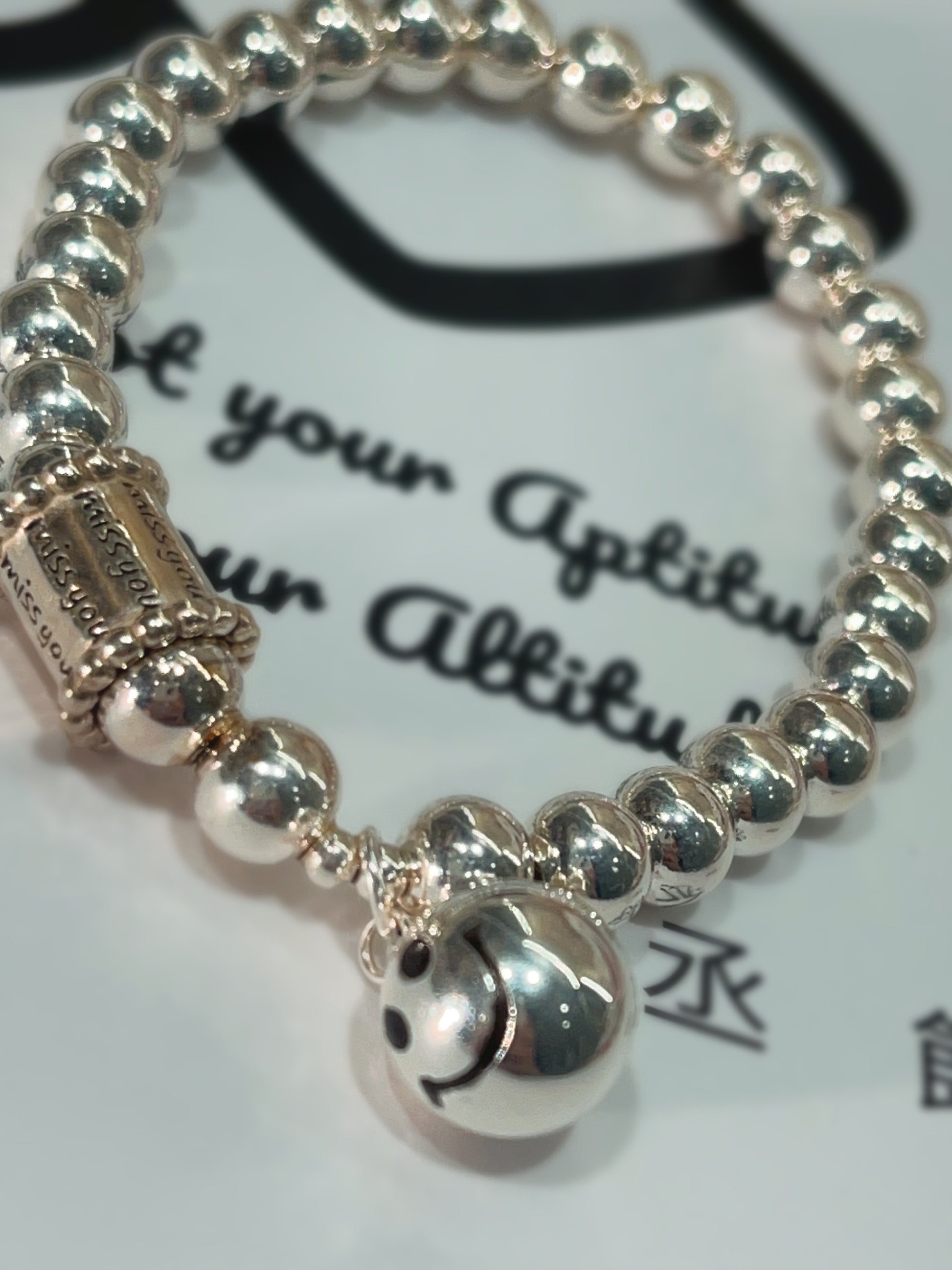 小丞飾 6mm 圓珠miss you 轉運桶彈力繩手鍊 16公分,笑臉珠珠10mm #162