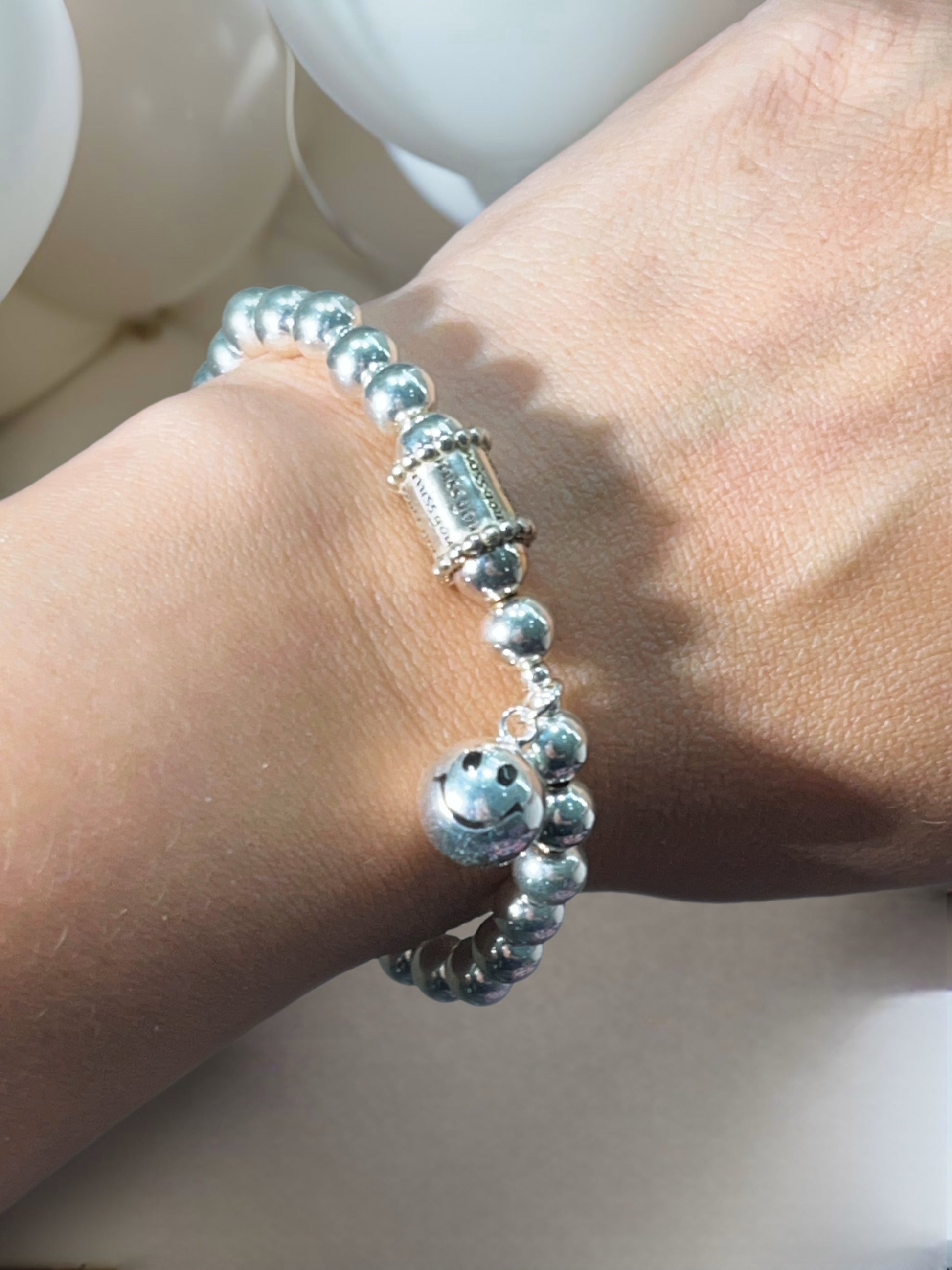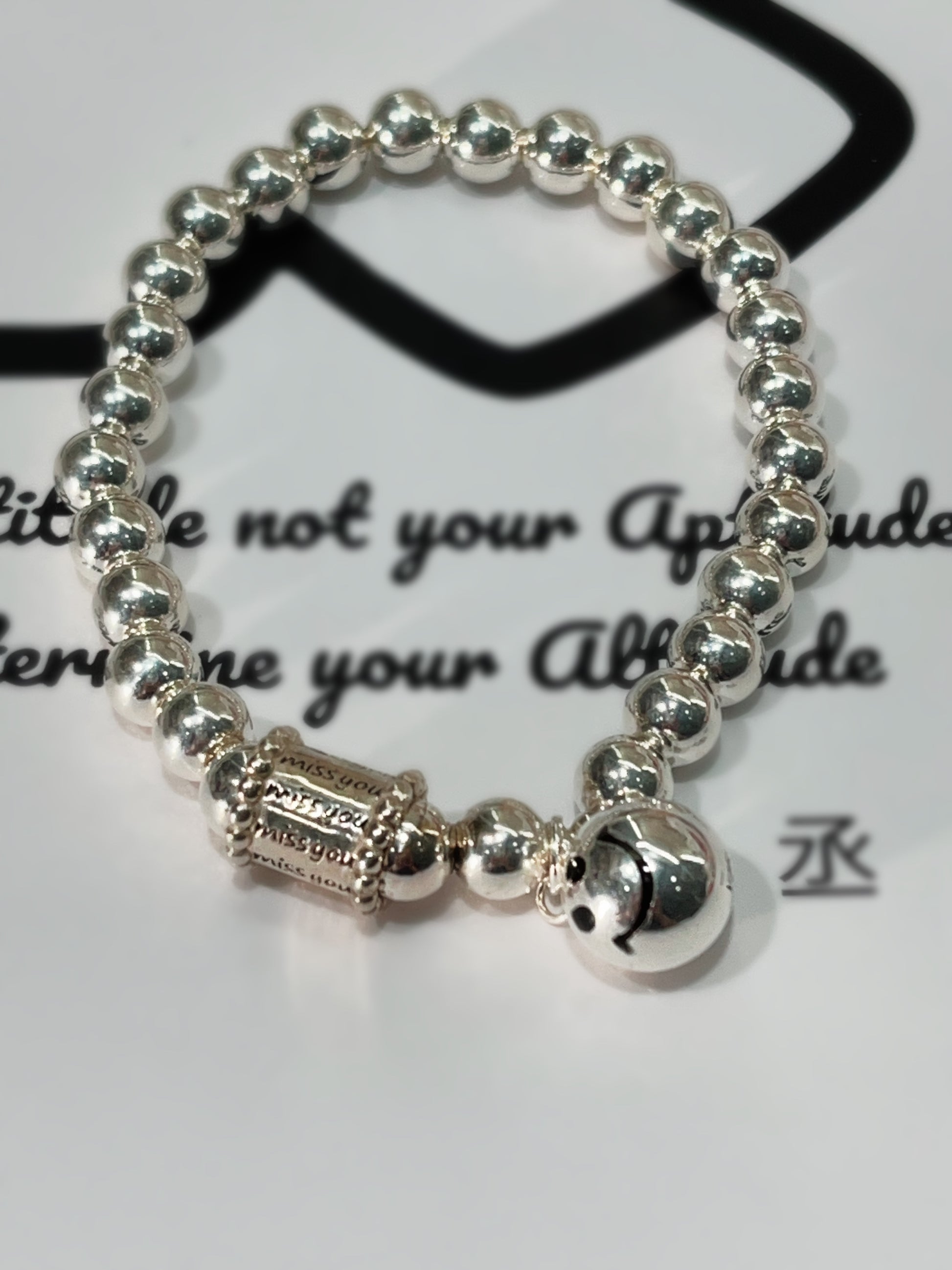 小丞飾 6mm 圓珠miss you 轉運桶彈力繩手鍊 16公分,笑臉珠珠10mm