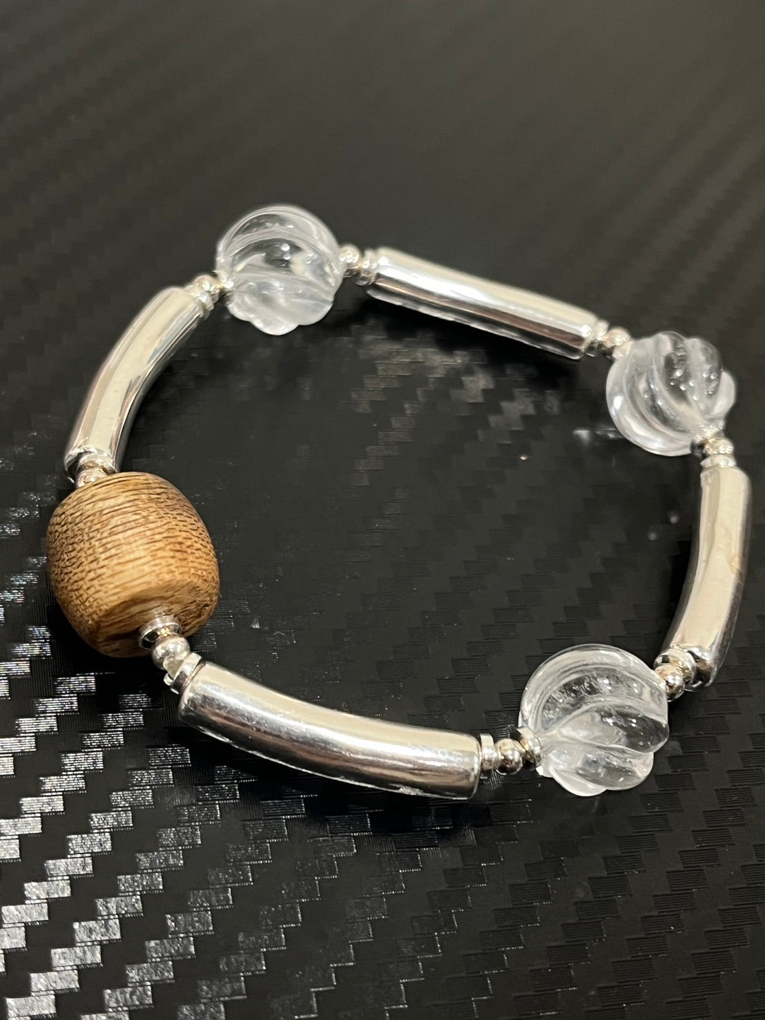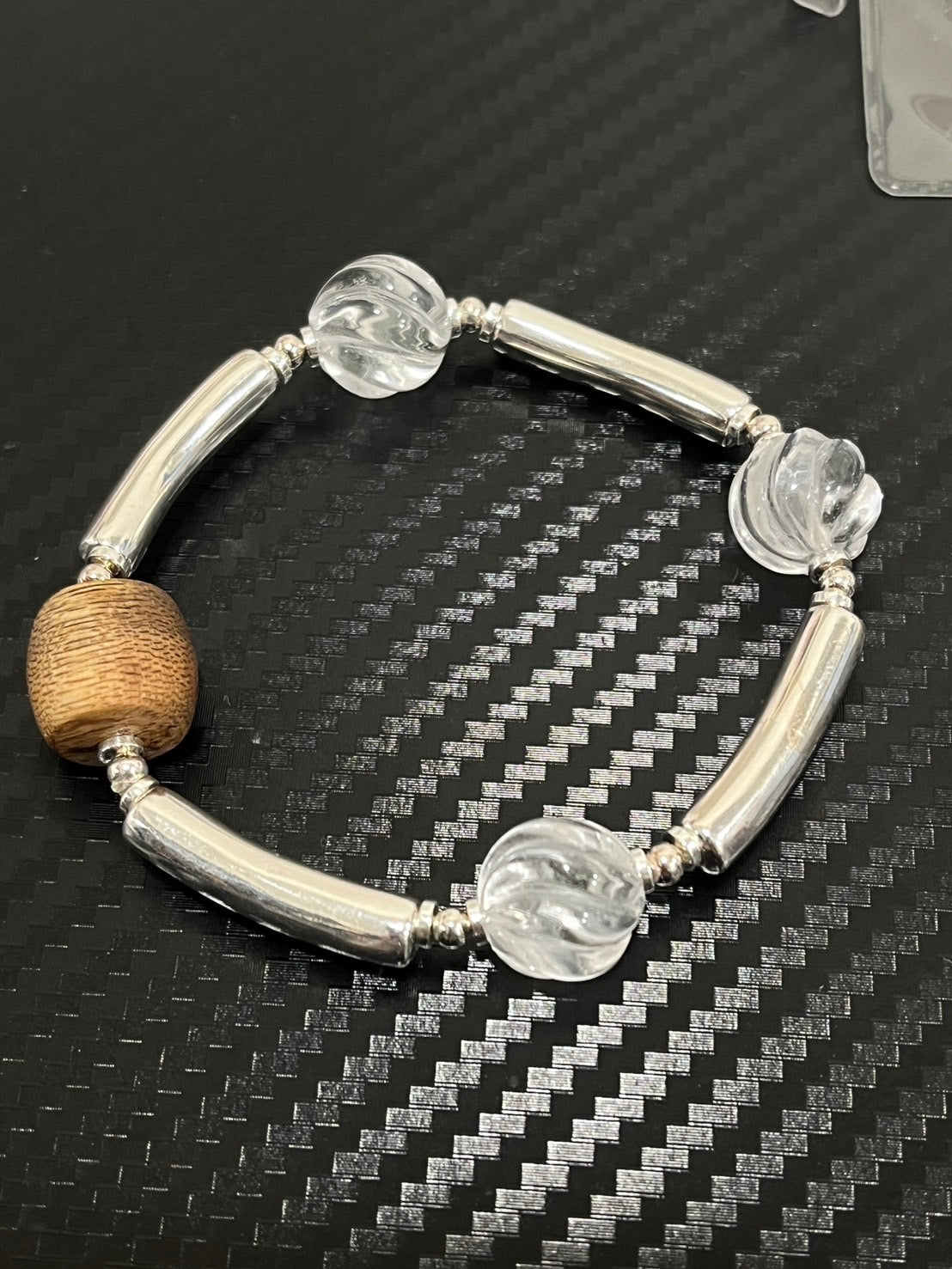 925 銀管珠 × 手工透明玻璃珠 × 天然木質珠