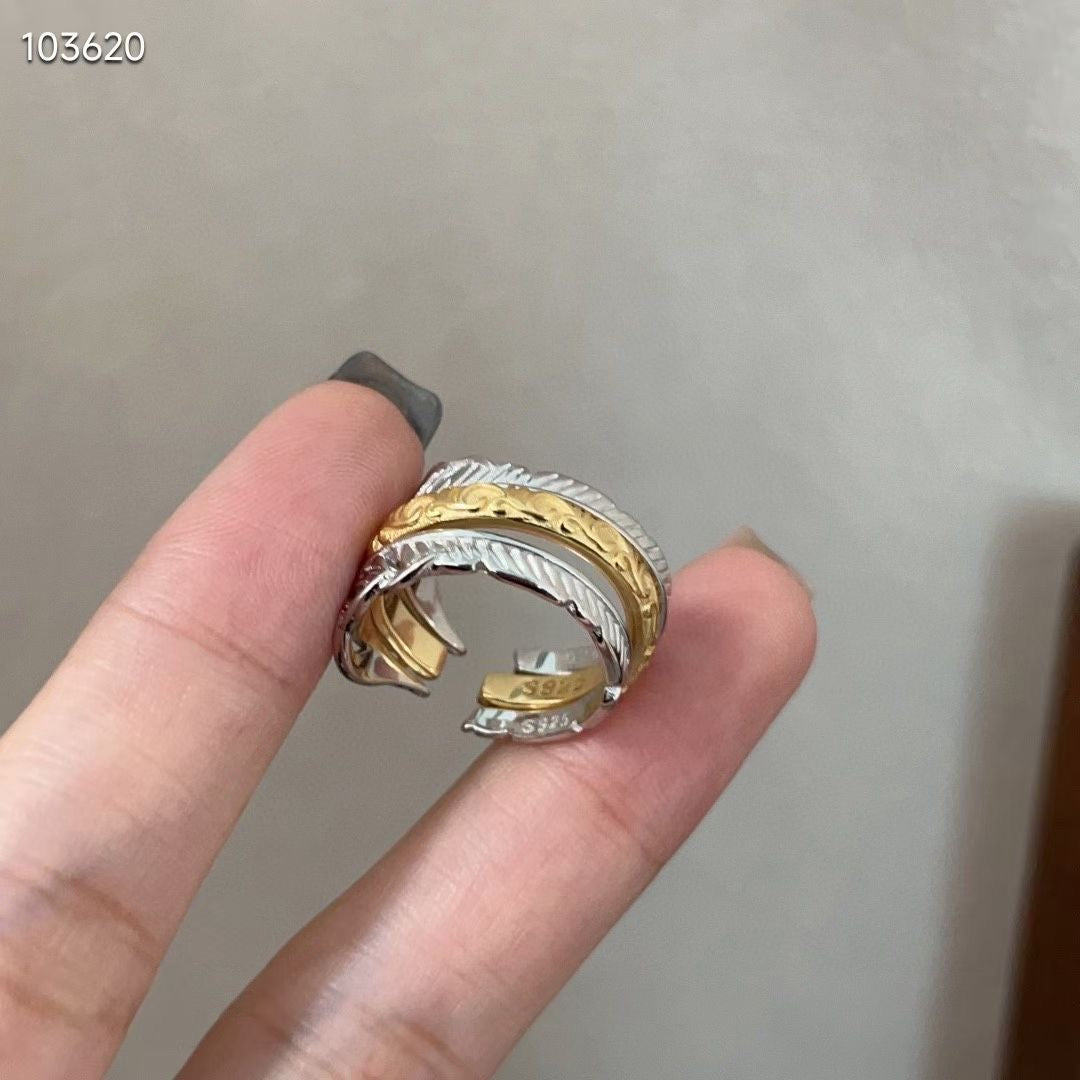 小丞飾 s925 銀 三層可拆分金銀撞色羽毛戒指 一組三顆戒指$790 #26