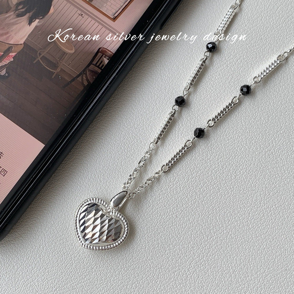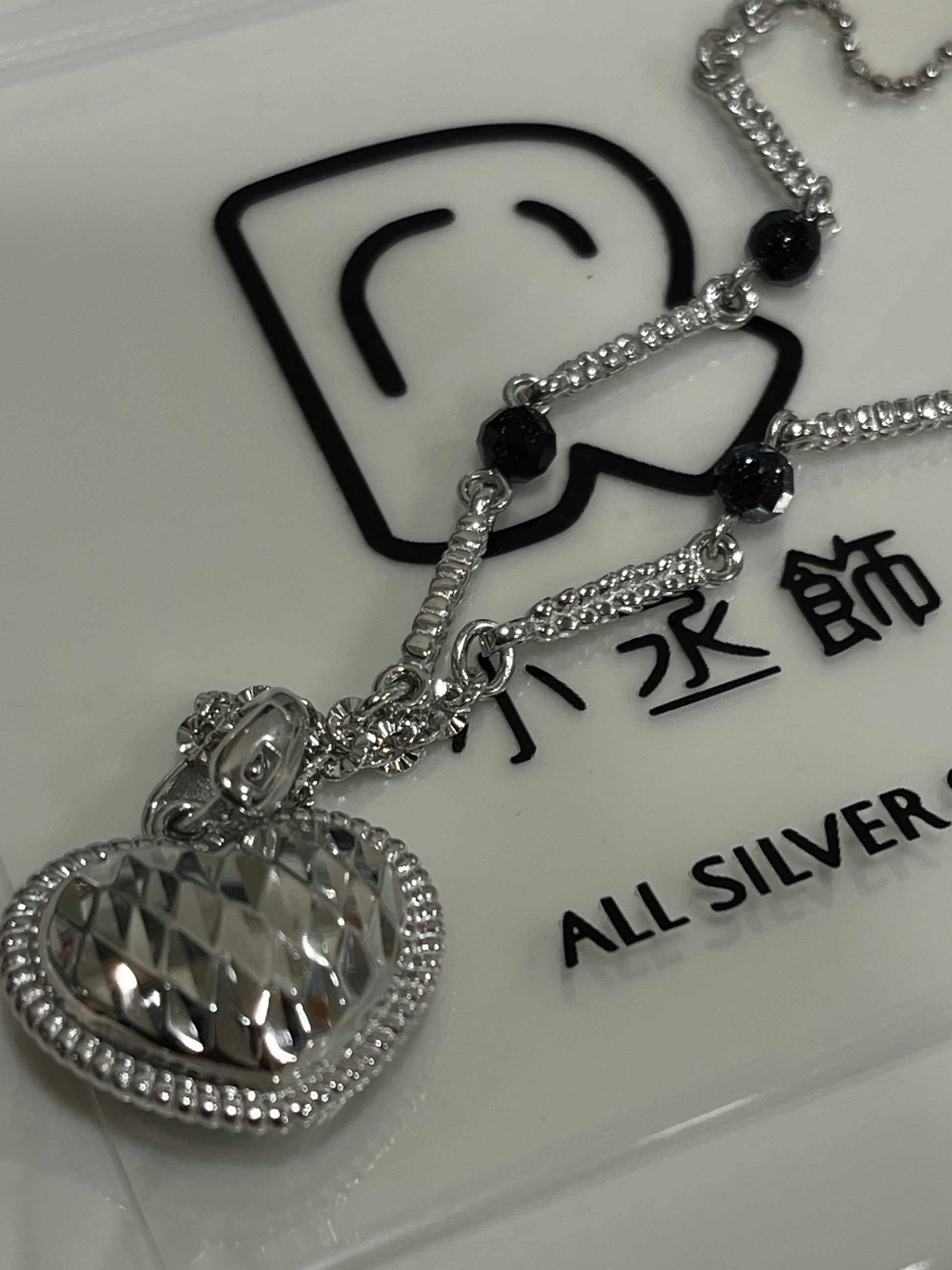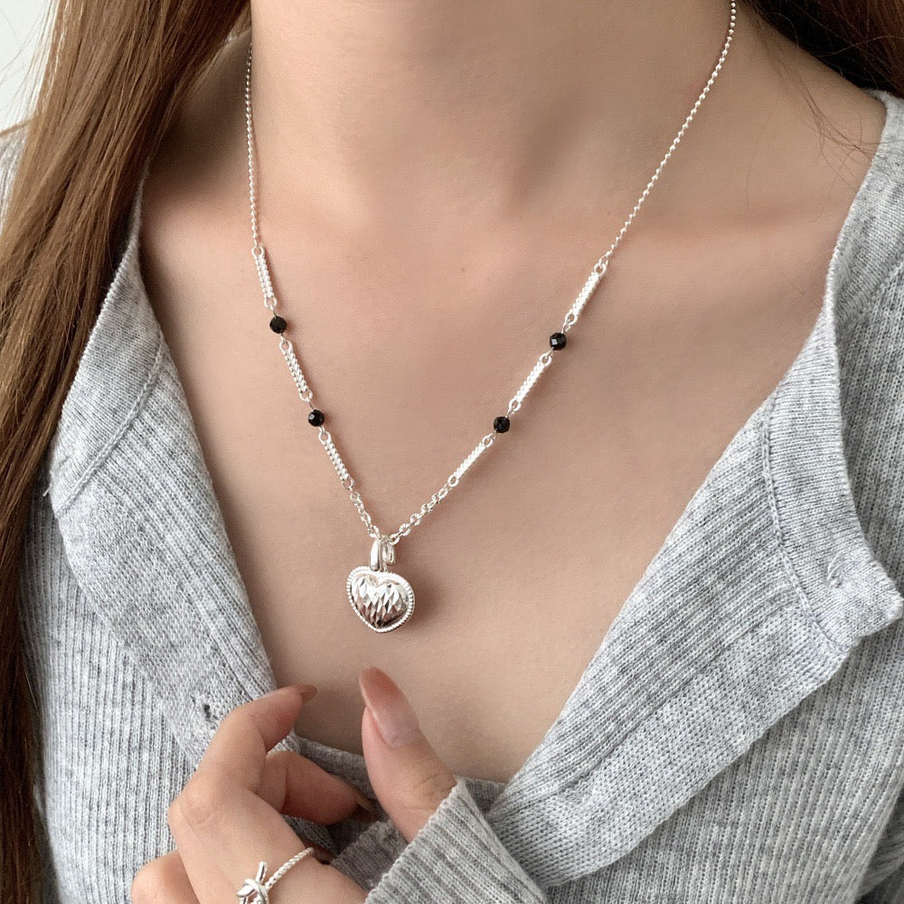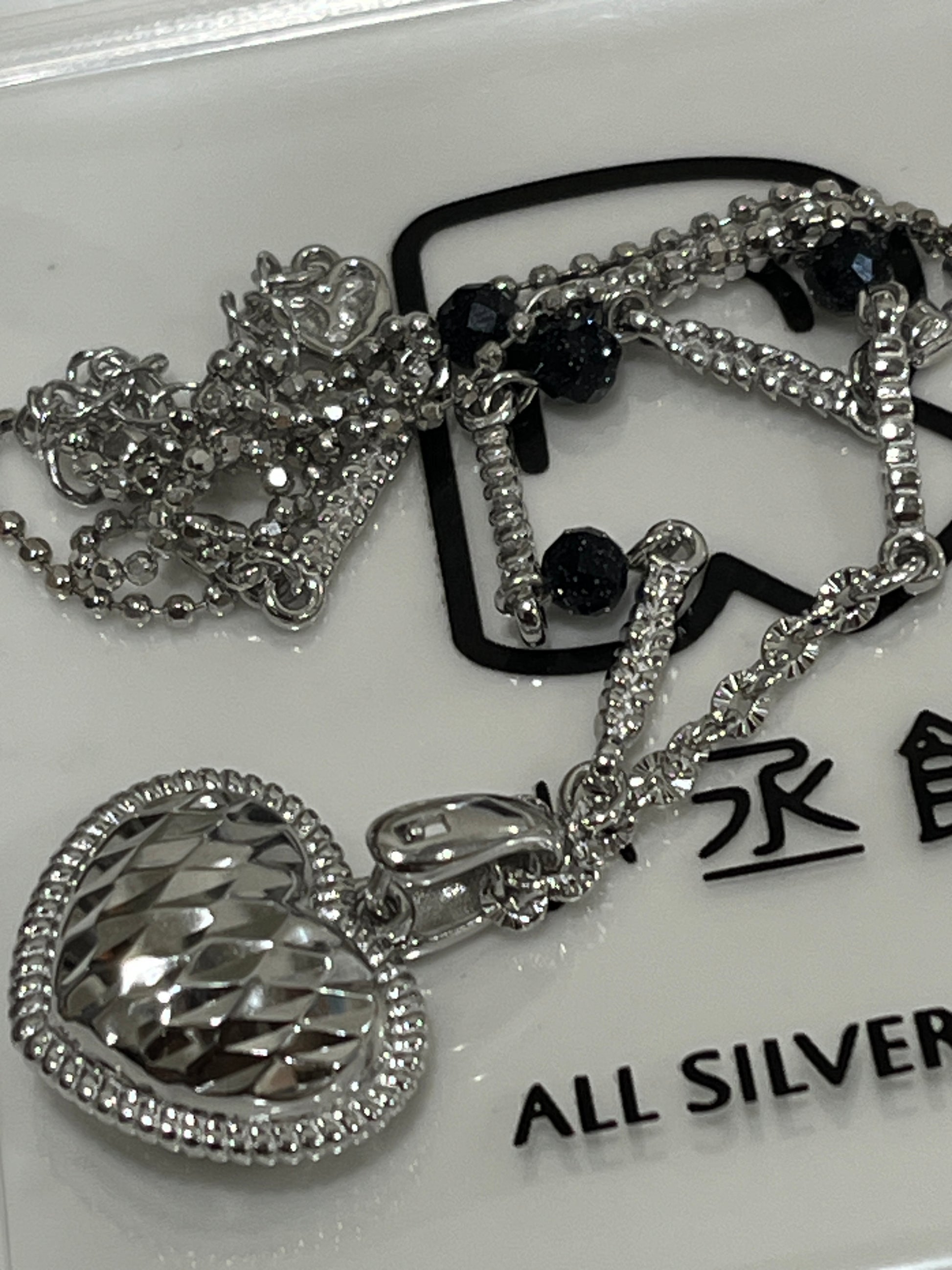 小丞飾_S925純銀混搭風 菱格紋愛心吊墜豆豆項鏈 愛心吊墜可拆 49+5公分 $1690 #1031-1N