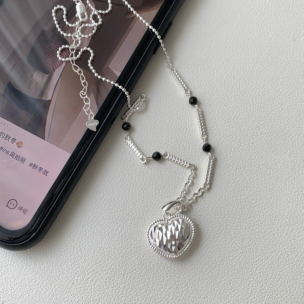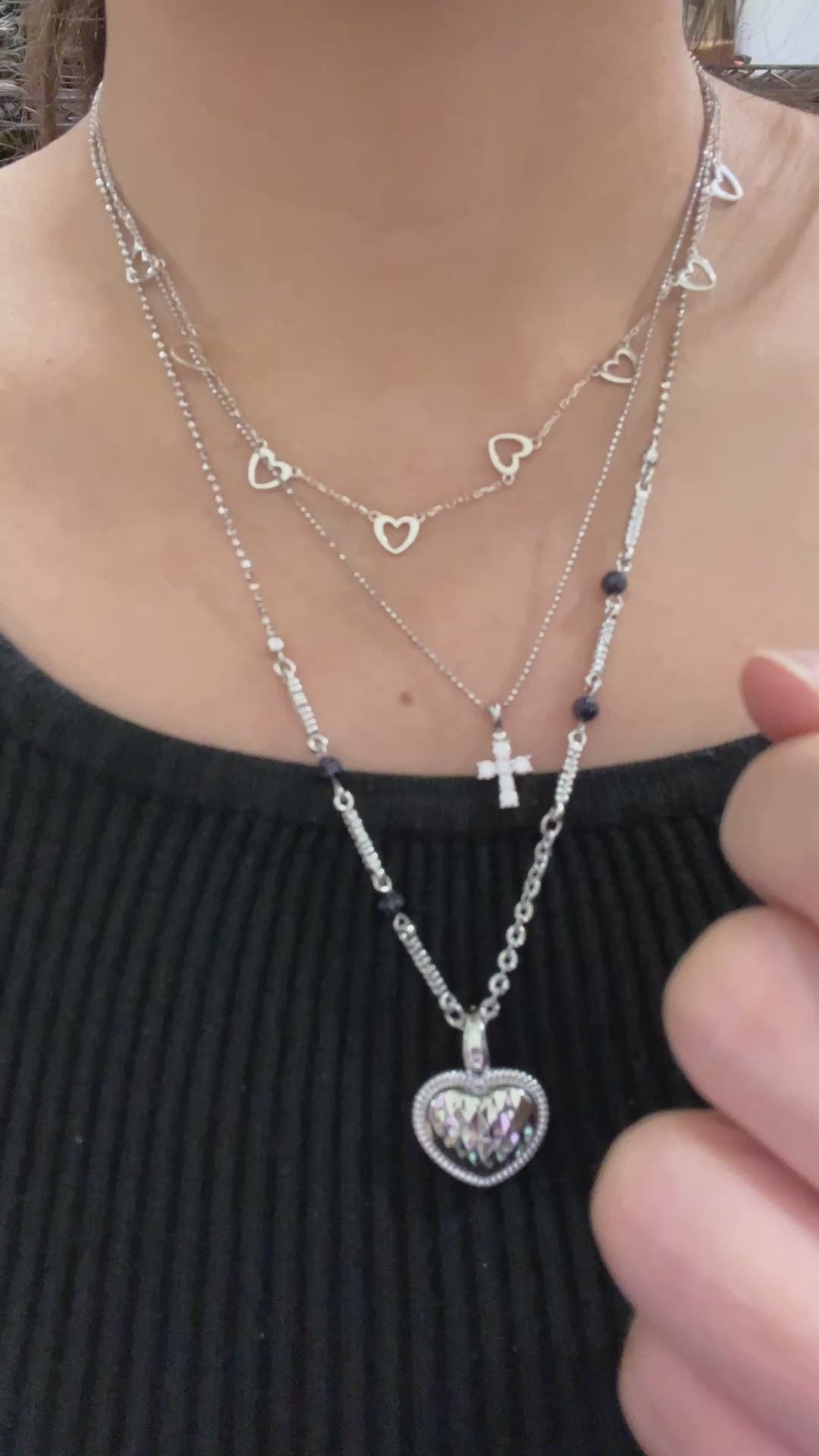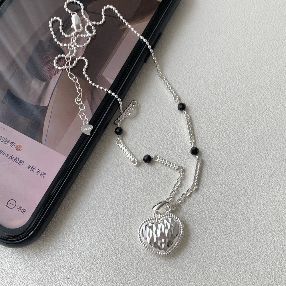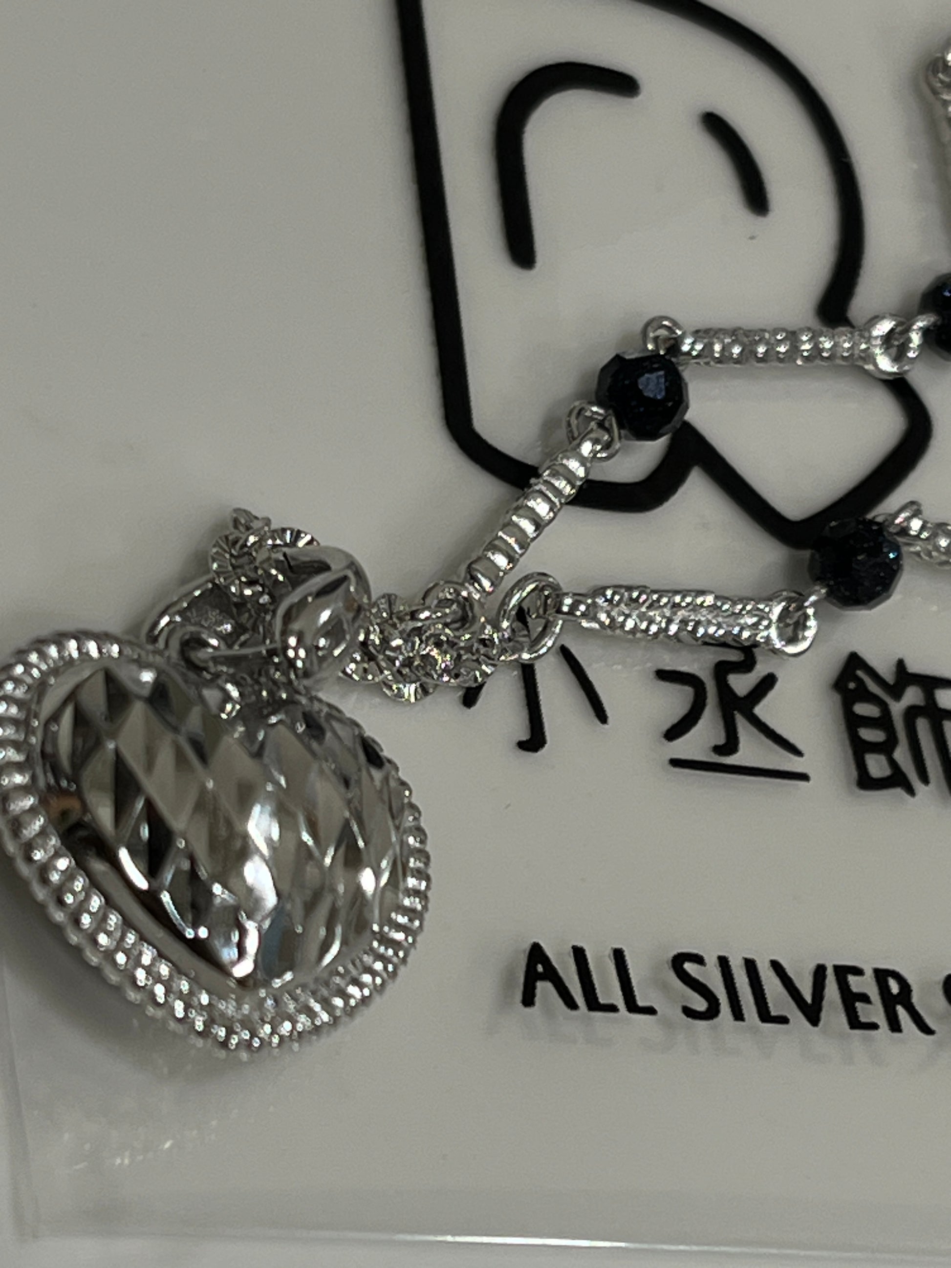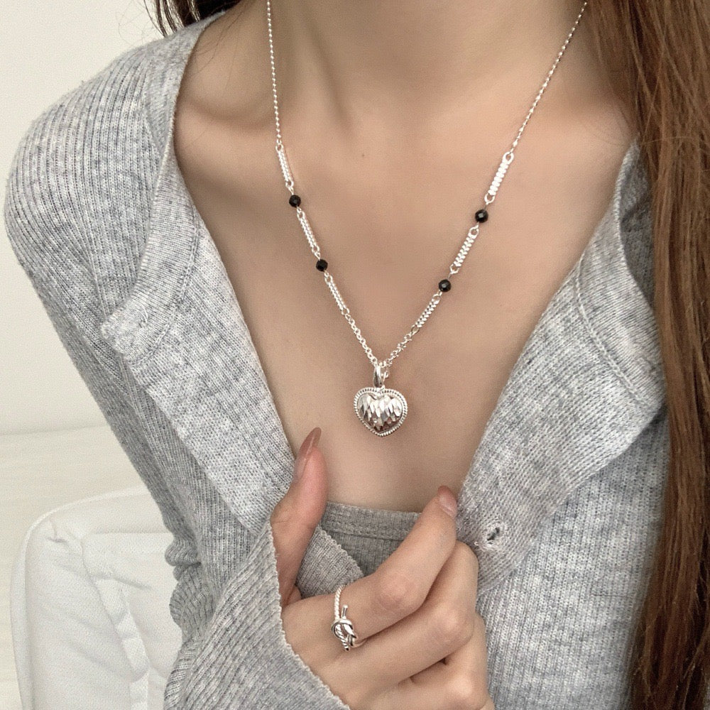 小丞飾_S925純銀混搭風 菱格紋愛心吊墜豆豆項鏈 愛心吊墜可拆 49+5公分 $1690 #1031-1N