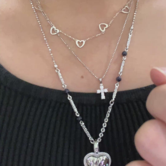 小丞飾_S925純銀混搭風 菱格紋愛心吊墜豆豆項鏈 愛心吊墜可拆