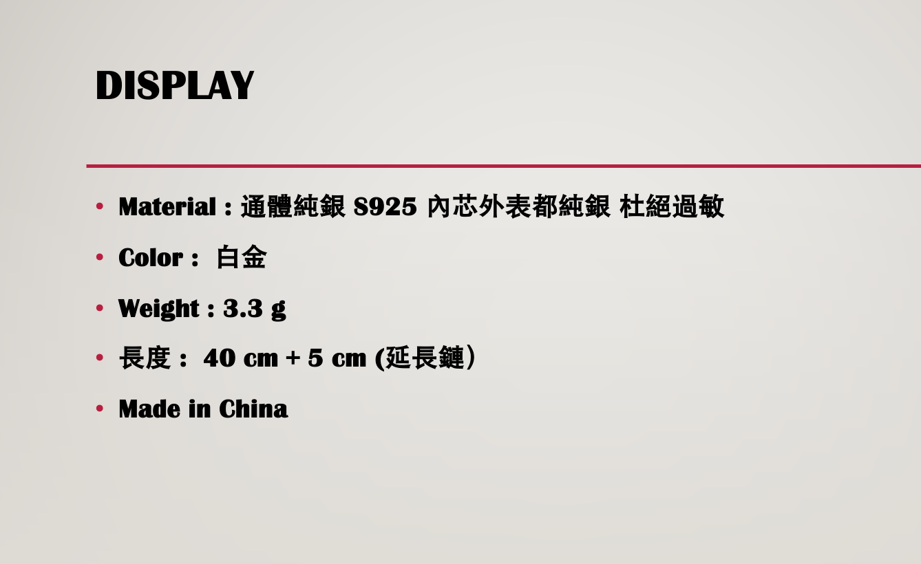 •長度 : 40 cm + 5 cm (延長鏈)