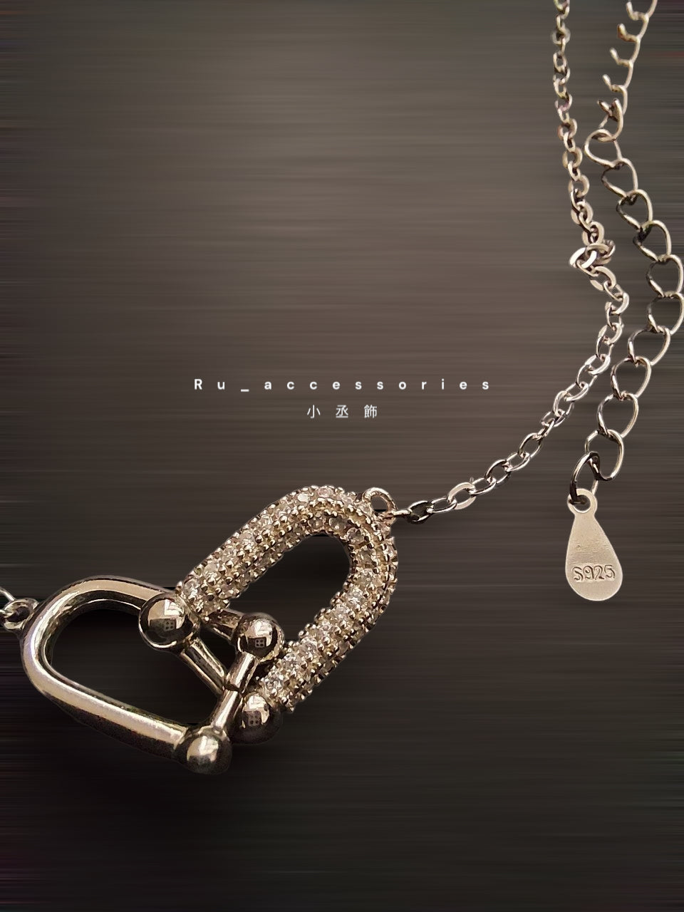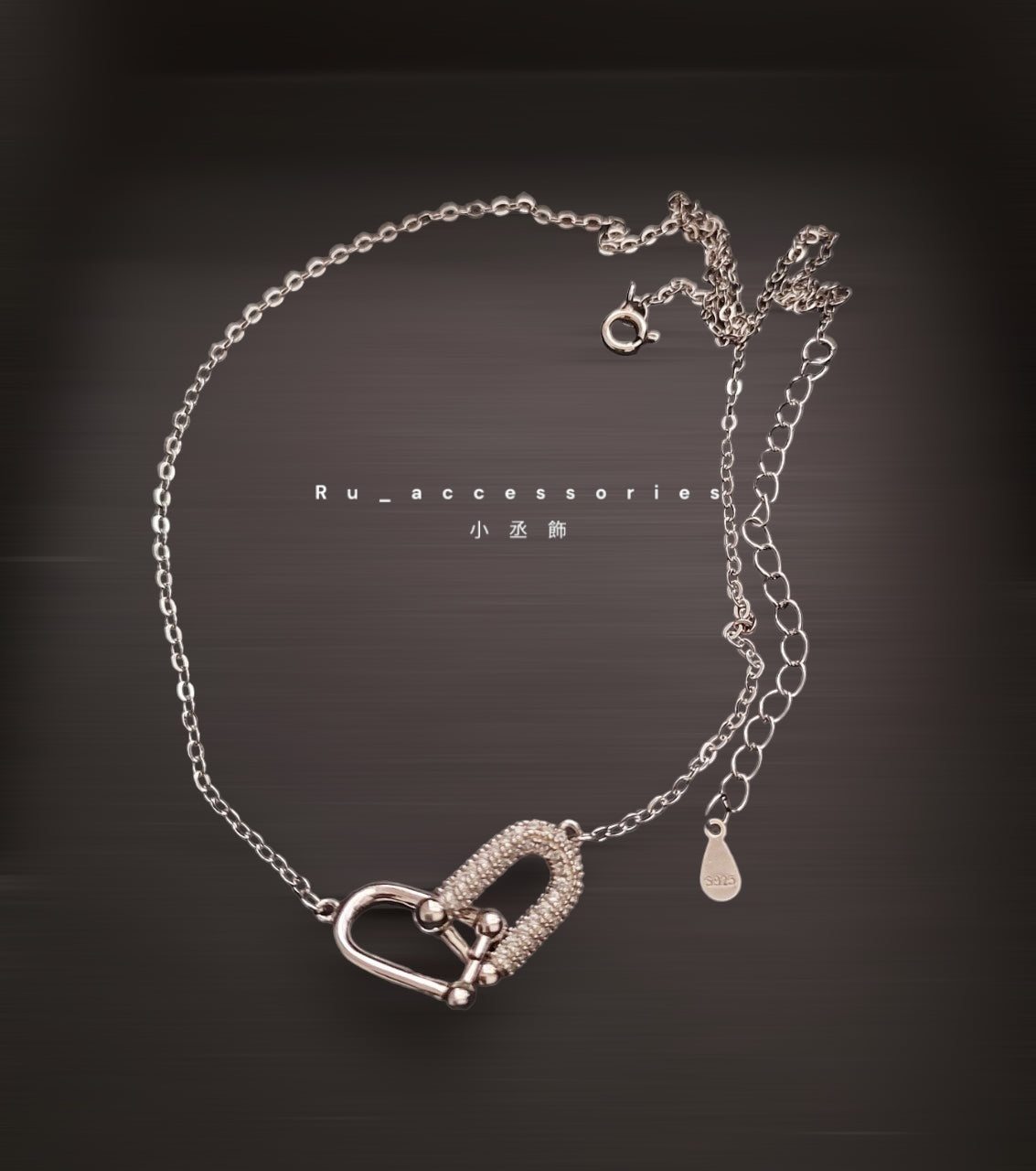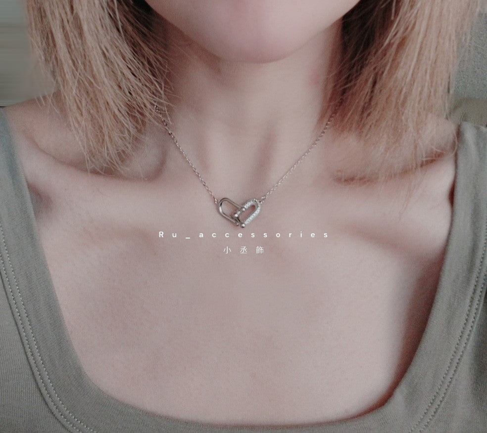 帶鑽雙馬蹄細項鍊 #15