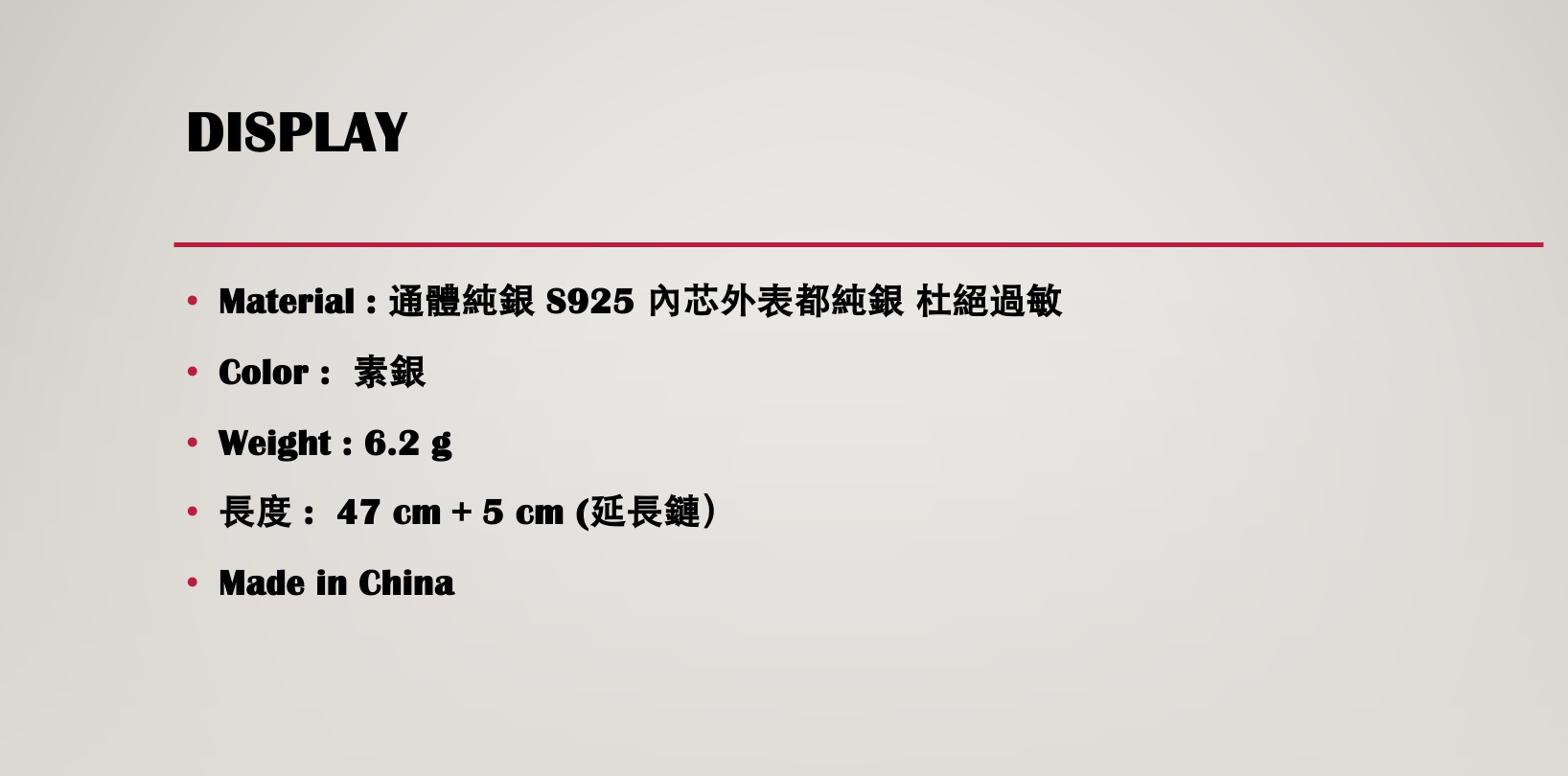 •Material : 通體純銀 S925 內芯外表都純銀 杜絕過敏
