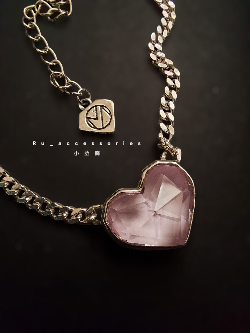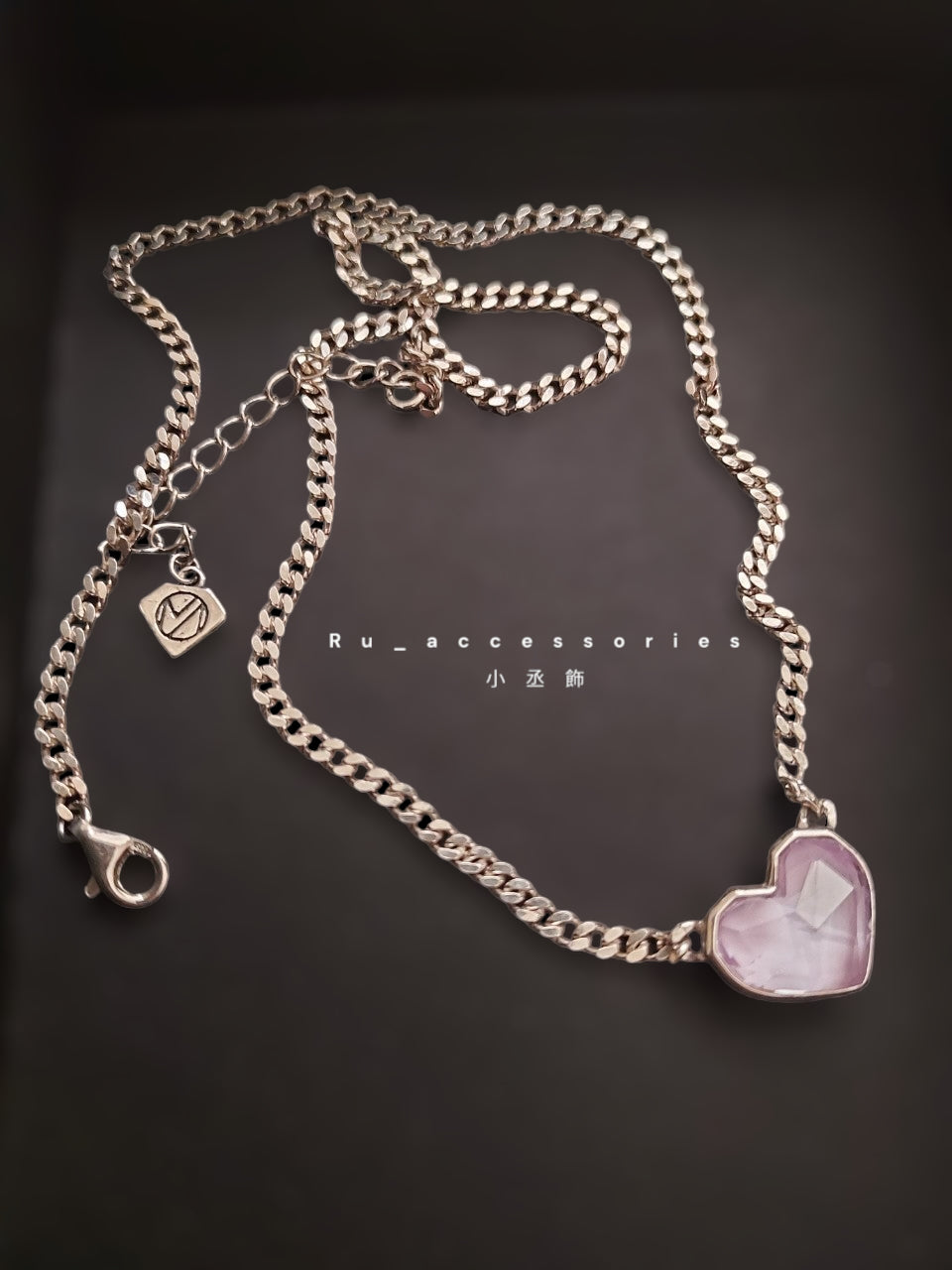 抓住別人目光-粉紫愛心古巴鏈 #19