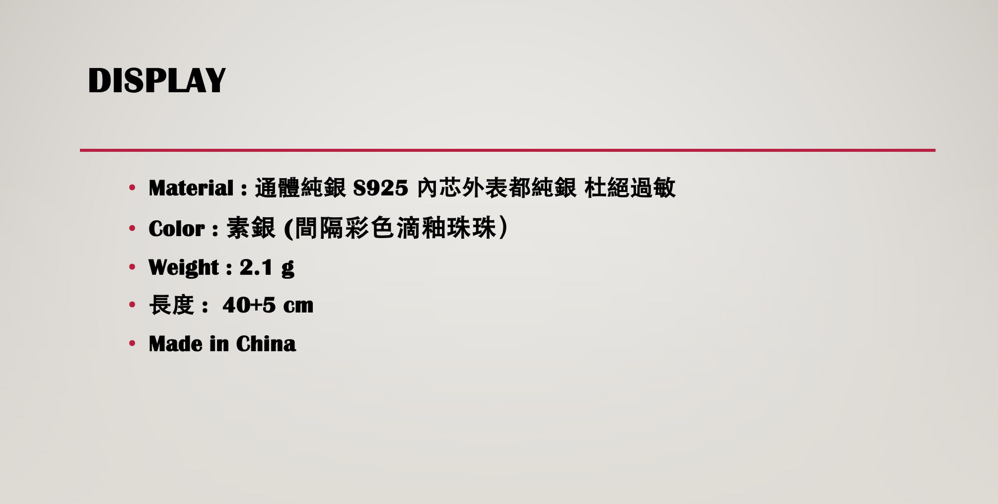 •Color : 素銀 (間隔彩色滴釉珠珠)