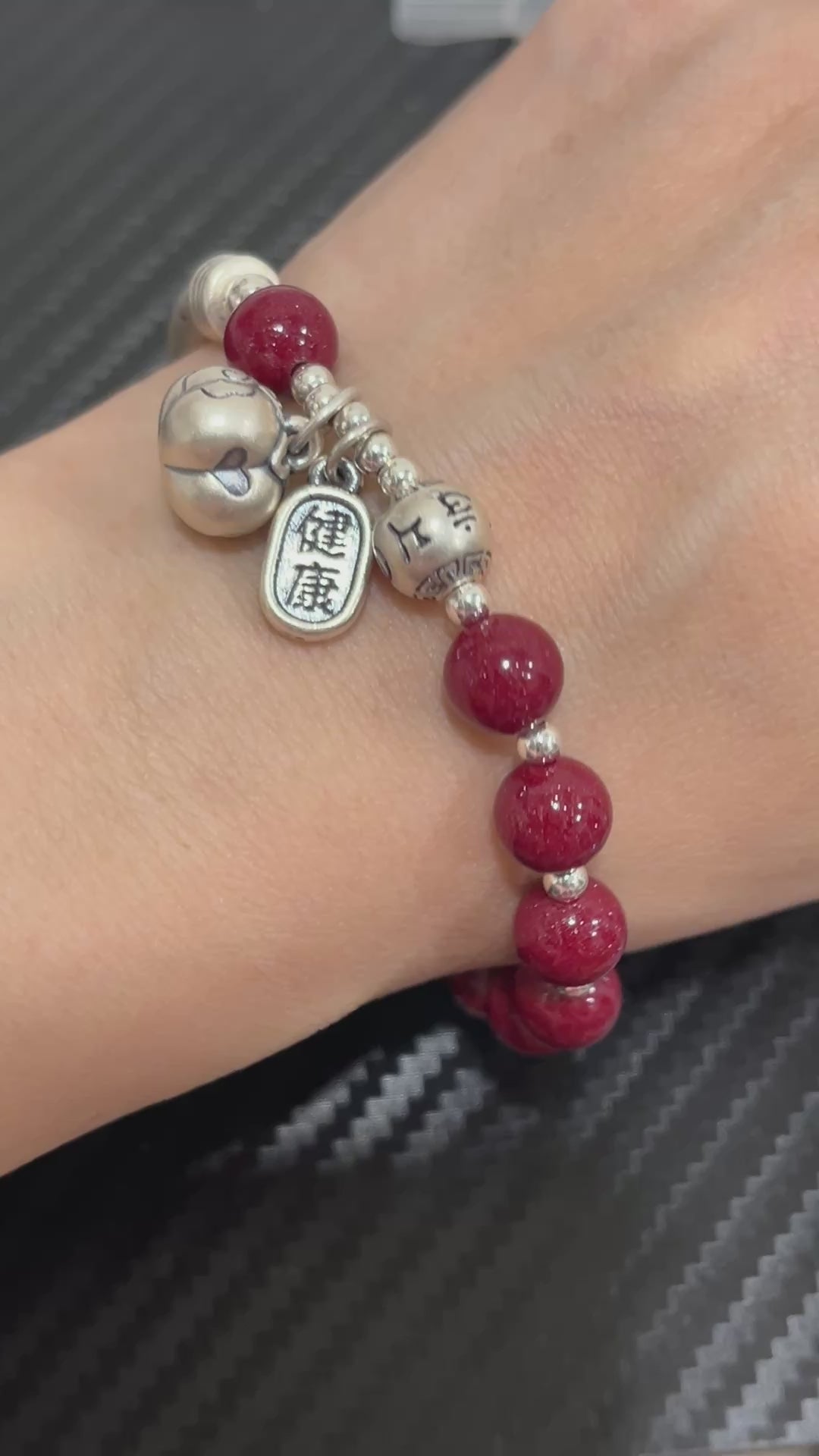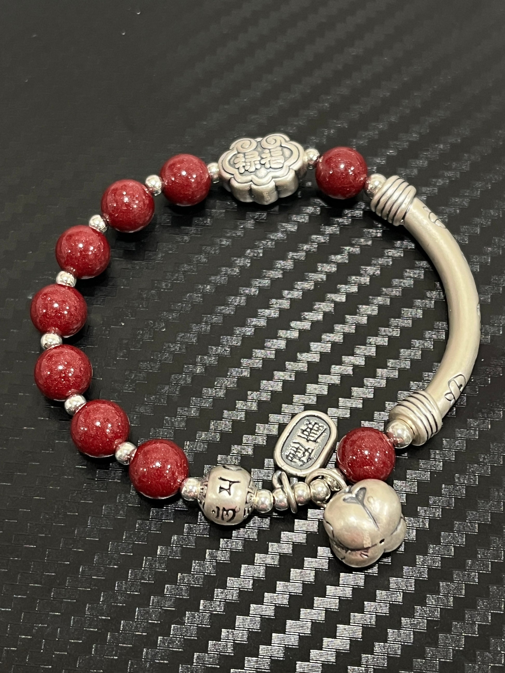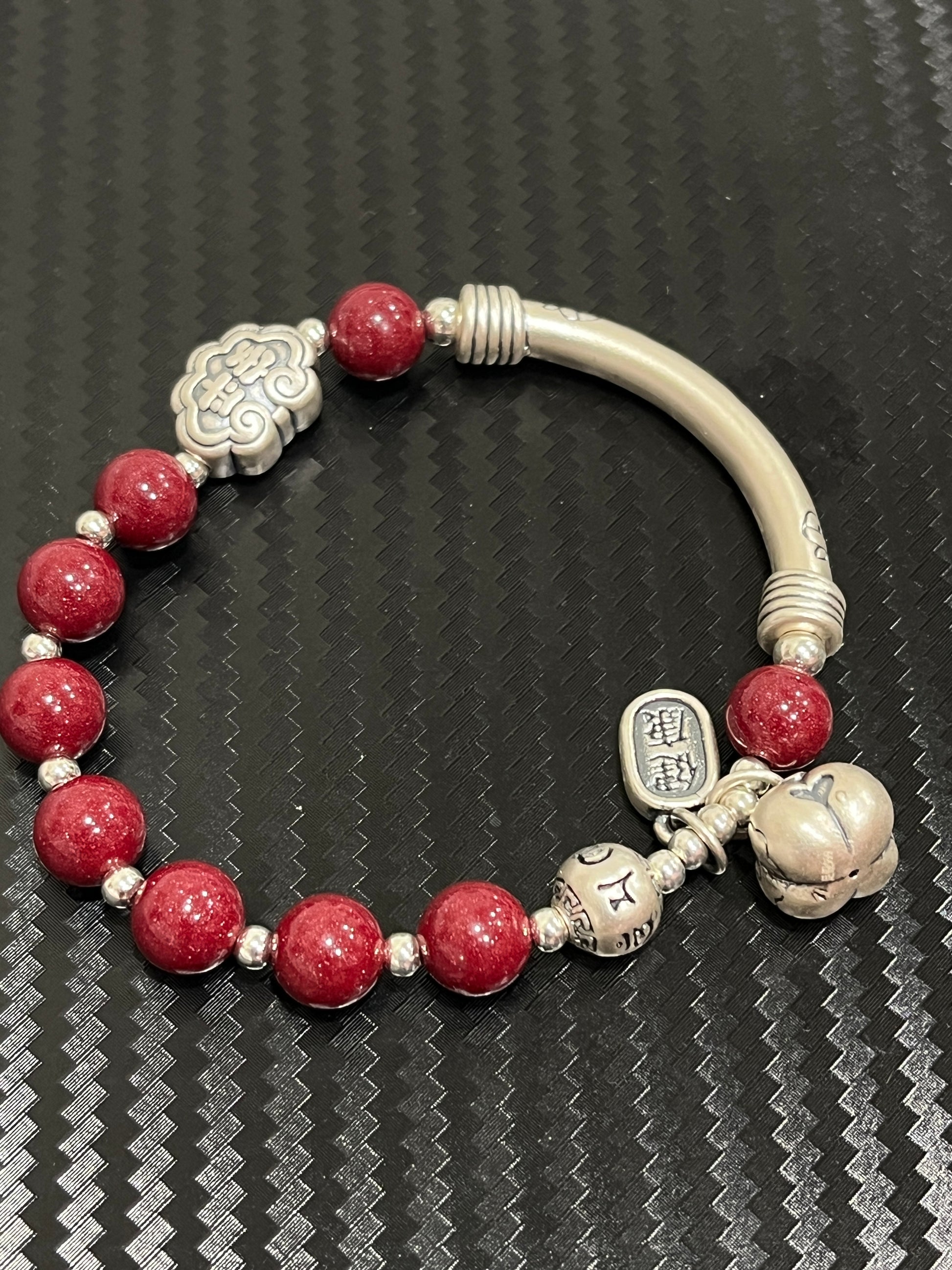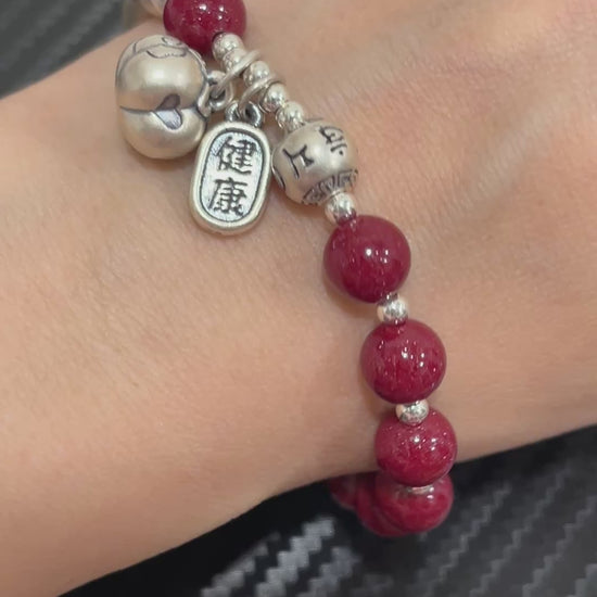 吉繩記事事如意平安健康五福禮物女s925銀飾手鍊朱砂串珠手串