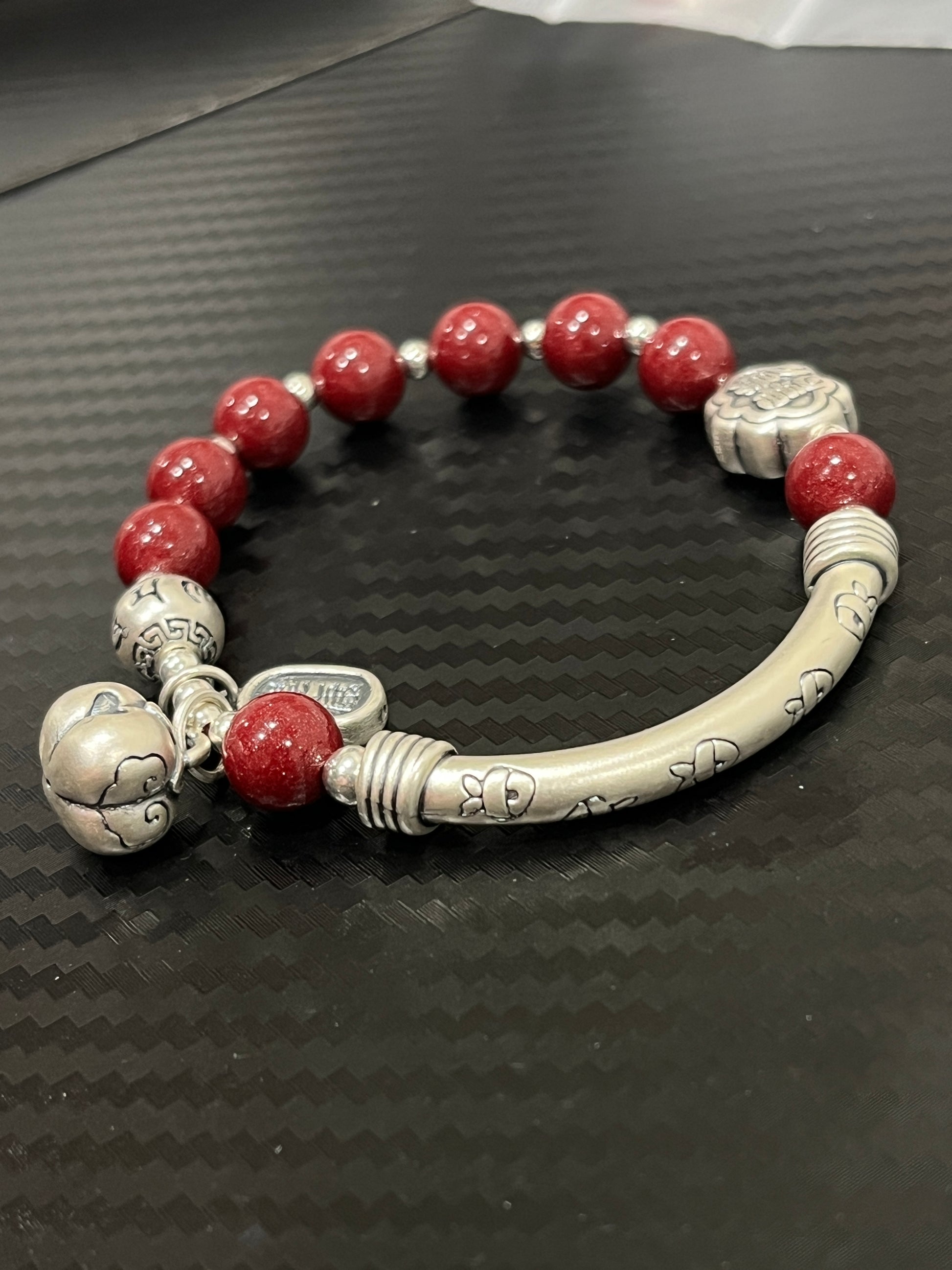 小丞飾 吉繩記事事如意平安健康五福禮物女s925銀飾手鍊朱砂串珠手串 $1990 彈力繩適合14-17公分手圍 B601112