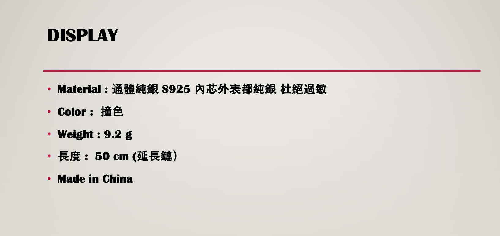 •Material : 通體純銀 S925 內芯外表都純銀 杜絕過敏