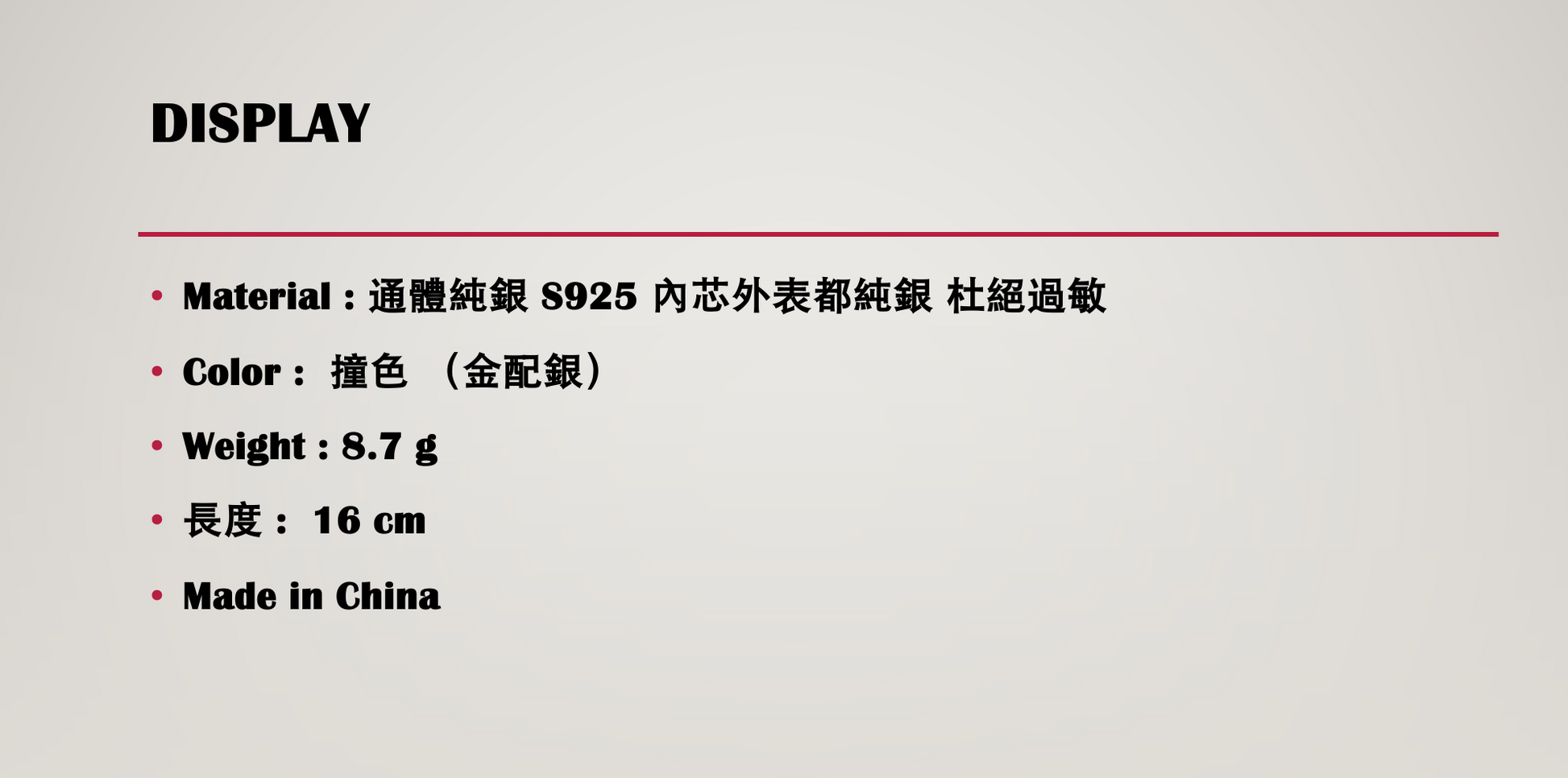 •Material : 通體純銀 S925 內芯外表都純銀 杜絕過敏