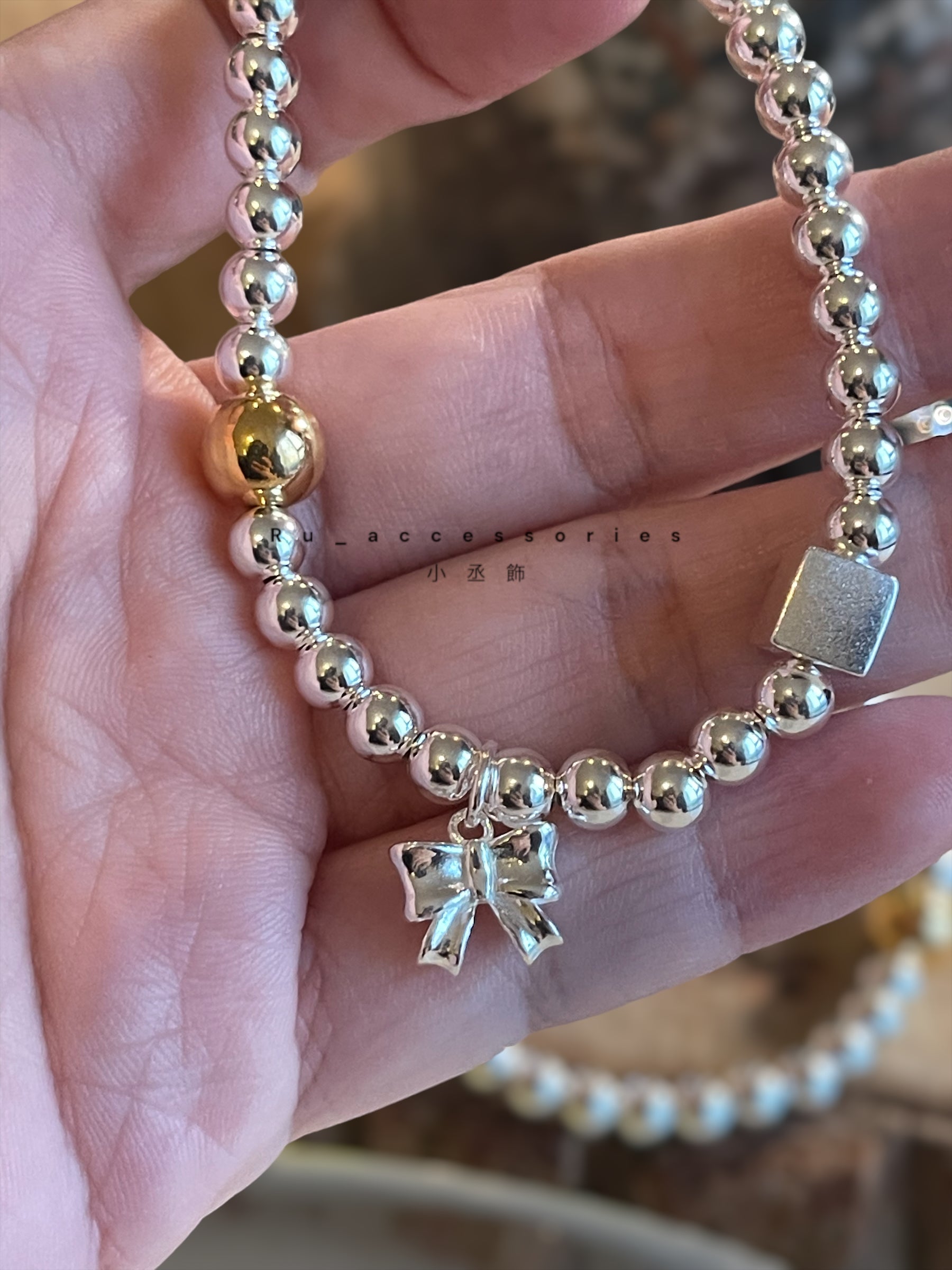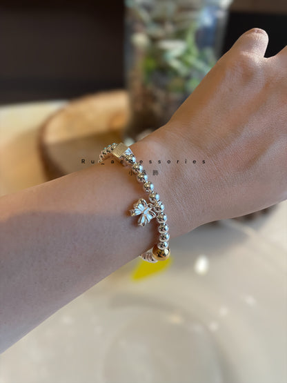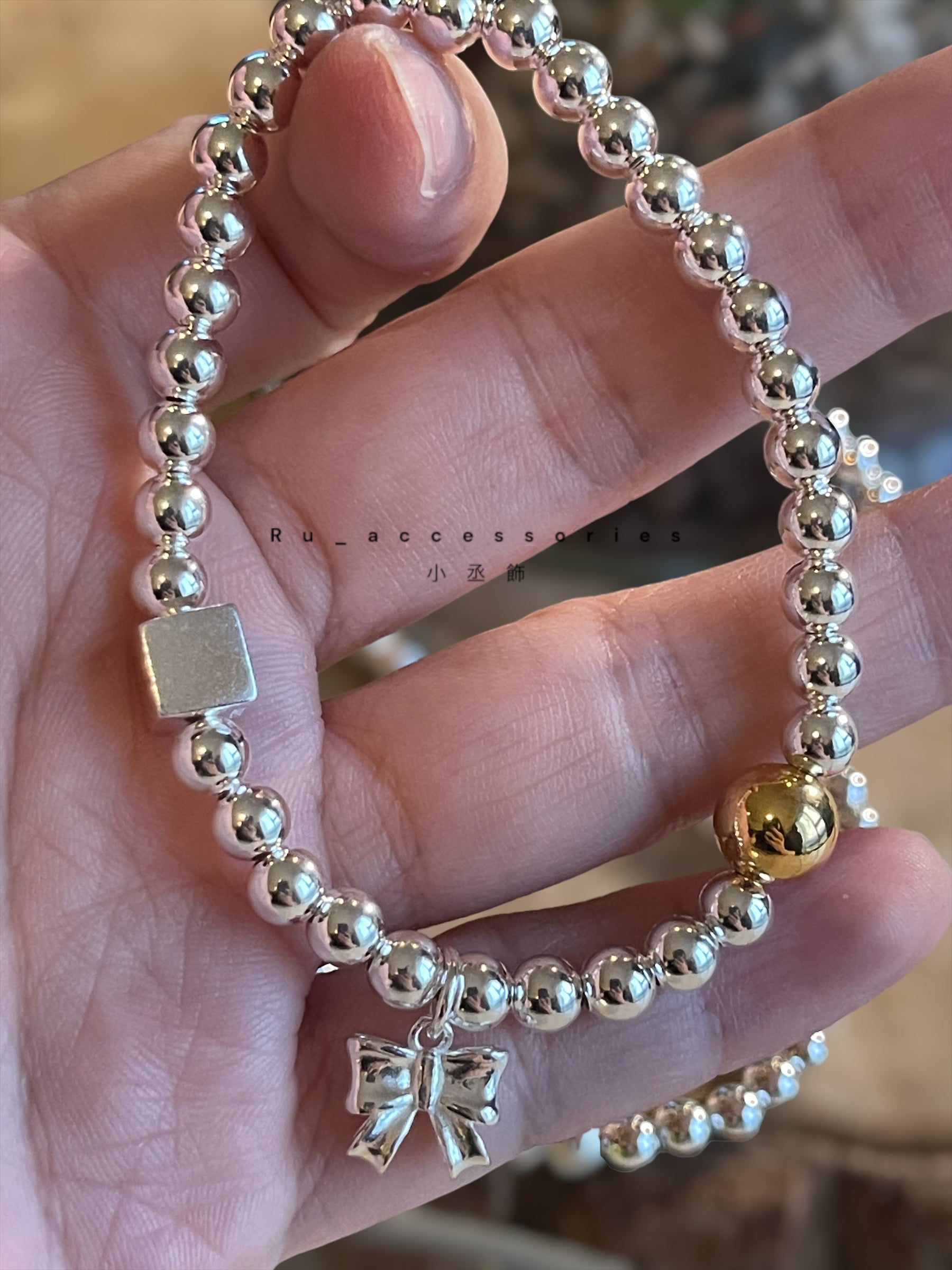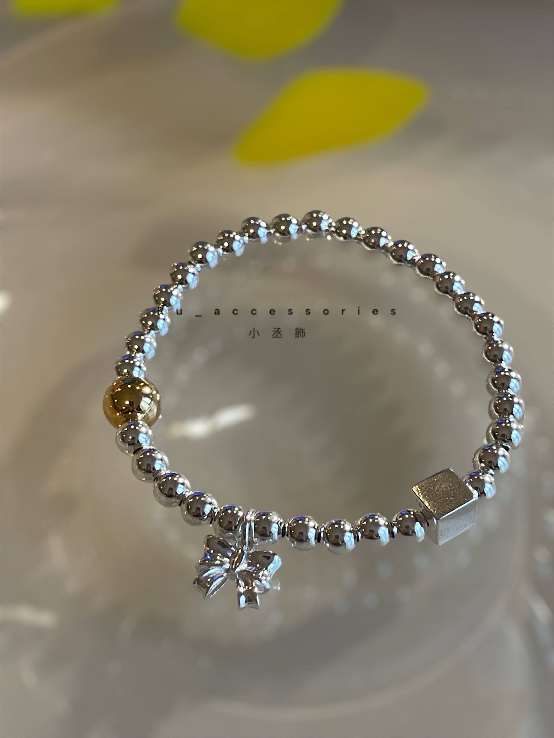 蝴蝶結方塊撞色圓珠彈力繩手鍊#4