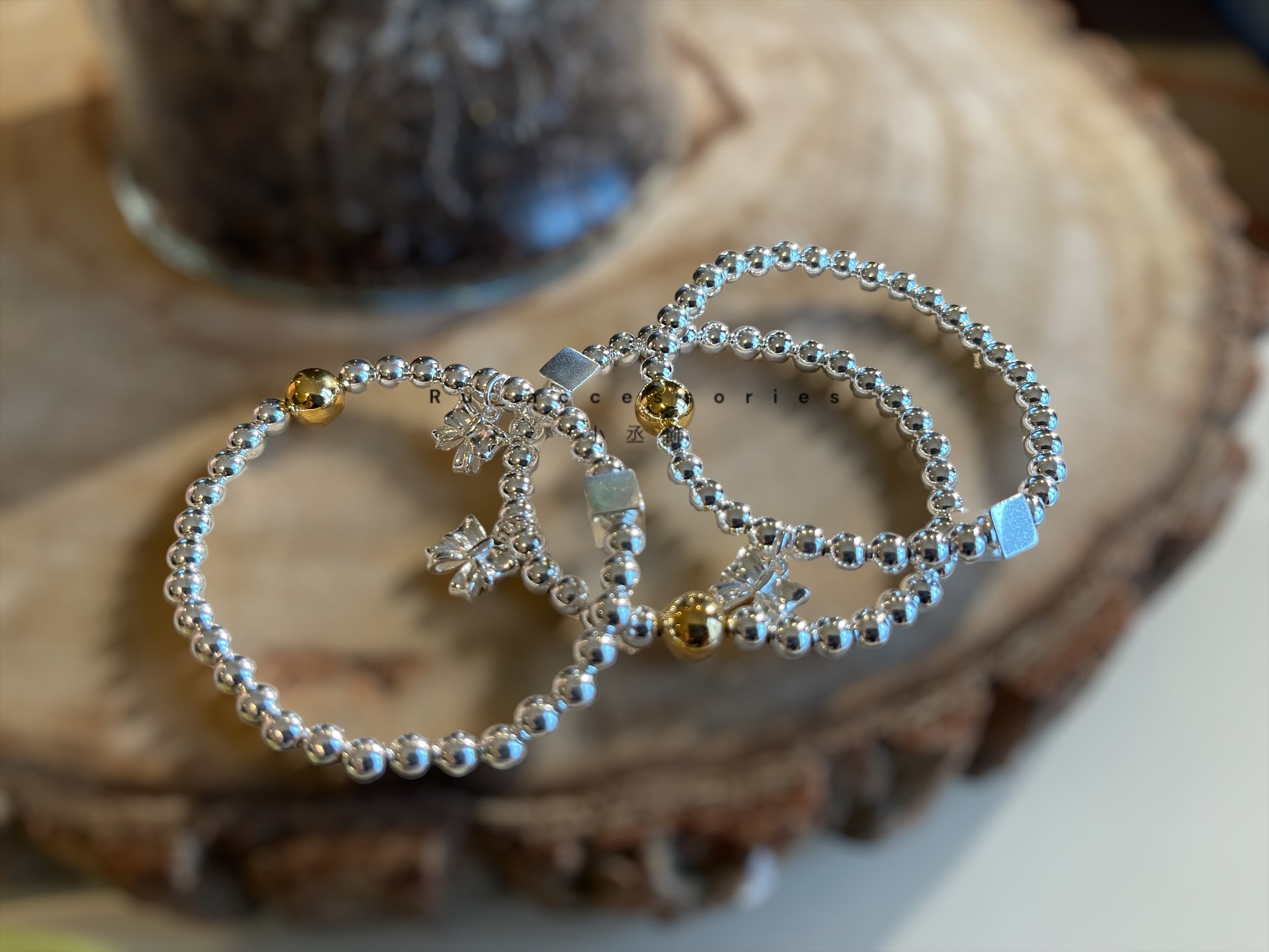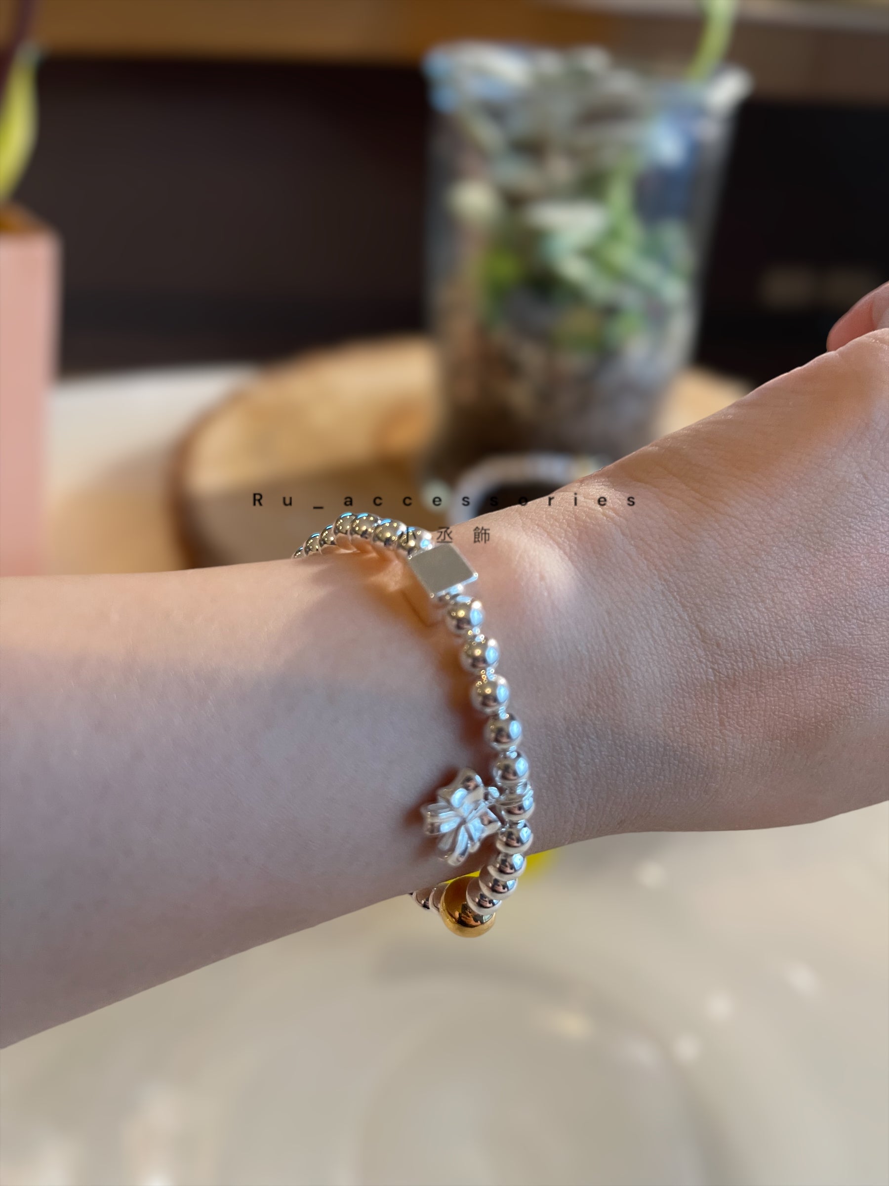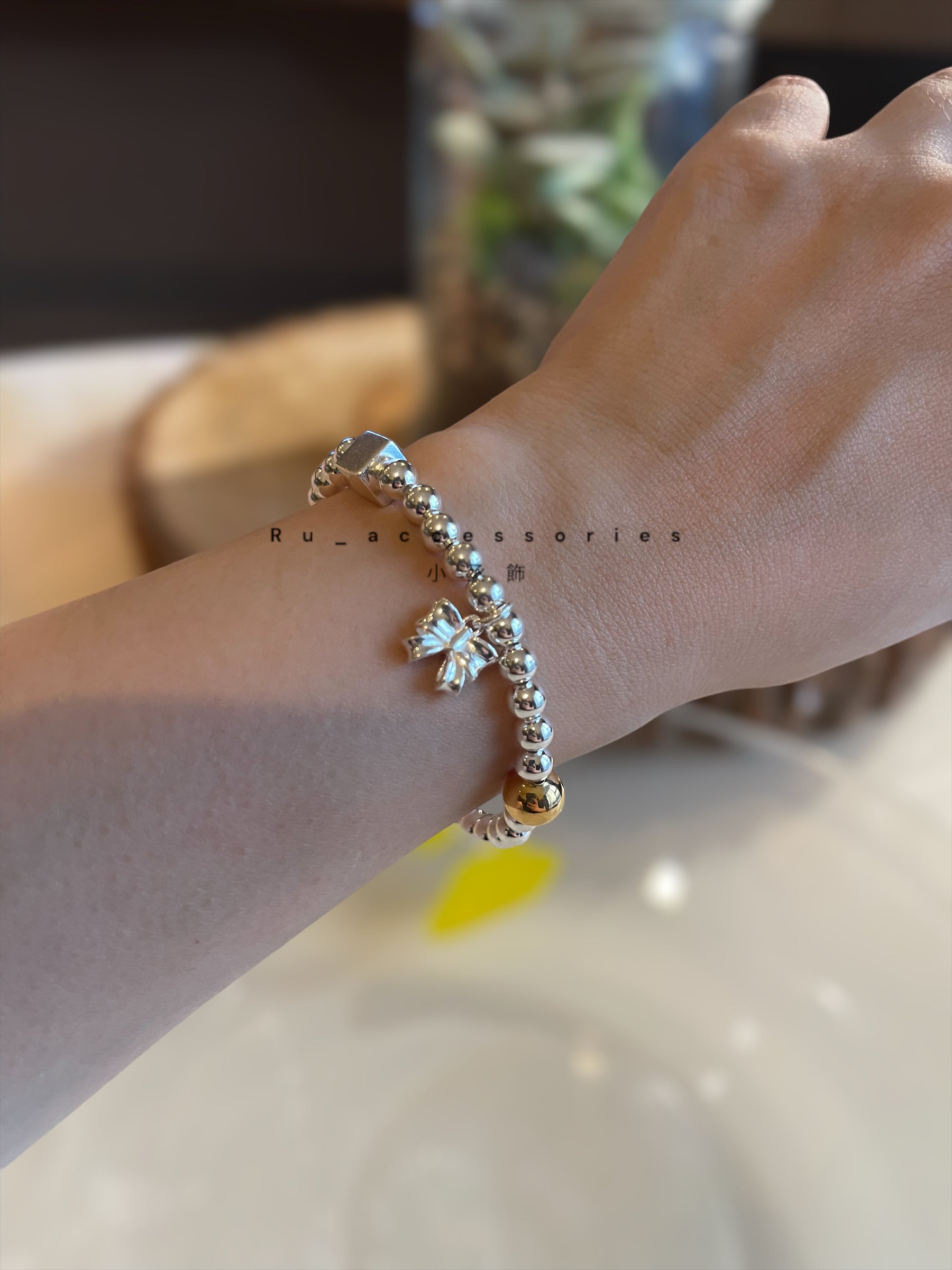 蝴蝶結方塊撞色圓珠彈力繩手鍊#4