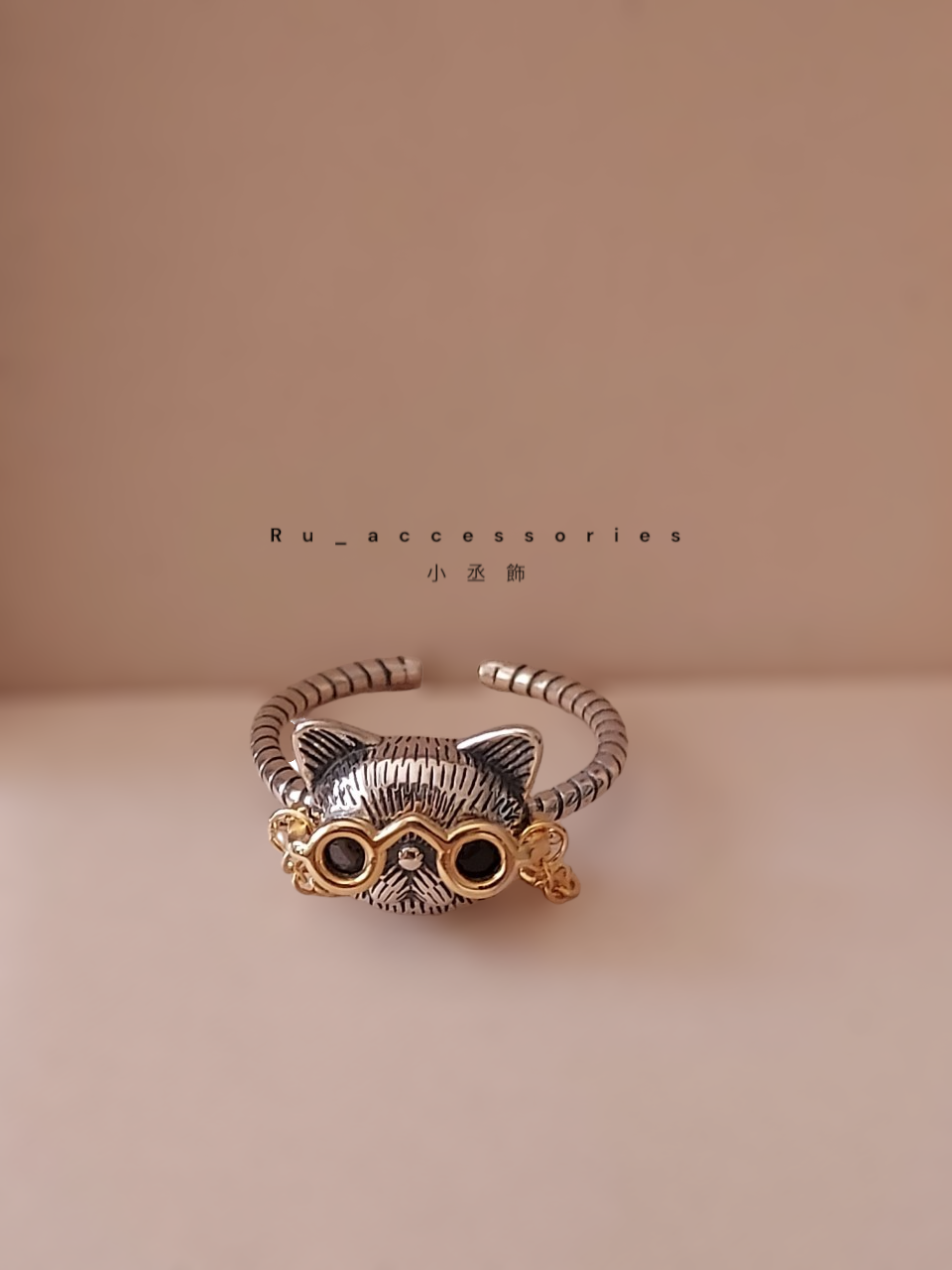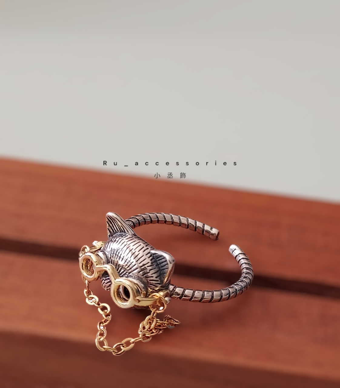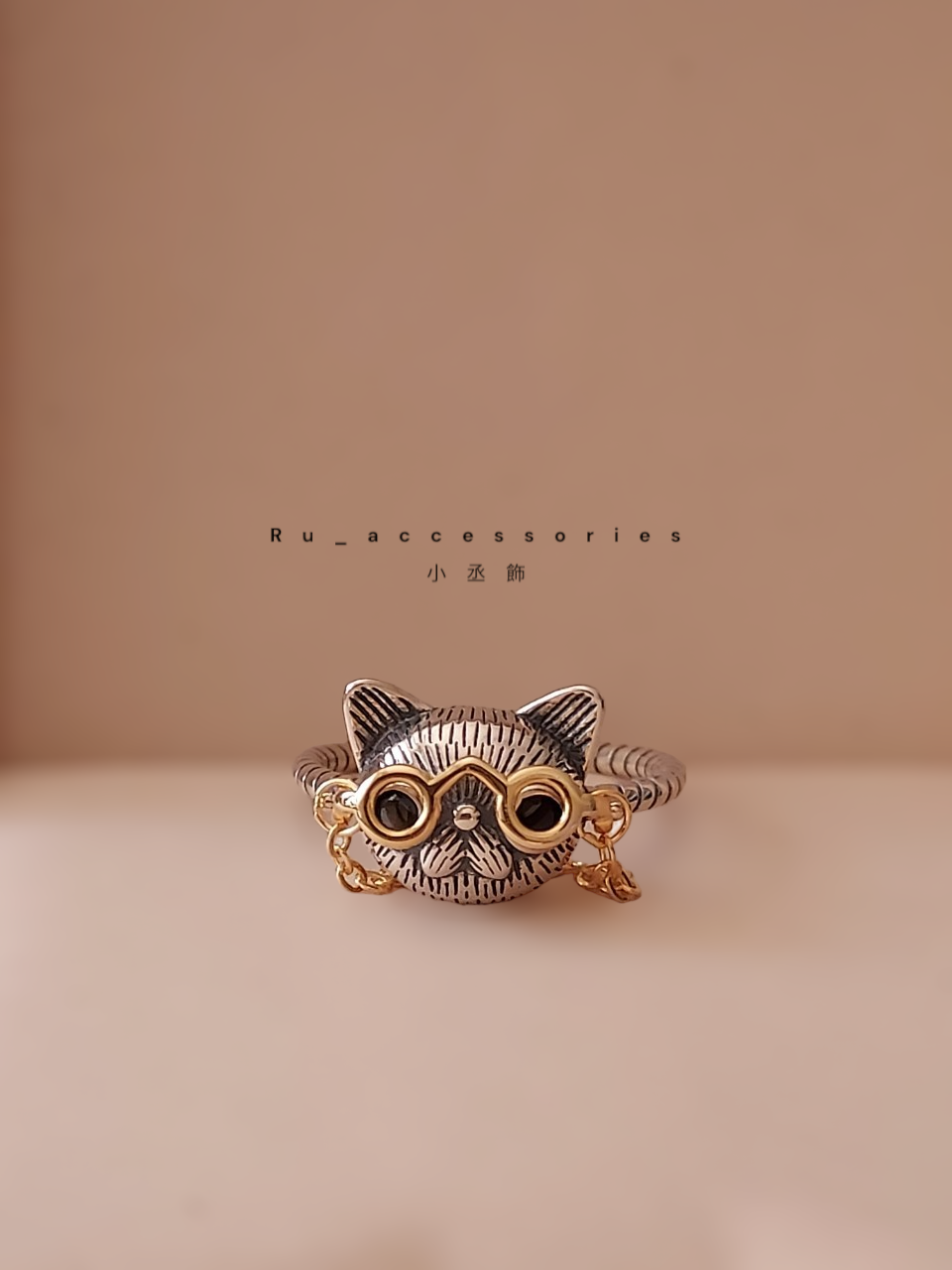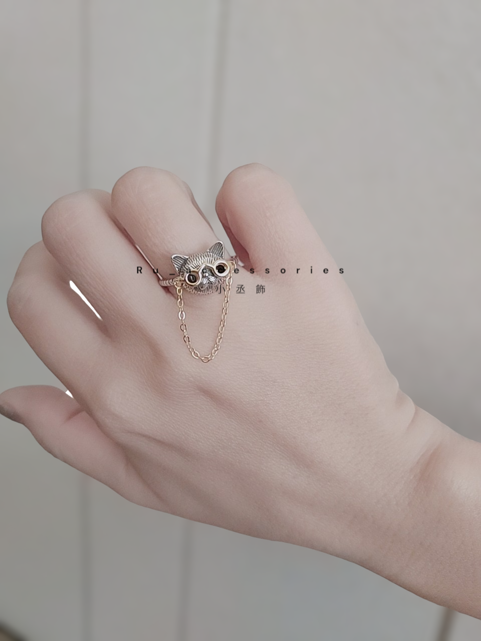 鏟屎官系列-可愛無法擋 細緻紋路麻花貓咪戒 #14