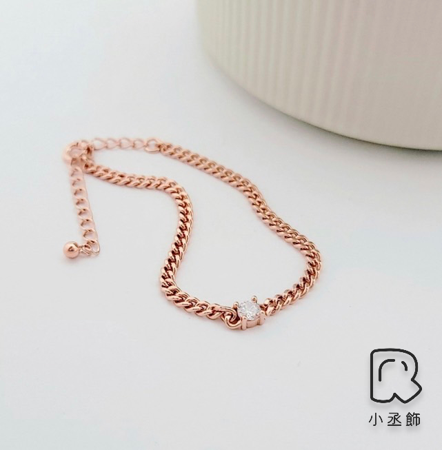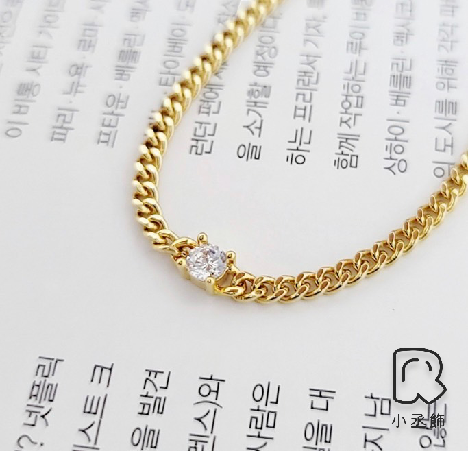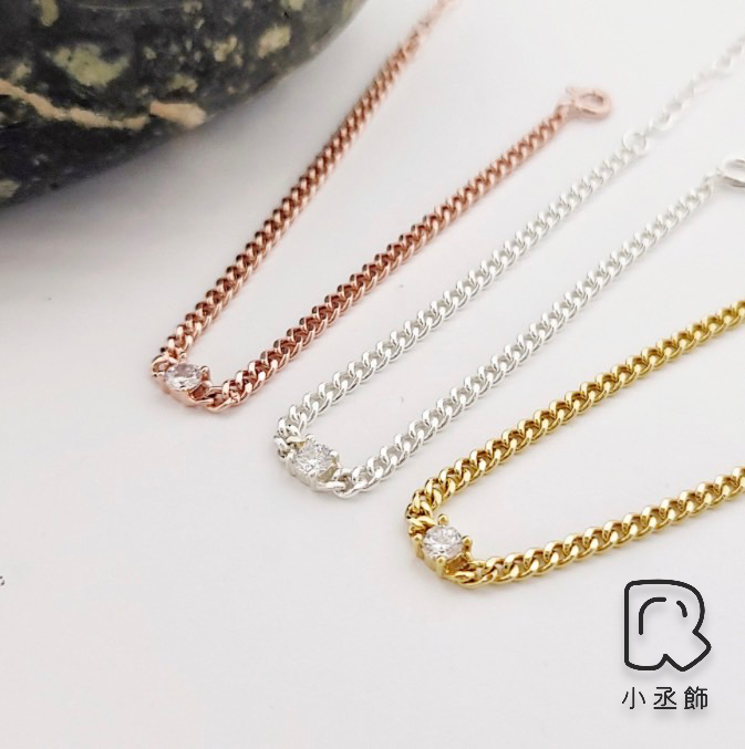 小丞飾-正韓通體全純銀s925正韓韓國生產製造 細緻柔美古巴鍊配上一個小鑽 #75 金 銀 粉 三色甜美可愛16+3 公分 $790
