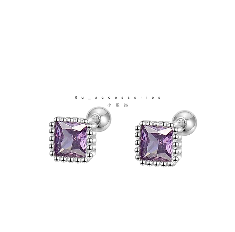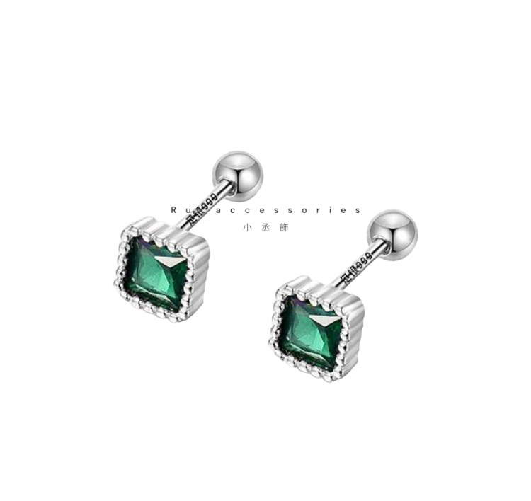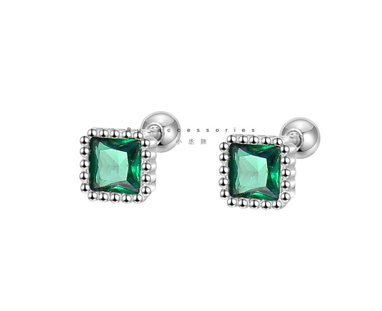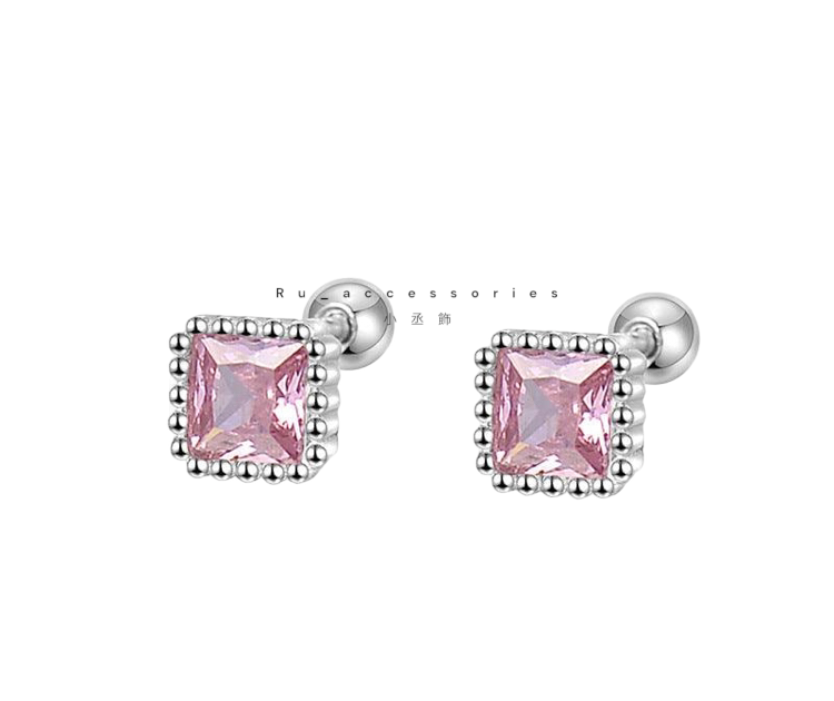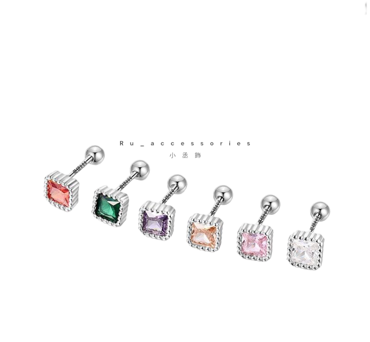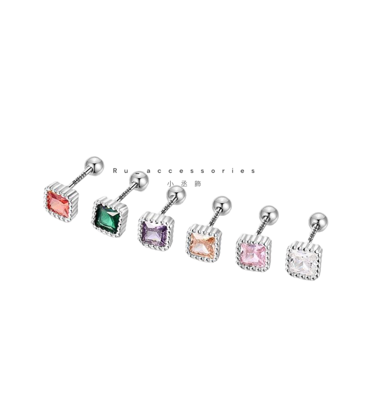 足銀轉珠5.5mm六色正方彩鑽轉珠耳環 #21