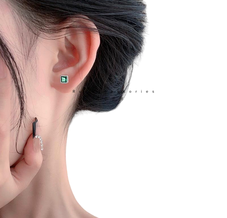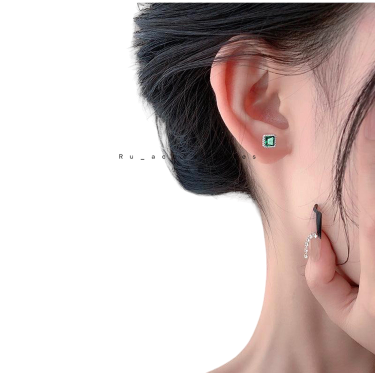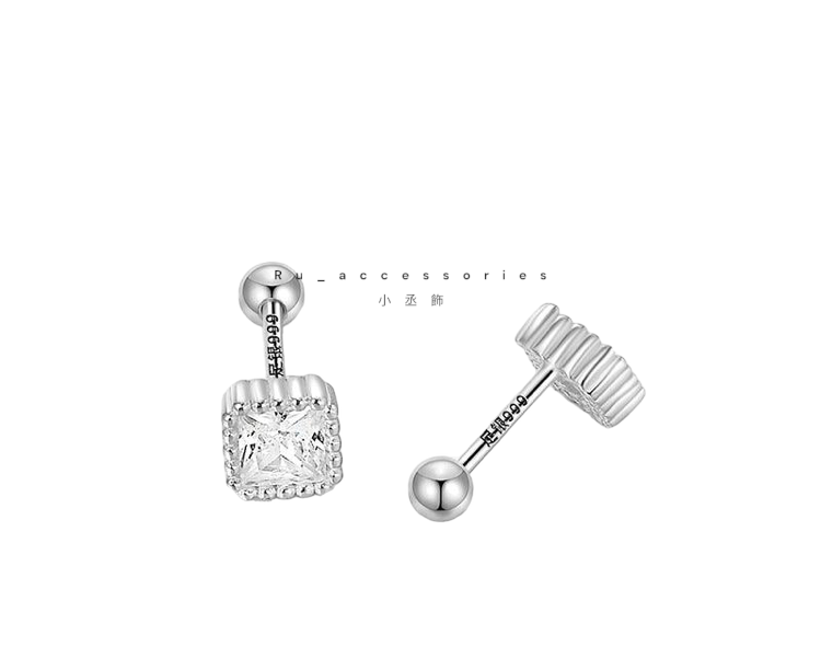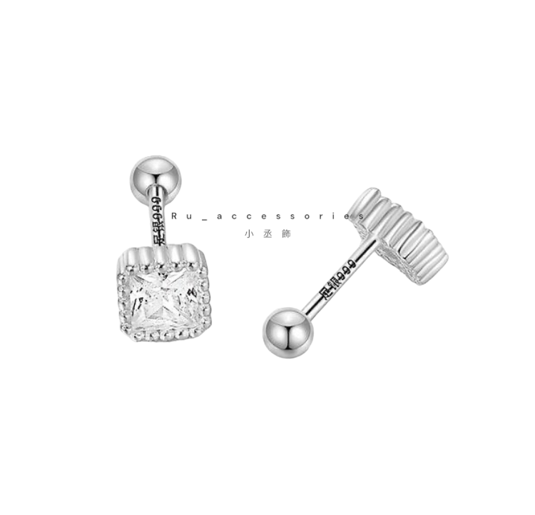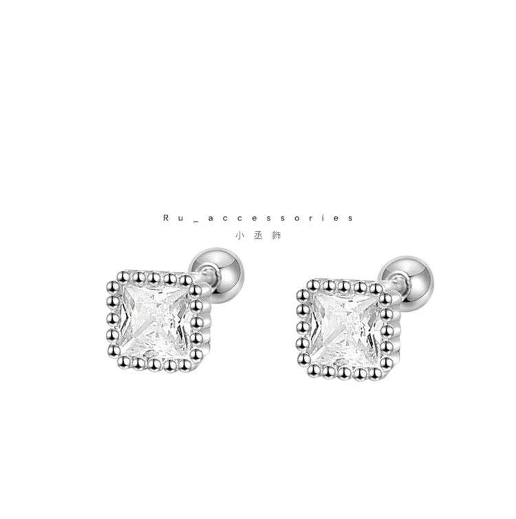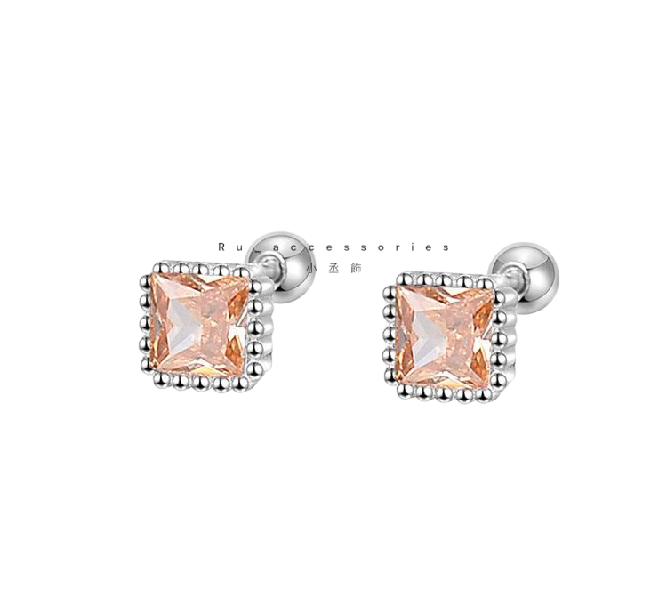 足銀轉珠5.5mm六色正方彩鑽轉珠耳環 #21