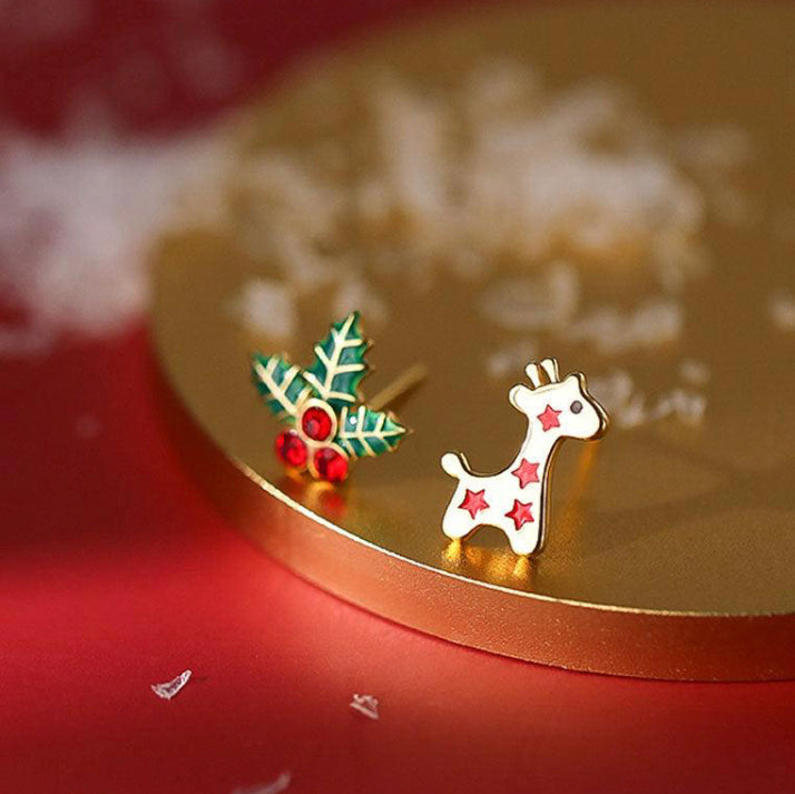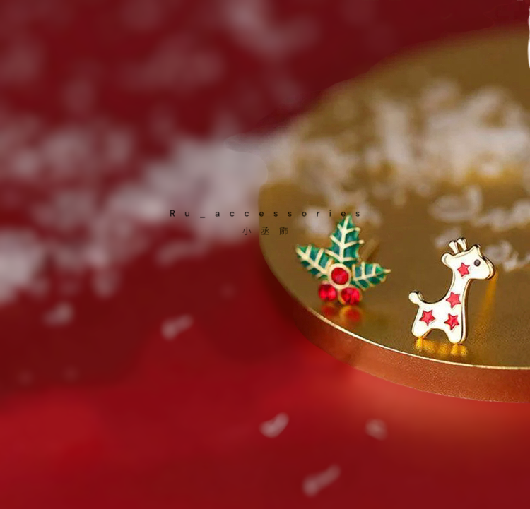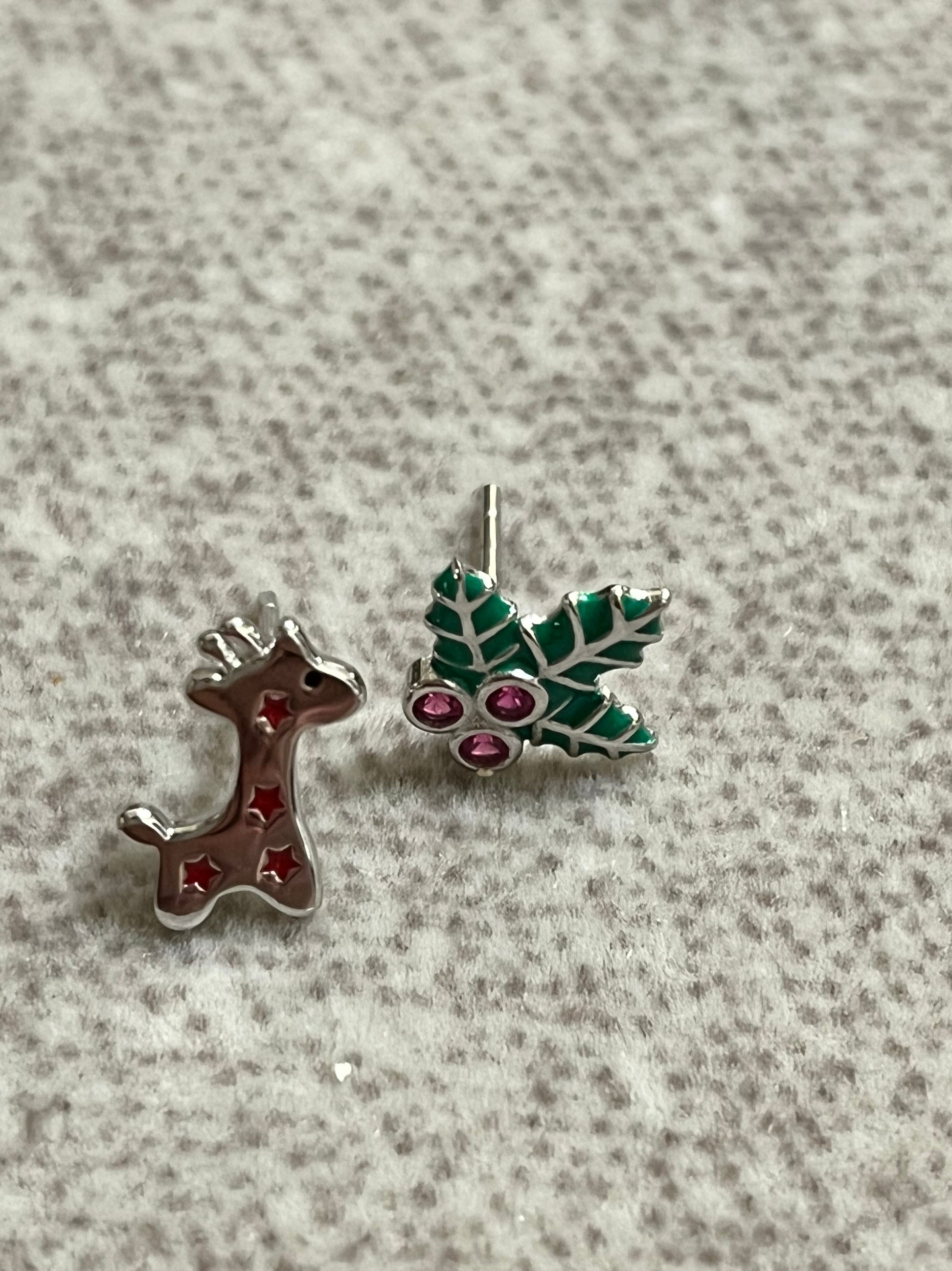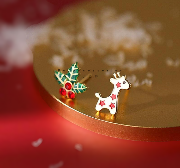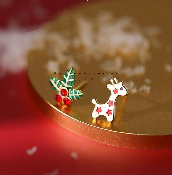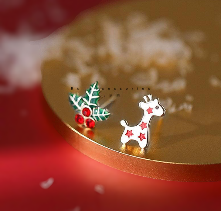 AB款繽紛麋鹿聖誕耳釘甜美可愛動物風 #17