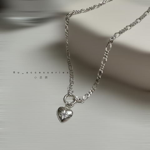 熱賣款AB鍊愛心鑽大圓扣項鍊可以自己換墜飾含愛心吊墜 總長45cm #56