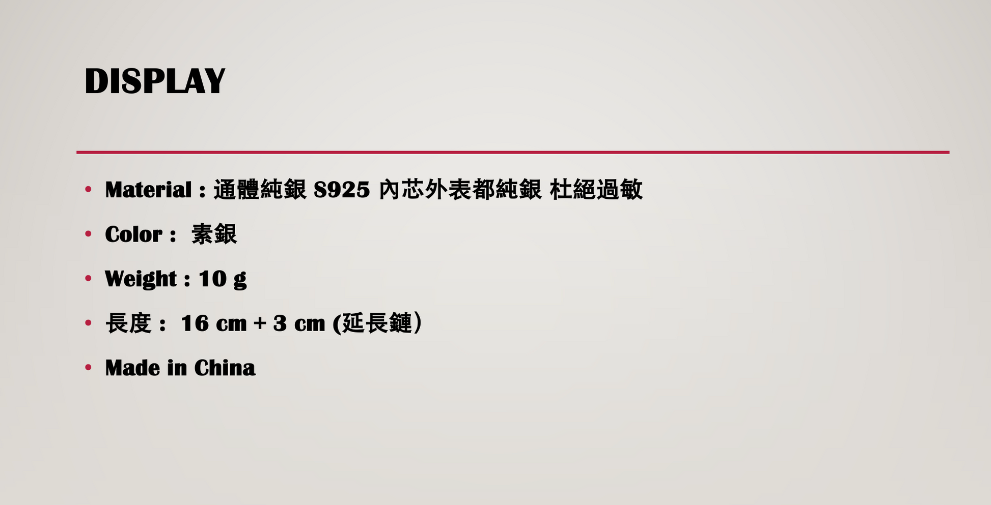 •Material : 通體純銀 S925 內芯外表都純銀 杜絕過敏