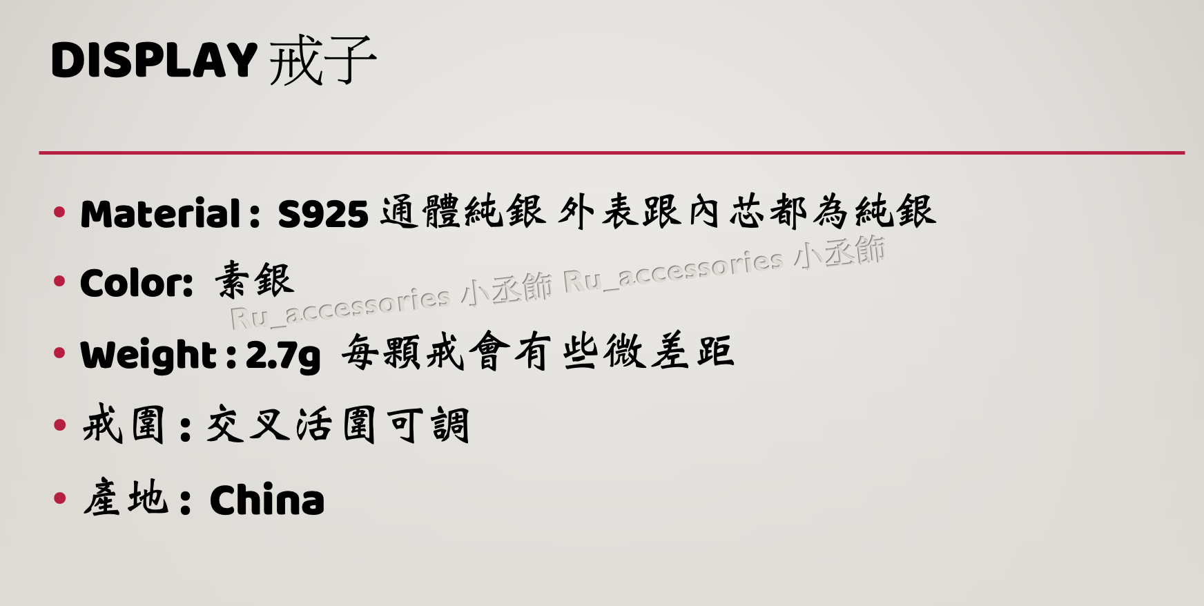 •Material : S925 通體純銀 外表跟內芯都為純銀
