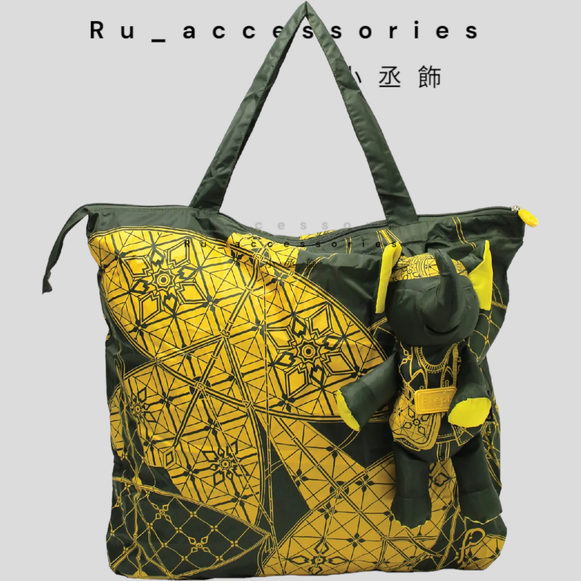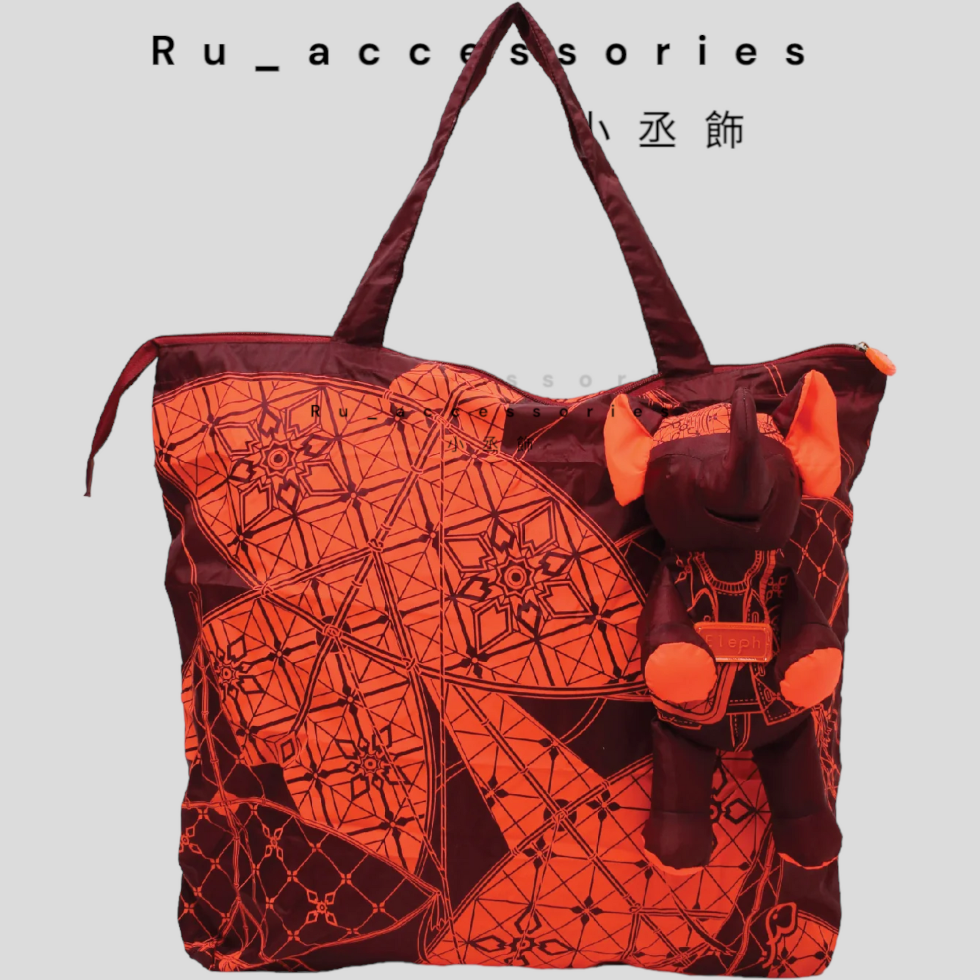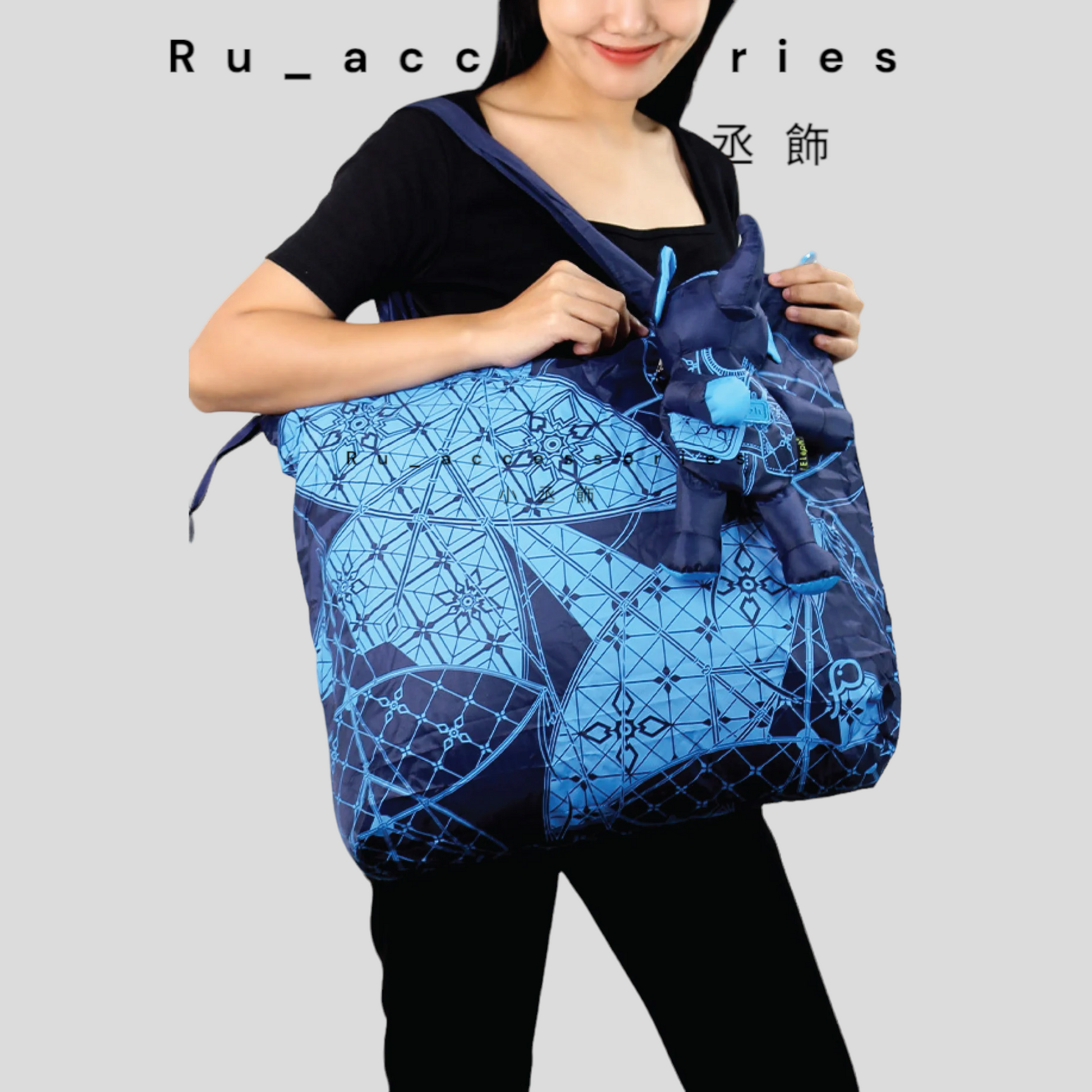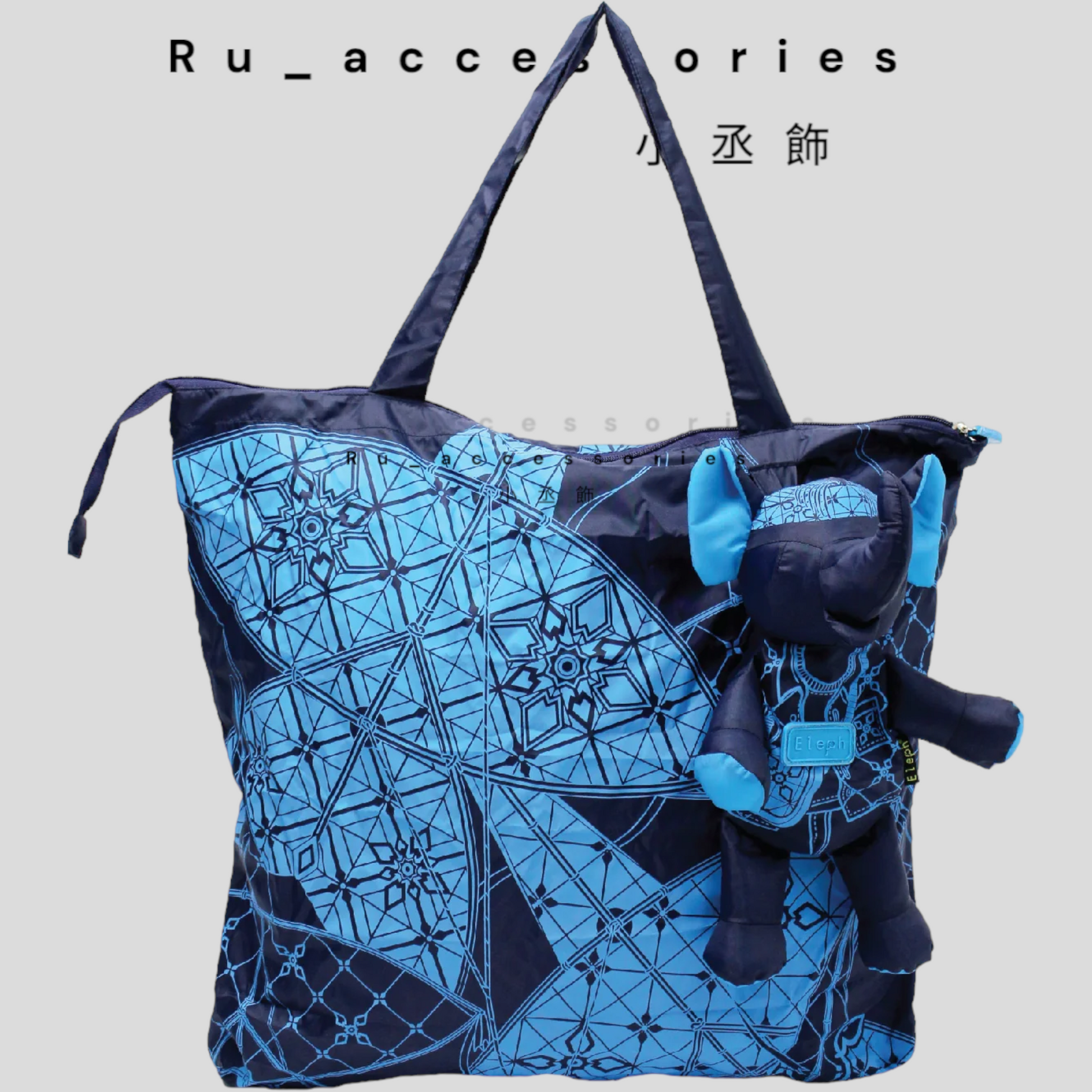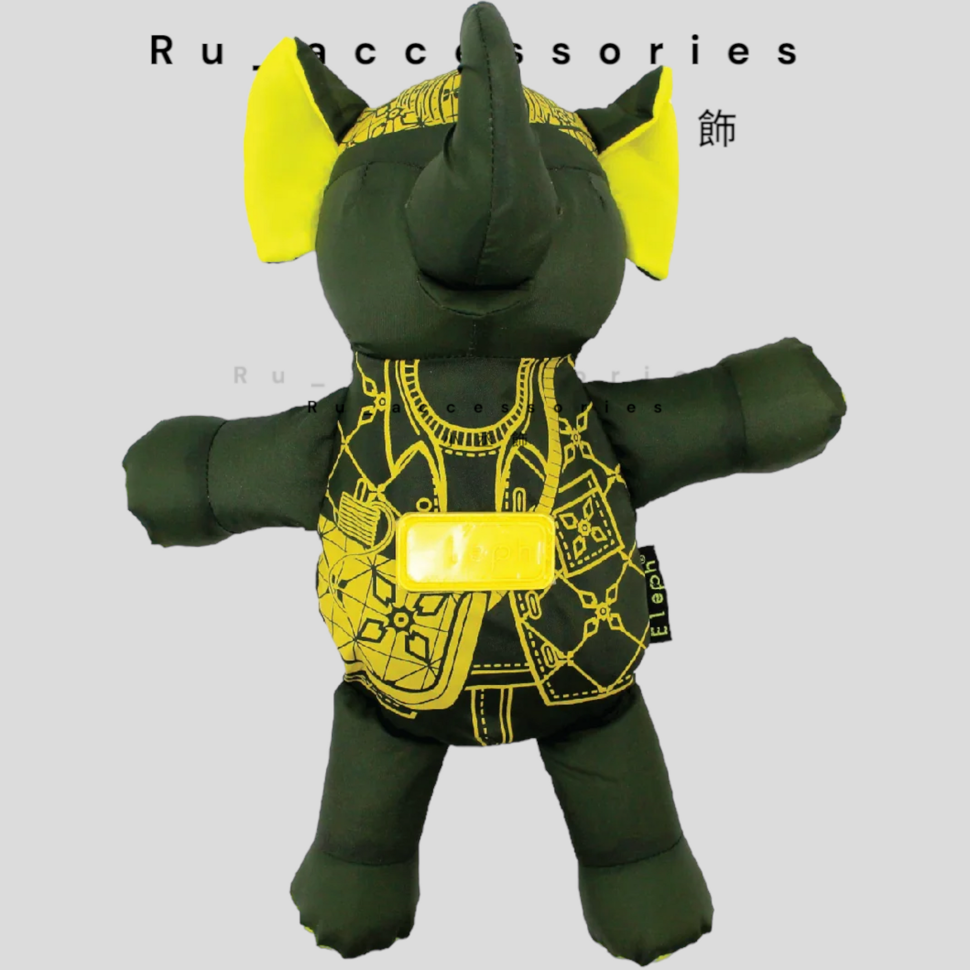 這個包包設計成易於摺疊並存放在大象玩偶內。